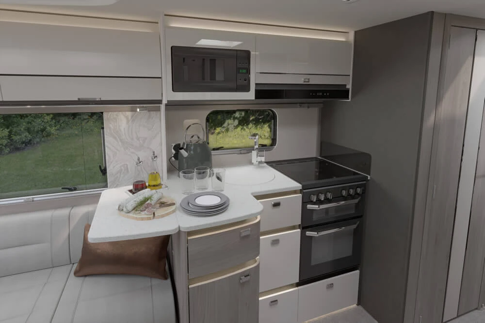 Experience the thrill of adventure with the Swift Elegance 850 Grande 2026, a caravan designed to elevate every journey. This stunning leisure vehicle combines sophistication and functionality, featuring a spacious twin-axle layout that comfortably accommodates up to four guests. With an impressive unladen weight of 1908 kg and a maximum technically permissible laden mass (MTPLM) of 2109 kg, it strikes the perfect balance between lightweight maneuverability and robust durability. The generous awning size of 1049 enhances outdoor living space, inviting relaxation under the sun or shelter during unexpected weather. The sleek lines and modern interior design reflect contemporary elegance, making every trip feel like a luxurious getaway. Whether setting off for a weekend retreat or embarking on a grand tour, the Swift Elegance 850 Grande promises unforgettable memories while ensuring comfort and style at every turn. Get ready to embrace freedom on the open road like never before!