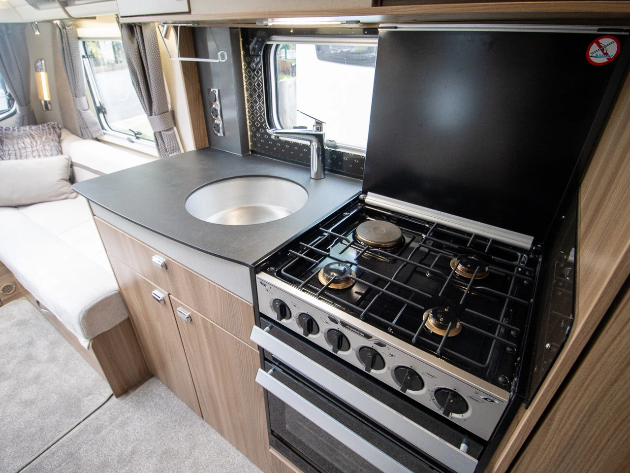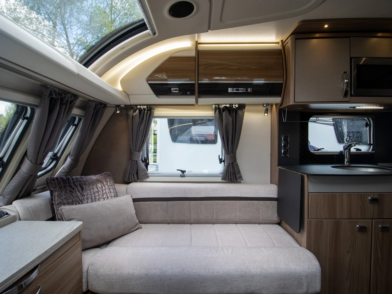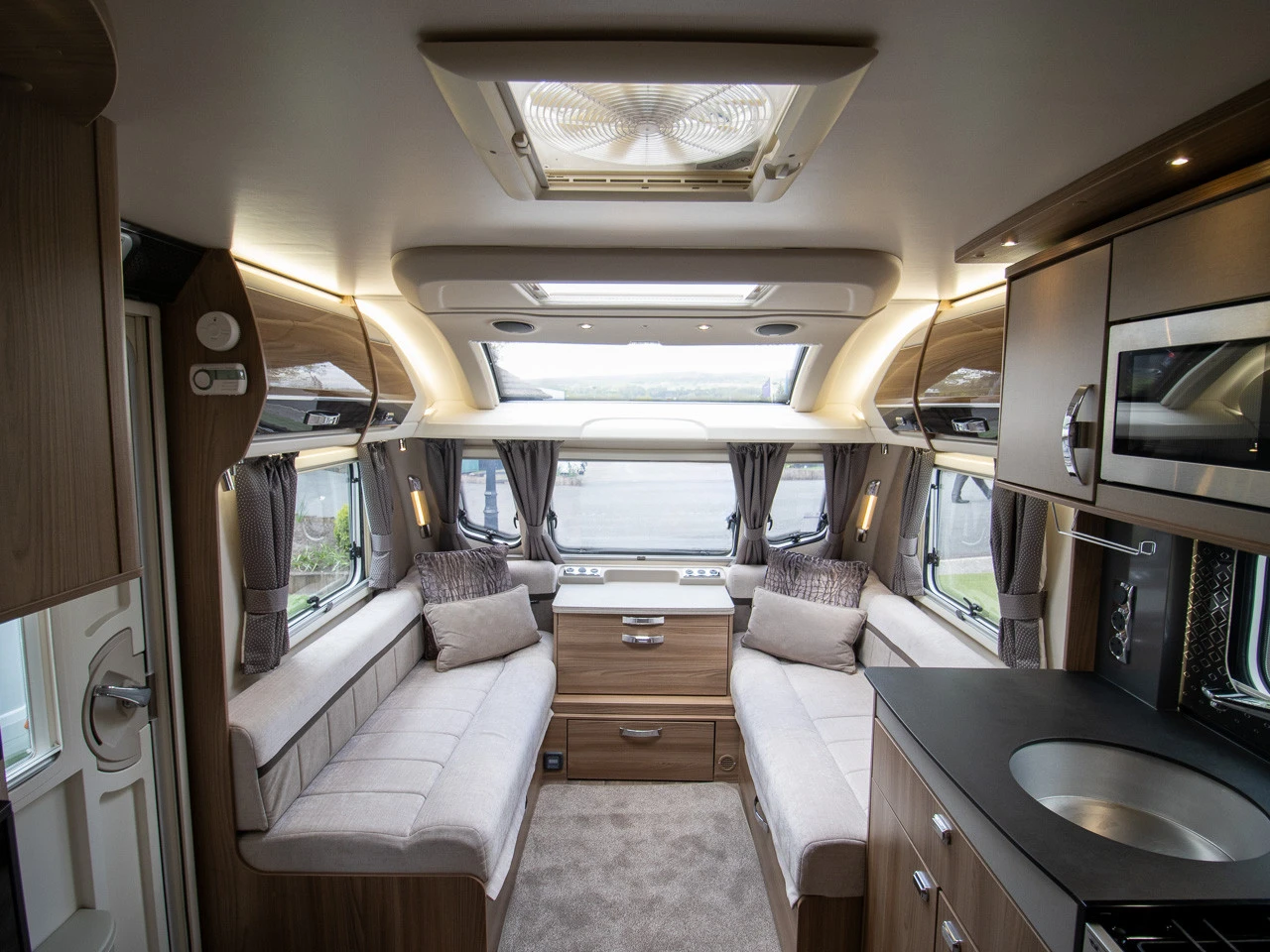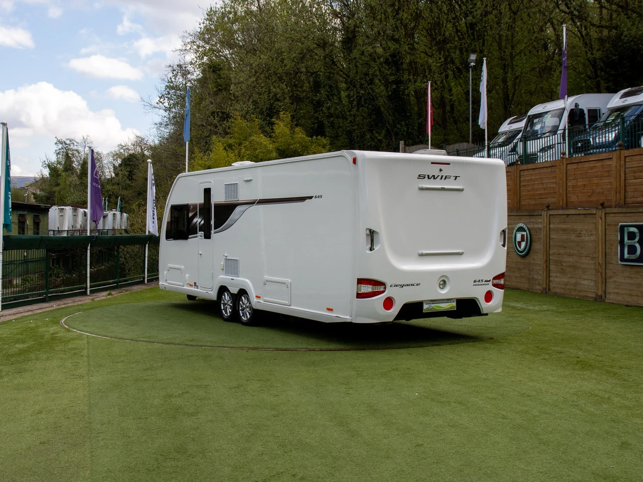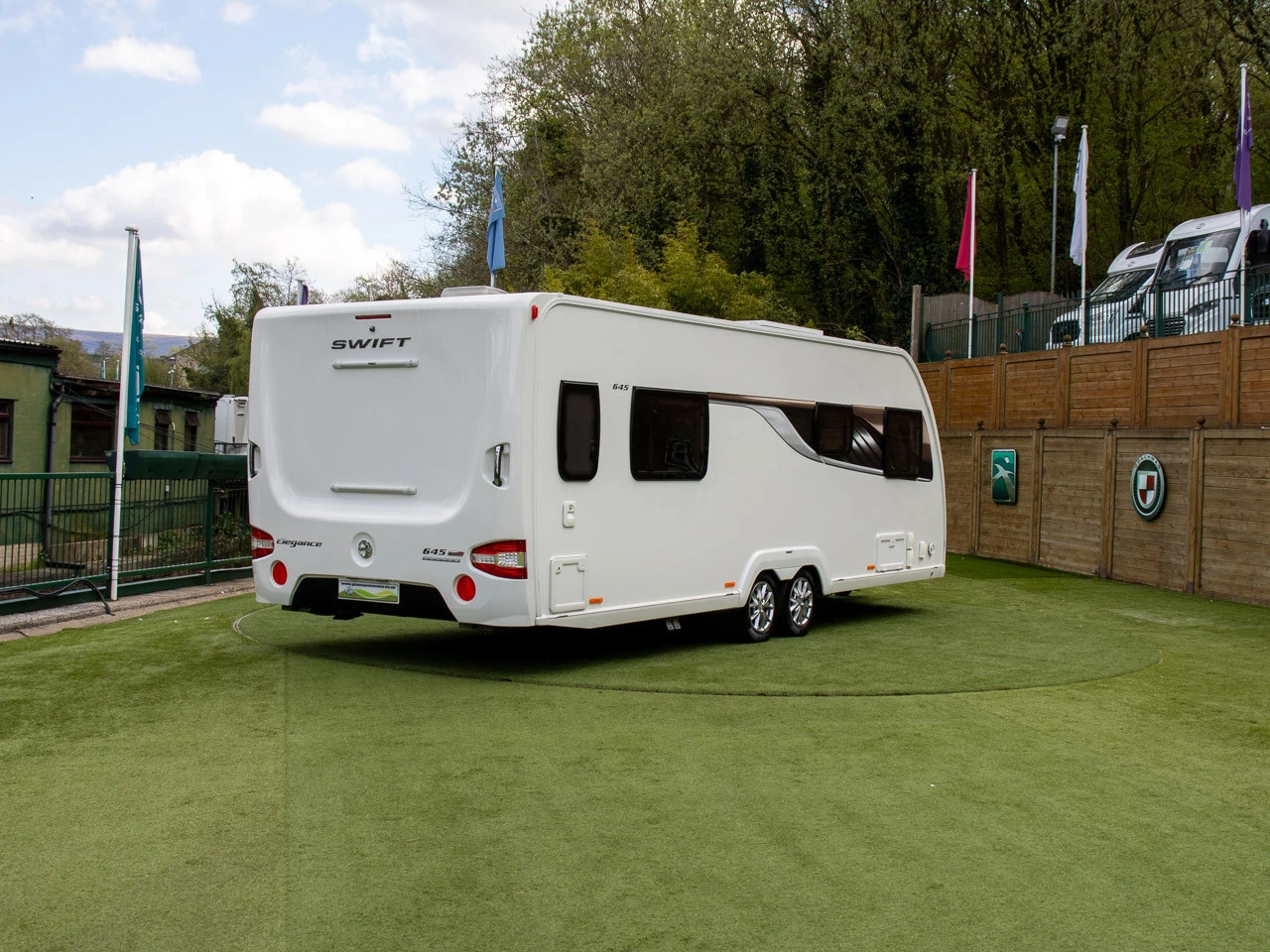 Experience the freedom of adventure with the Swift Elegance Grande 645 2019, a stunning caravan that combines style and functionality in one impeccable package