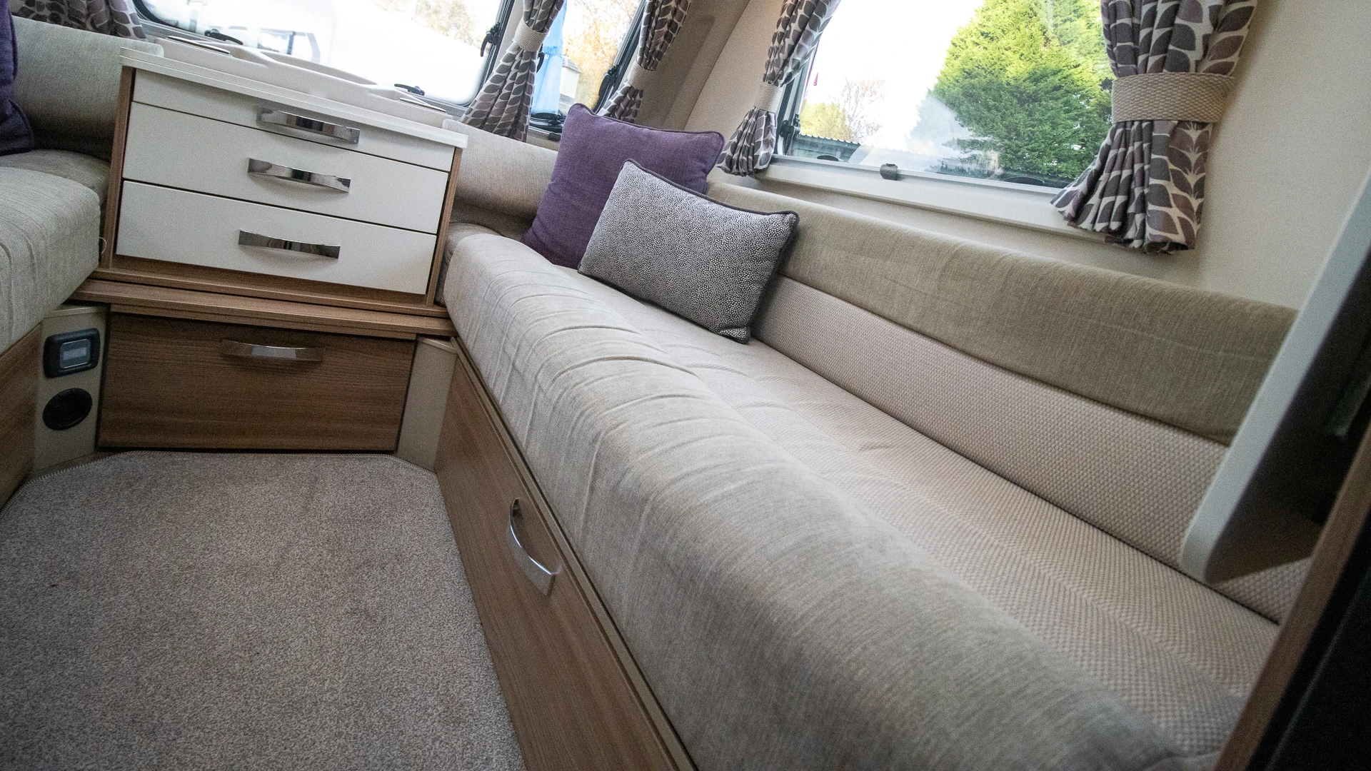GRP side panels: The caravan features durable GRP (Glass Reinforced Plastic) side wall panels, adding long-term durability, weather damage resistance, scratches and wear, helping to maintain the caravan’s appearance and structural integrity in the longer term.