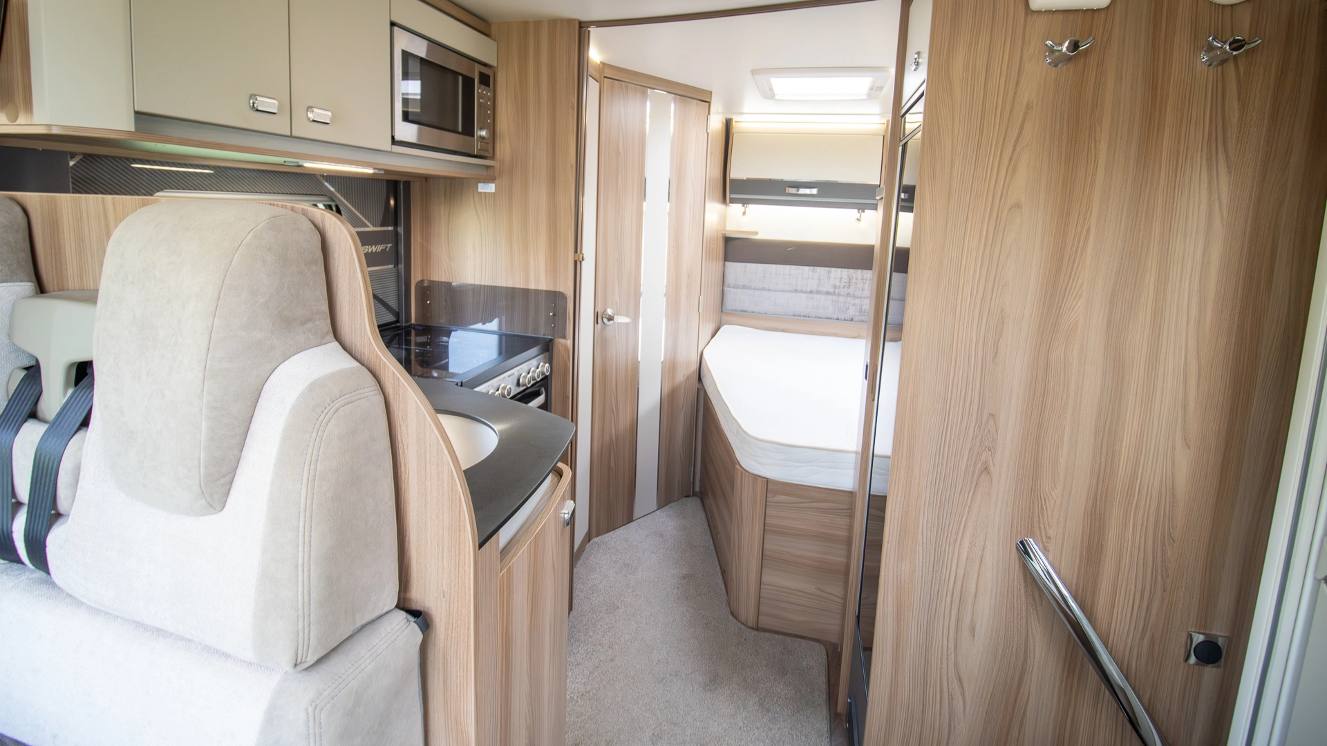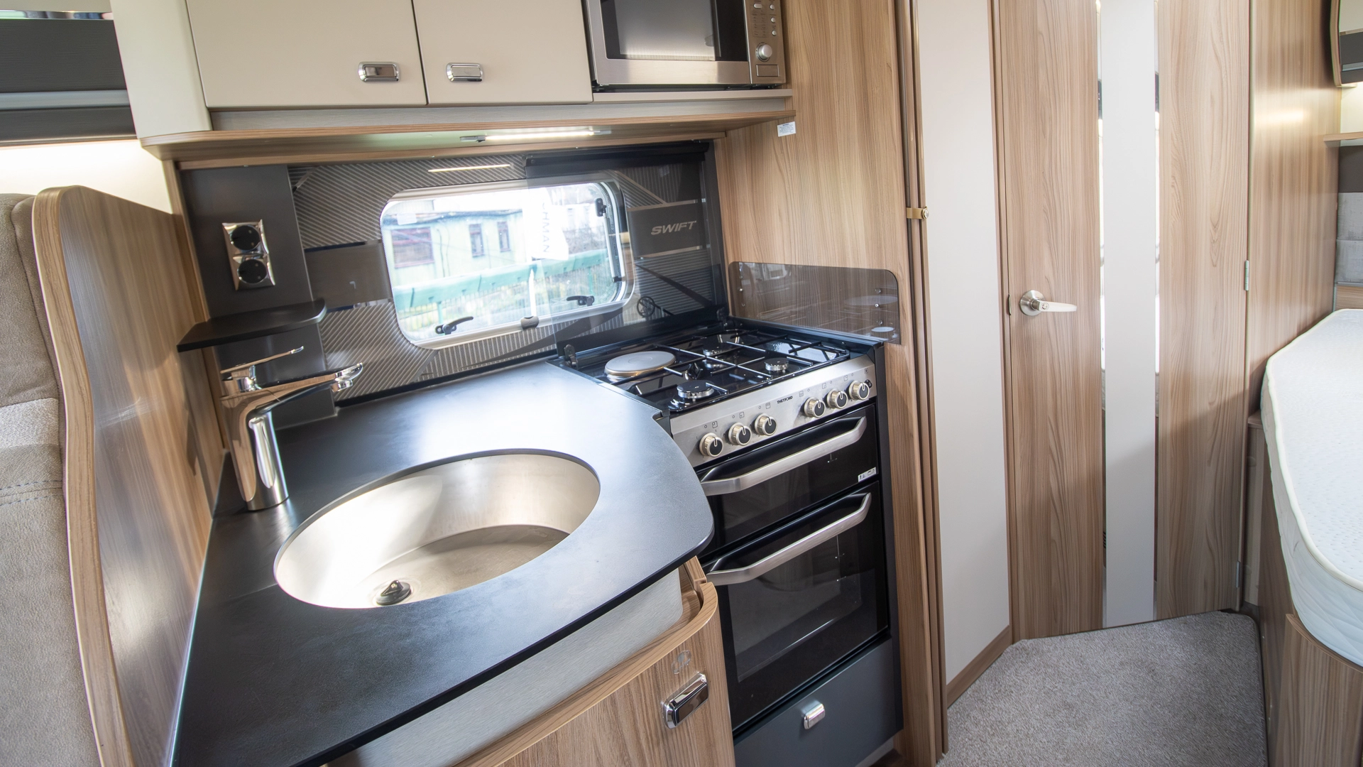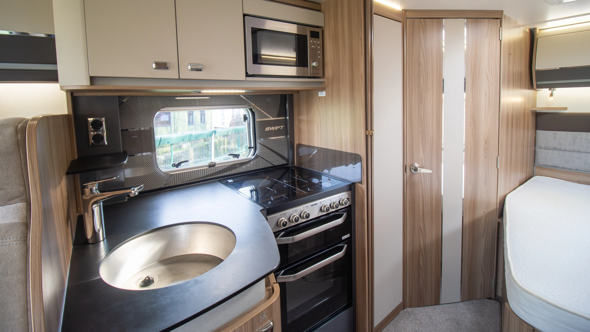 Swift Kontiki Sport 560 2020 Motorhome – Comfortable, Practical Touring The Swift Kontiki Sport 560 2020 is a well designed 4 berth motorhome that blends everyday practicality with thoughtful features, making it a great choice for couples or small families who want comfortable breaks away. Well Equipped Kitchen The Majestic 150’s kitchen comes with a microwave, hob, oven and grill, a large fridge freezer, and ample worktop space, allowing you to prepare proper meals just like at home. Front dinette The front dinette offers a dedicated seating and eating area close to the kitchen, with the additional function to convert into a comfortable double bed when needed. Double Glazing Windows With double glazed windows throughout, this motorhome delivers better insulation and noise reduction for warmer interior and quieter living space when parked near roads. Fixed French Bed The rear of the caravan features a fixed French bed in a dedicated sleeping zone that’s always ready to use, offering a restful night’s sleep without the need to convert seating into a bed each evening. Reversing Cameras Easily navigate out of or into narrow parking spaces with the reversing cameras, allowing you to see your surroundings while you find the perfect spot. Wind-Out Awning Relax with a meal and a beverage under the night sky or sunny morning with the wind-out awning, comfortably extending your living space to the outdoors and fresh air. The Swift Kontiki Sport 560 2020 brings flexible living to your holiday. With the well equipped kitchen, flexible sleeping arrangements, double-glazing windows, wind-out awning, and reversing cameras, this Motorhome delivers year-round comfort.