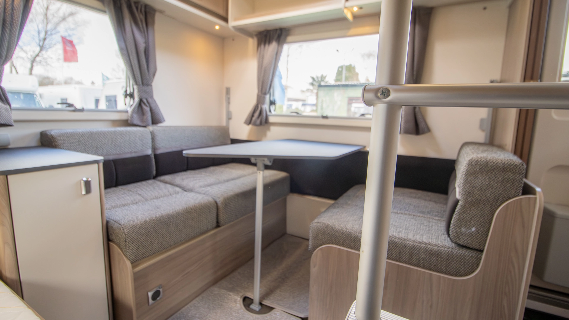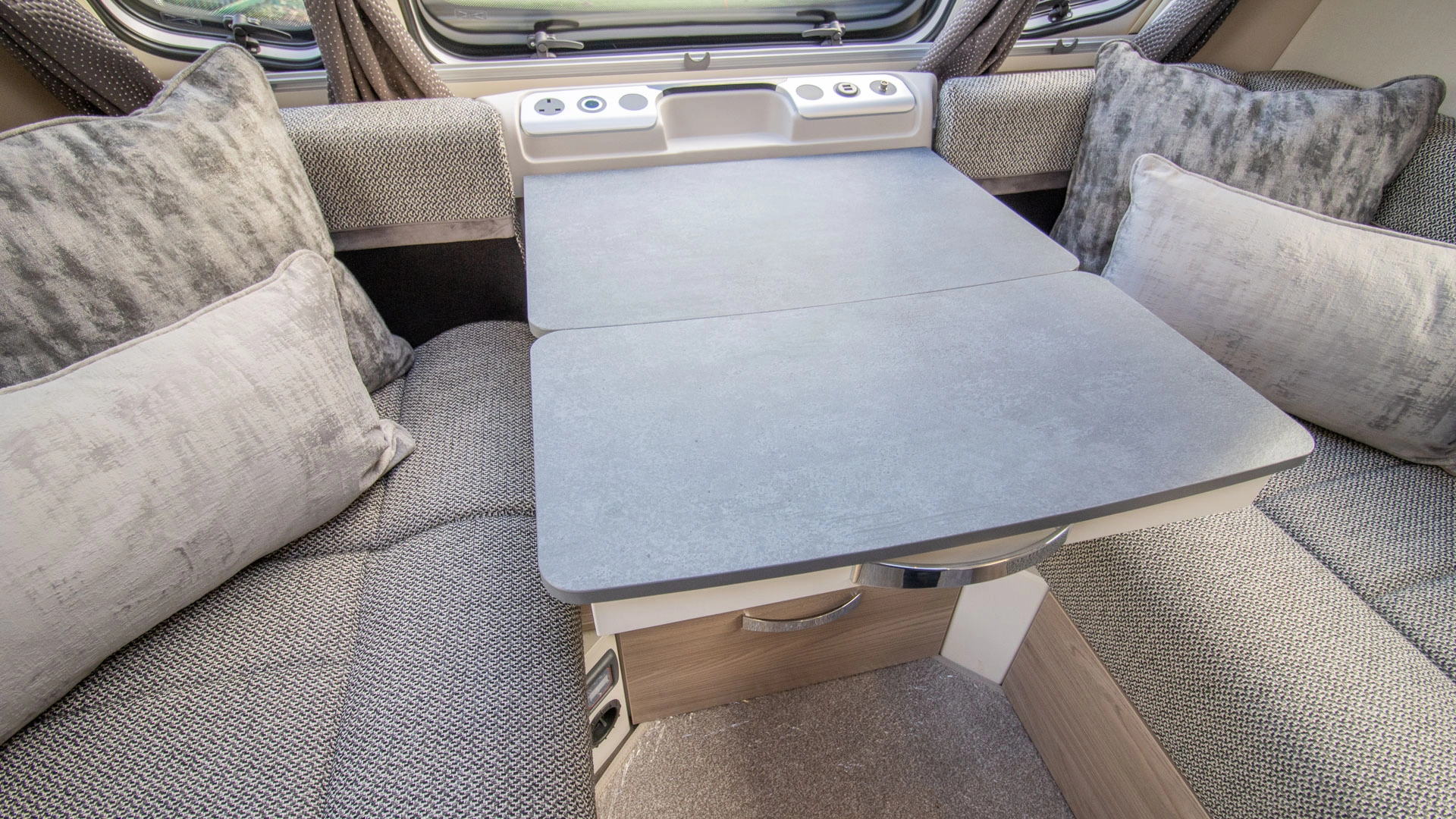 The side dinette provides a dedicated area for dining, games or socializing during the day, with the functionality to convert into a comfortable bed at nighttime.