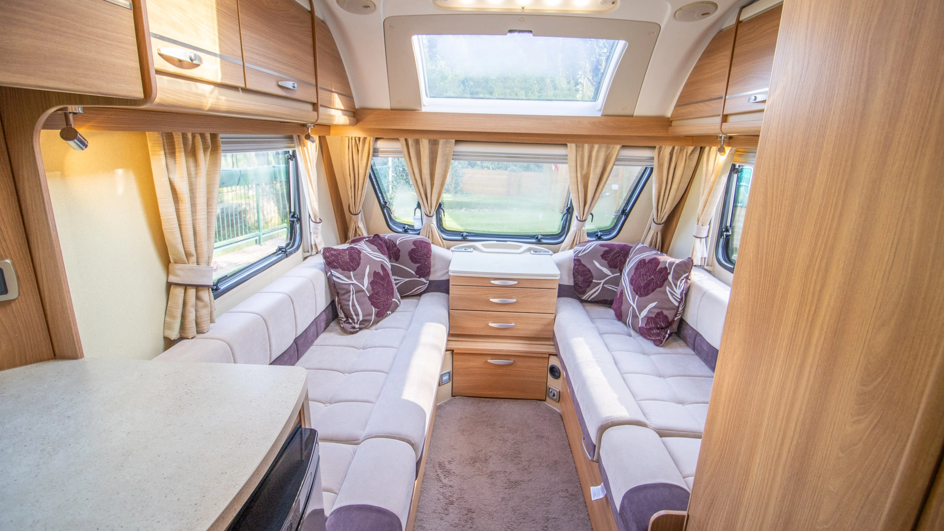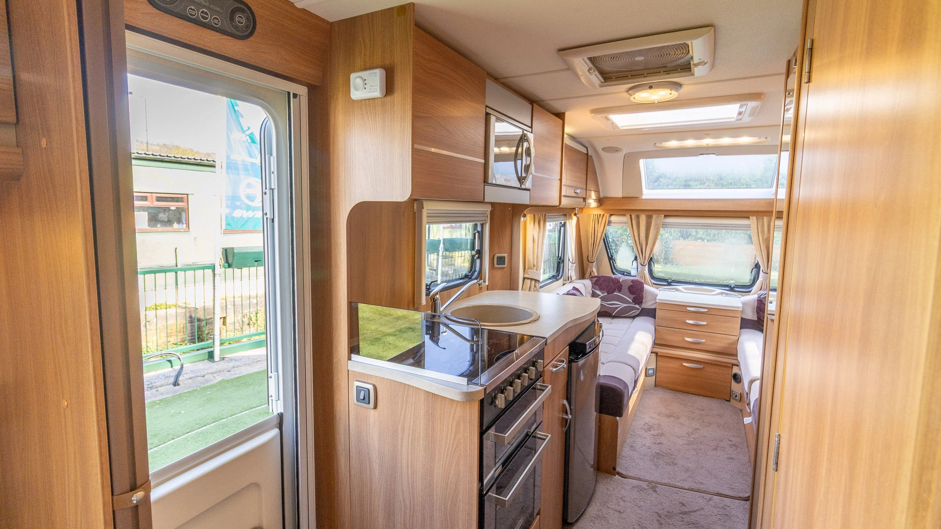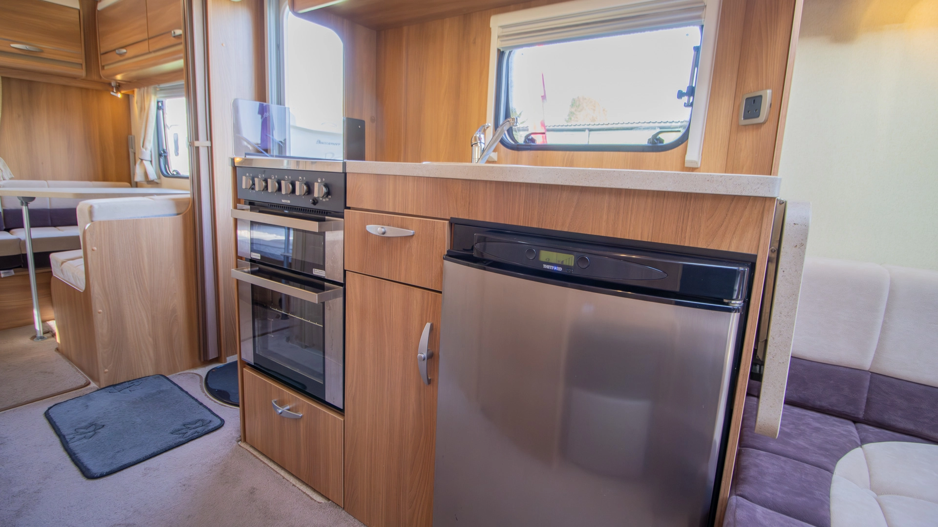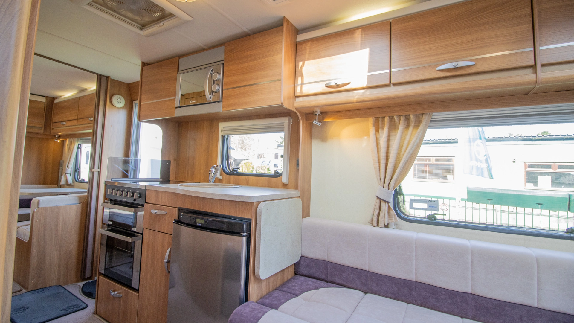 Fitted above the cooking area, the extractor fan maintains the caravan’s fresh atmosphere by efficiently removing cooking odours from the kitchen.