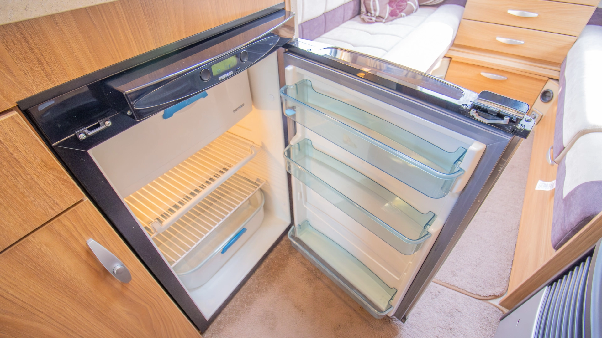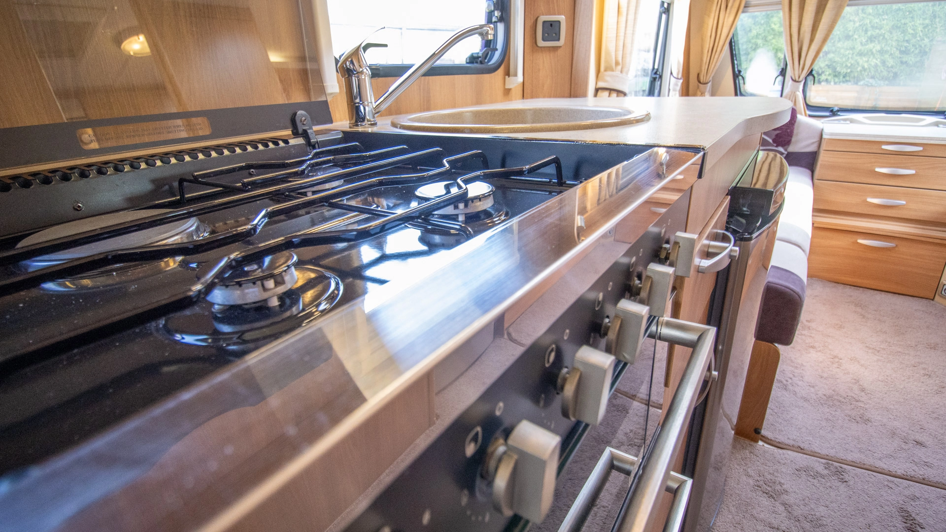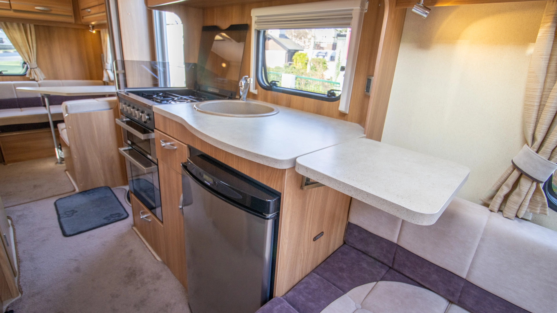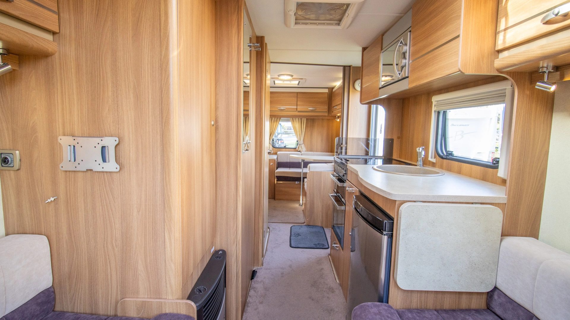 Fitted above the cooking area, the extractor fan maintains the caravan’s fresh atmosphere by efficiently removing cooking odours from the kitchen.