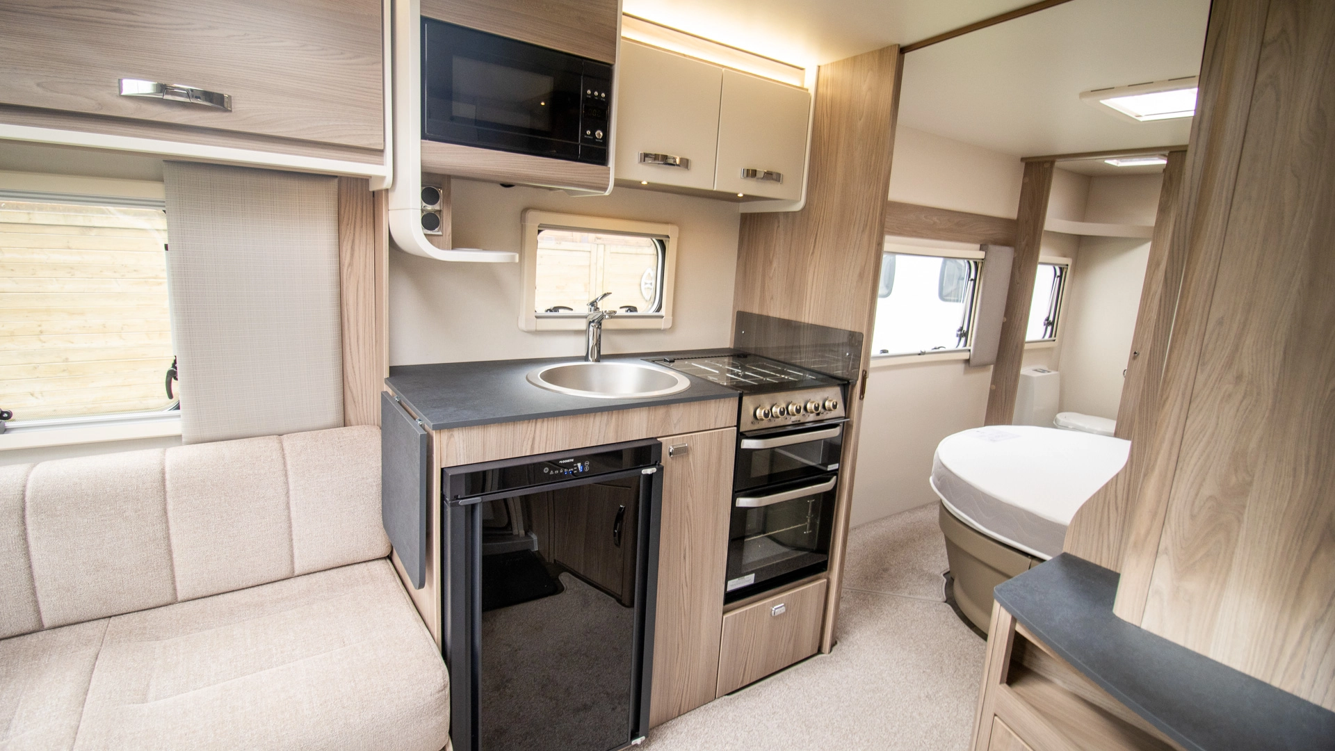 The kitchen comes with a microwave, hob, oven and grill, fridge‑freezer and plenty of worktop space, allowing you to prepare full meals on site.