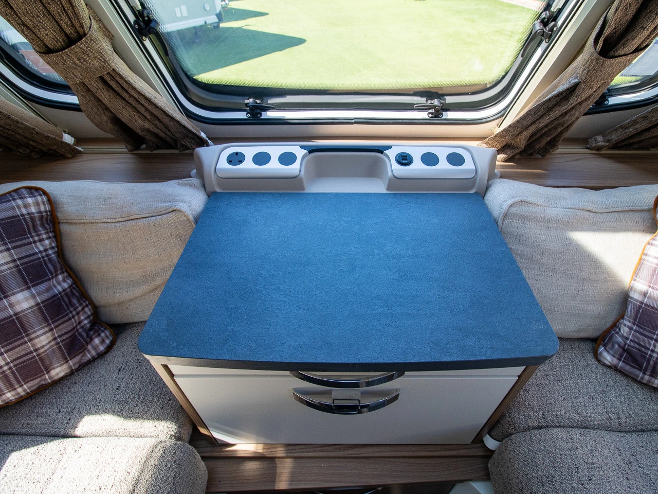 Enjoy cozy evenings in the parallel sofa lounge, enhanced by Truma Blown Air Heating to keep things warm and inviting