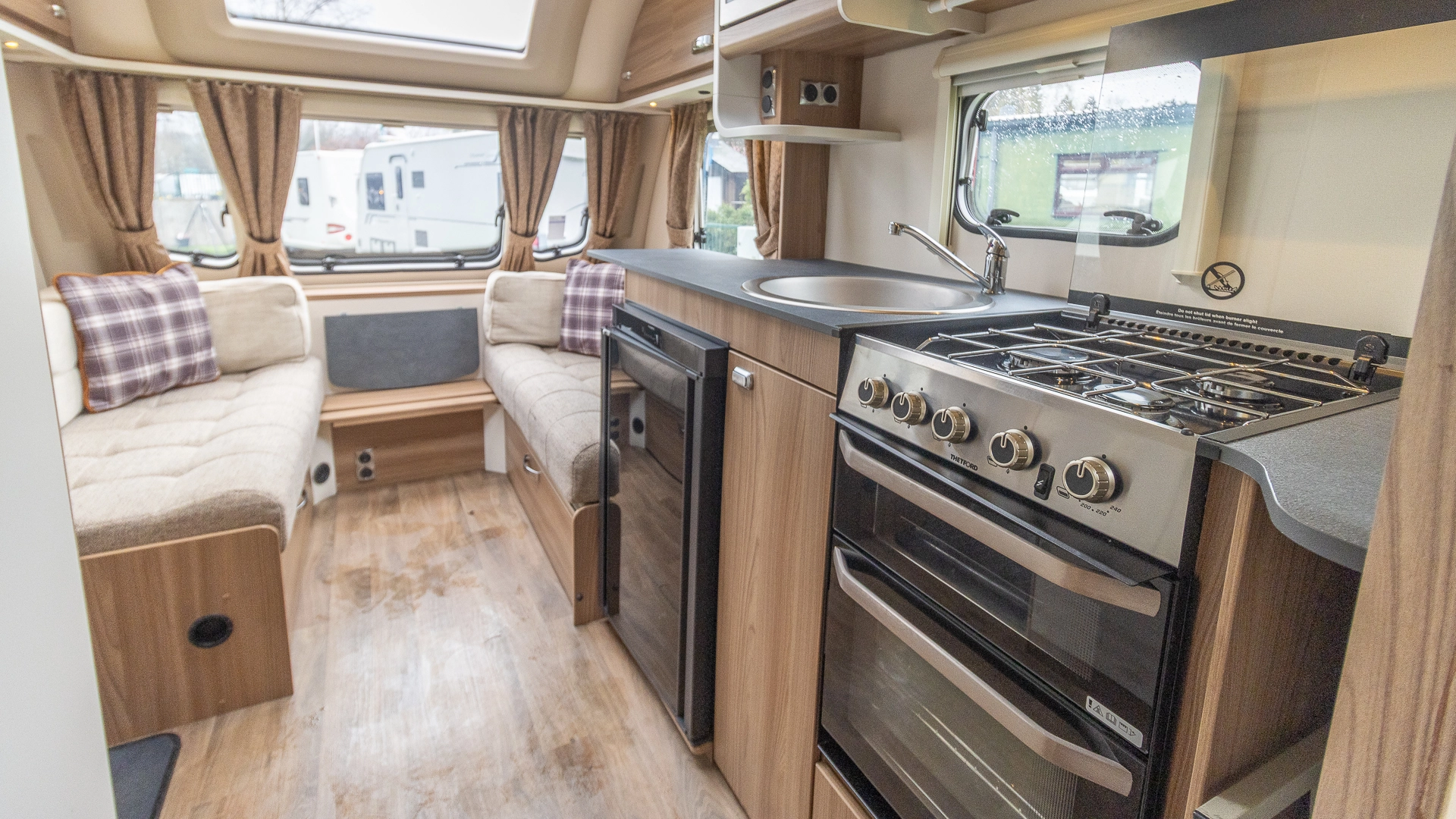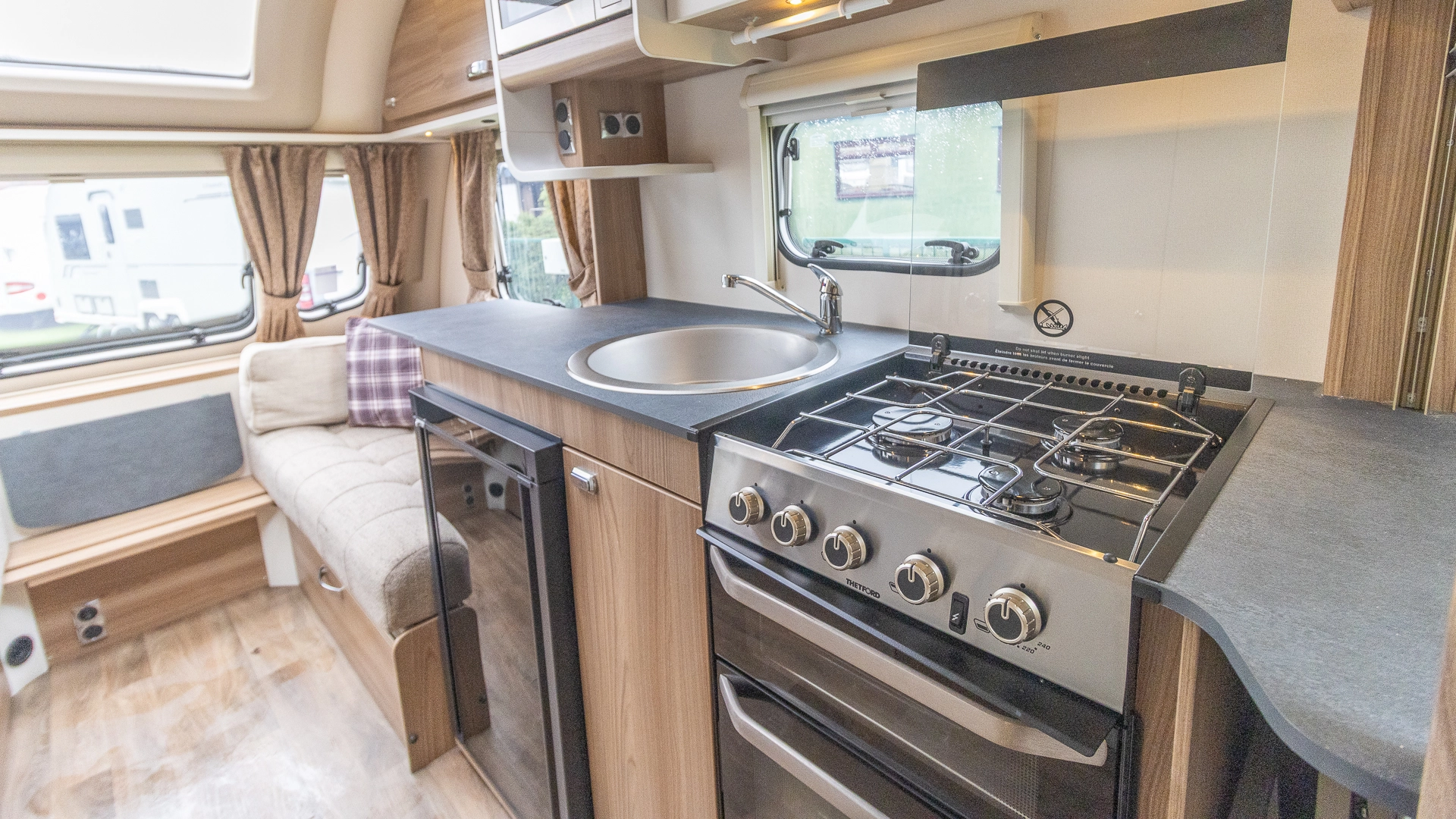 Built with rugged Glass Reinforced Plastic side panels, this caravan benefits from weather‑resistant, low‑maintenance exterior protection, helping to reduce wear and tear.