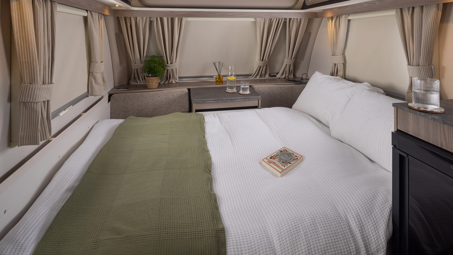 • Curtains to all windows (except kitchen, washroom and bunk bed windows)