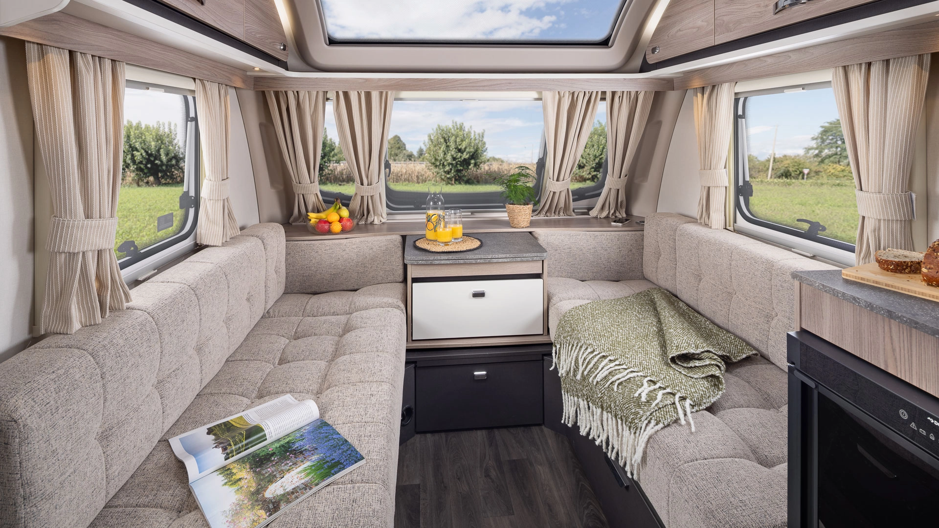 - Midi-Heki rooflight with flyscreen and adjustable concertina blind in lounge