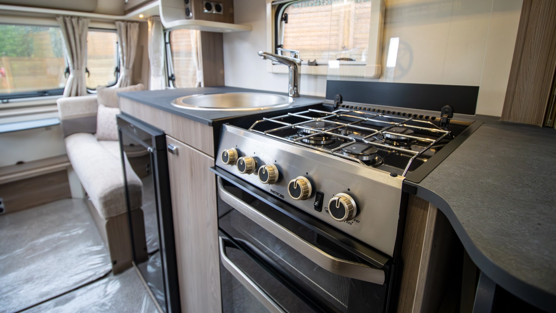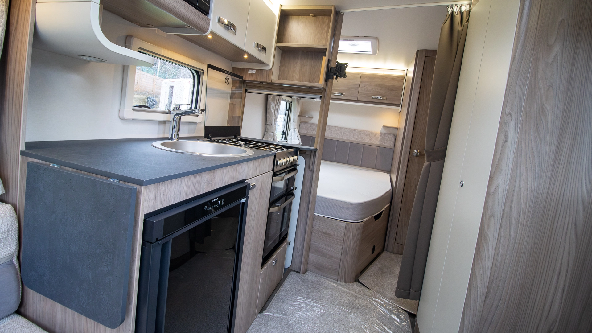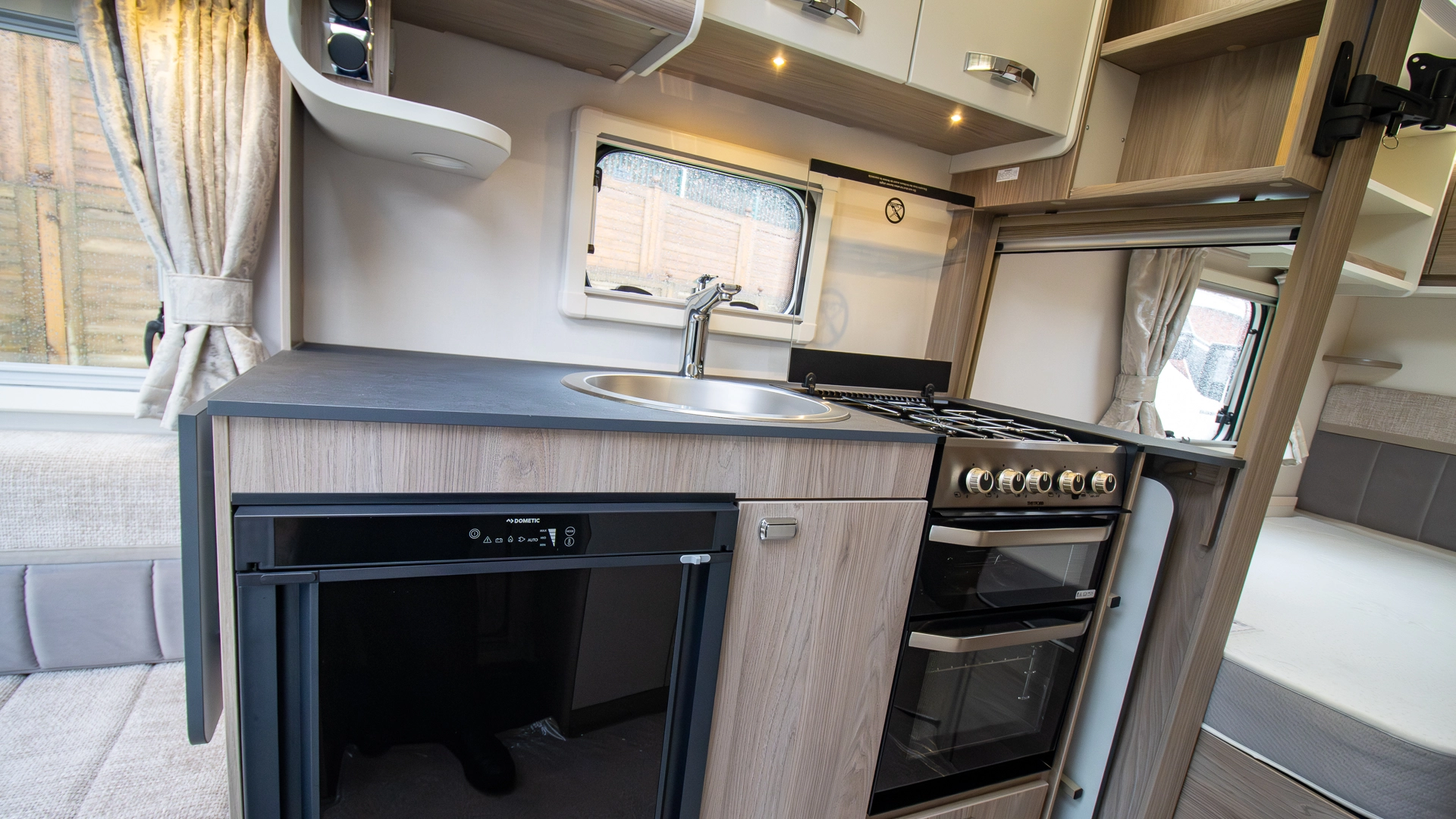 Featuring a fully fitted kitchen complete with a microwave, hob, oven and grill, fridge‑freezer and plenty of worktop and storage space, preparing full meals on the road is made easy and convenient.