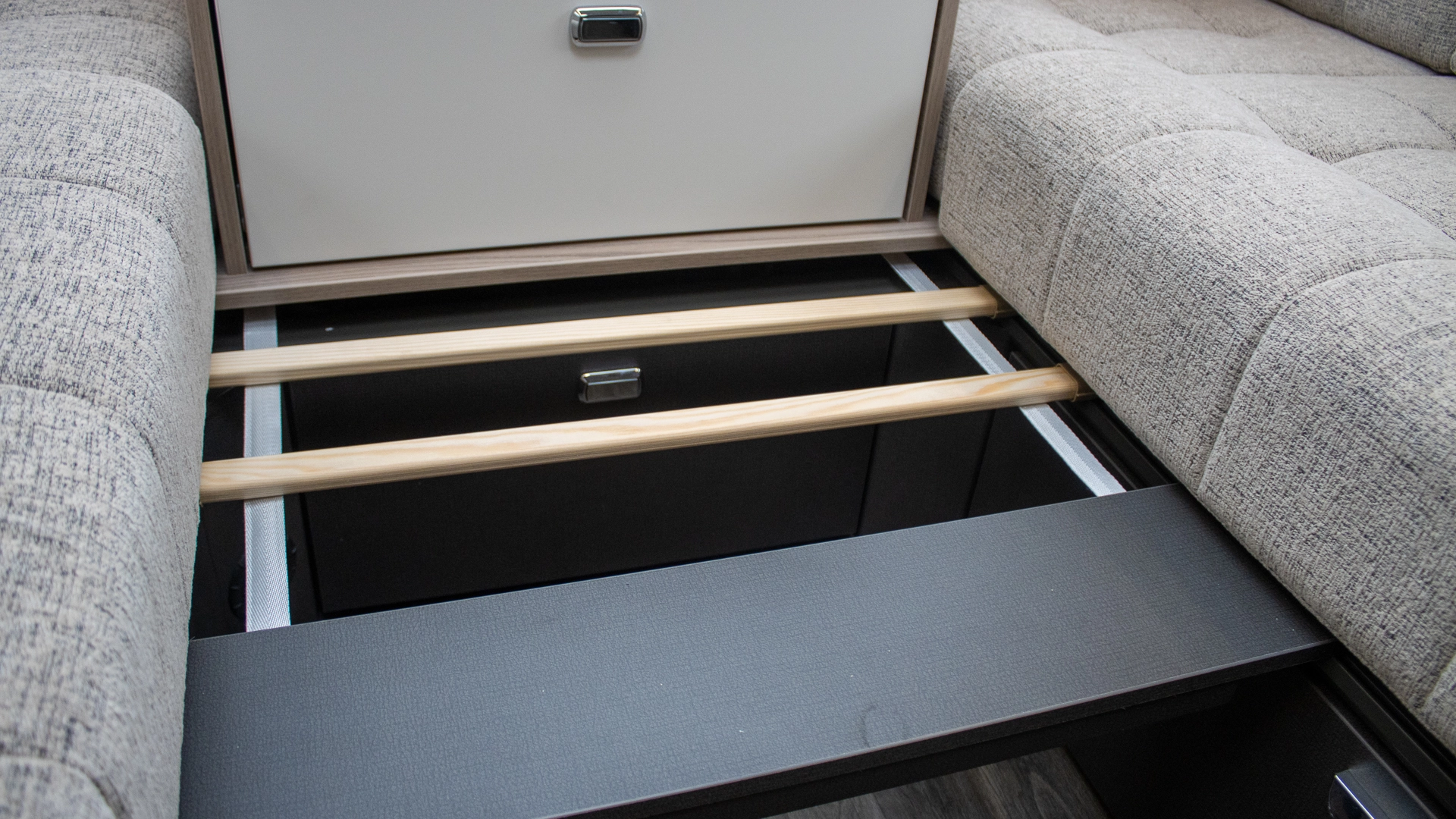 - Aluminium bed frames to maximise strength and storage space (fixed beds)