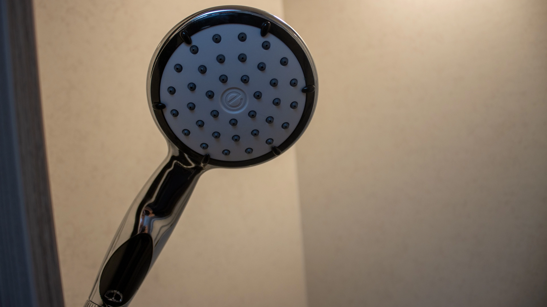 - Ecocamel Jetstorm showerhead with on/off button for a powerful shower that uses less water