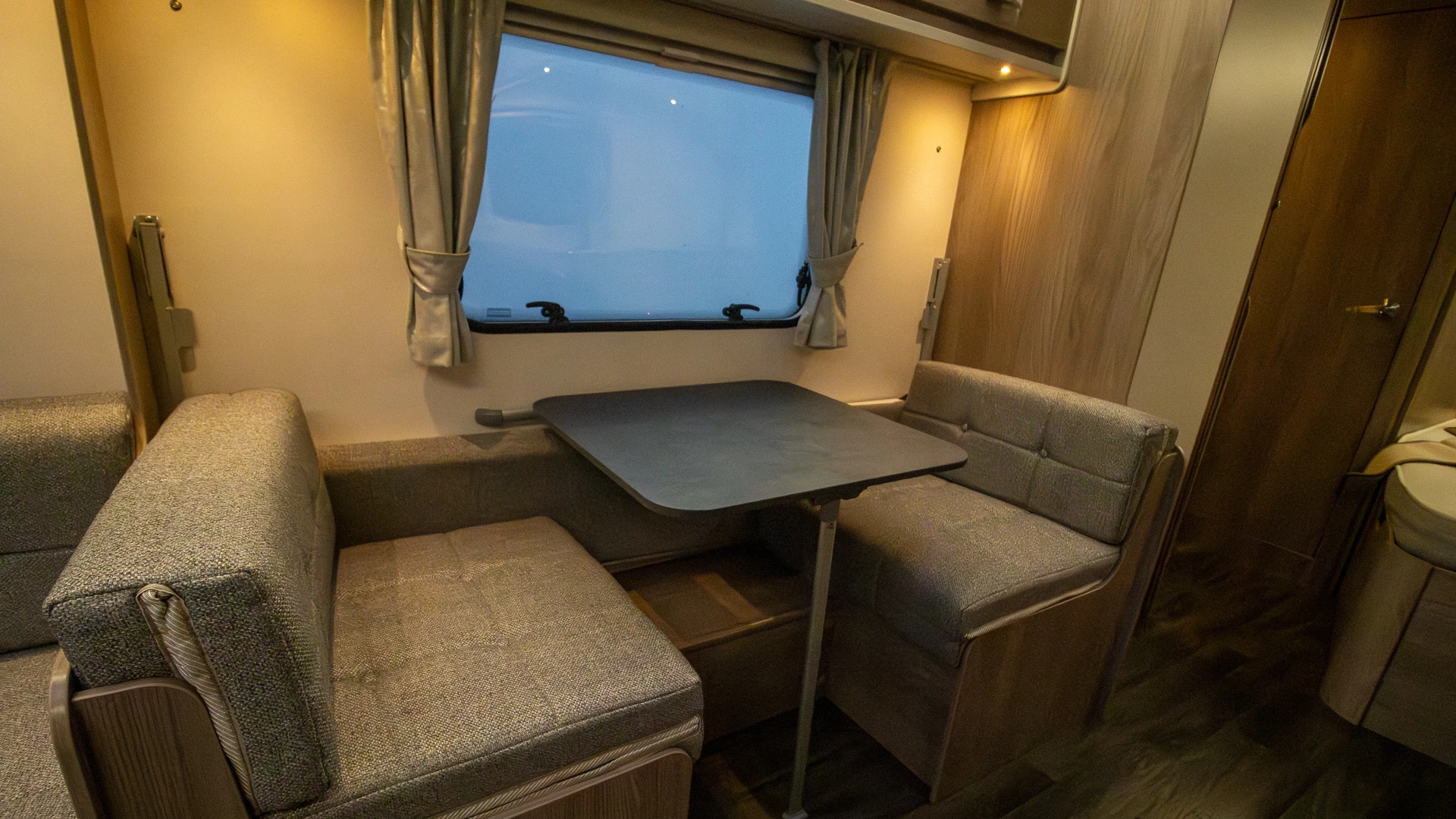 The side dinette provides a dedicated area for dining, games or socializing during the day, with the functionality to convert into a comfortable bunk bed at nighttime.