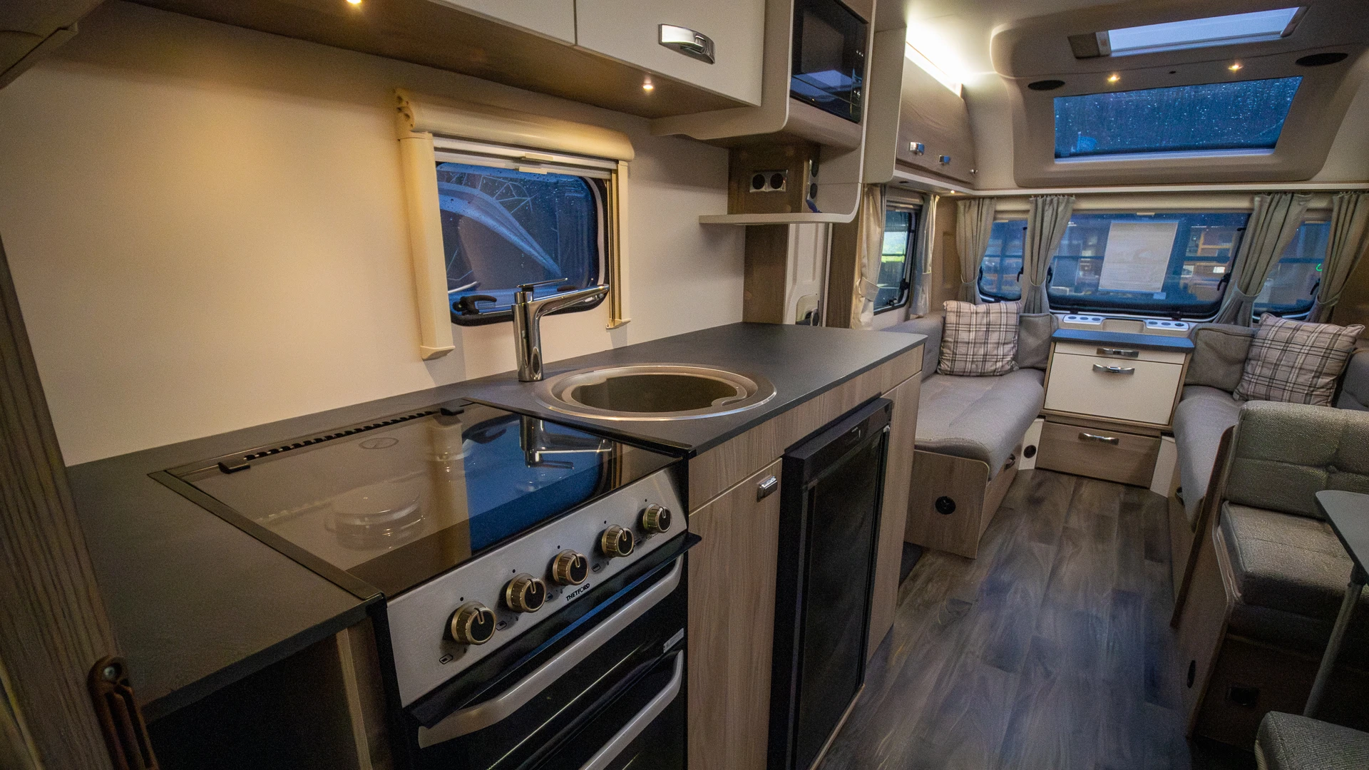 The kitchen comes with a microwave, hob, oven and grill, fridge‑freezer and plenty of worktop space, allowing you to prepare full meals on site.