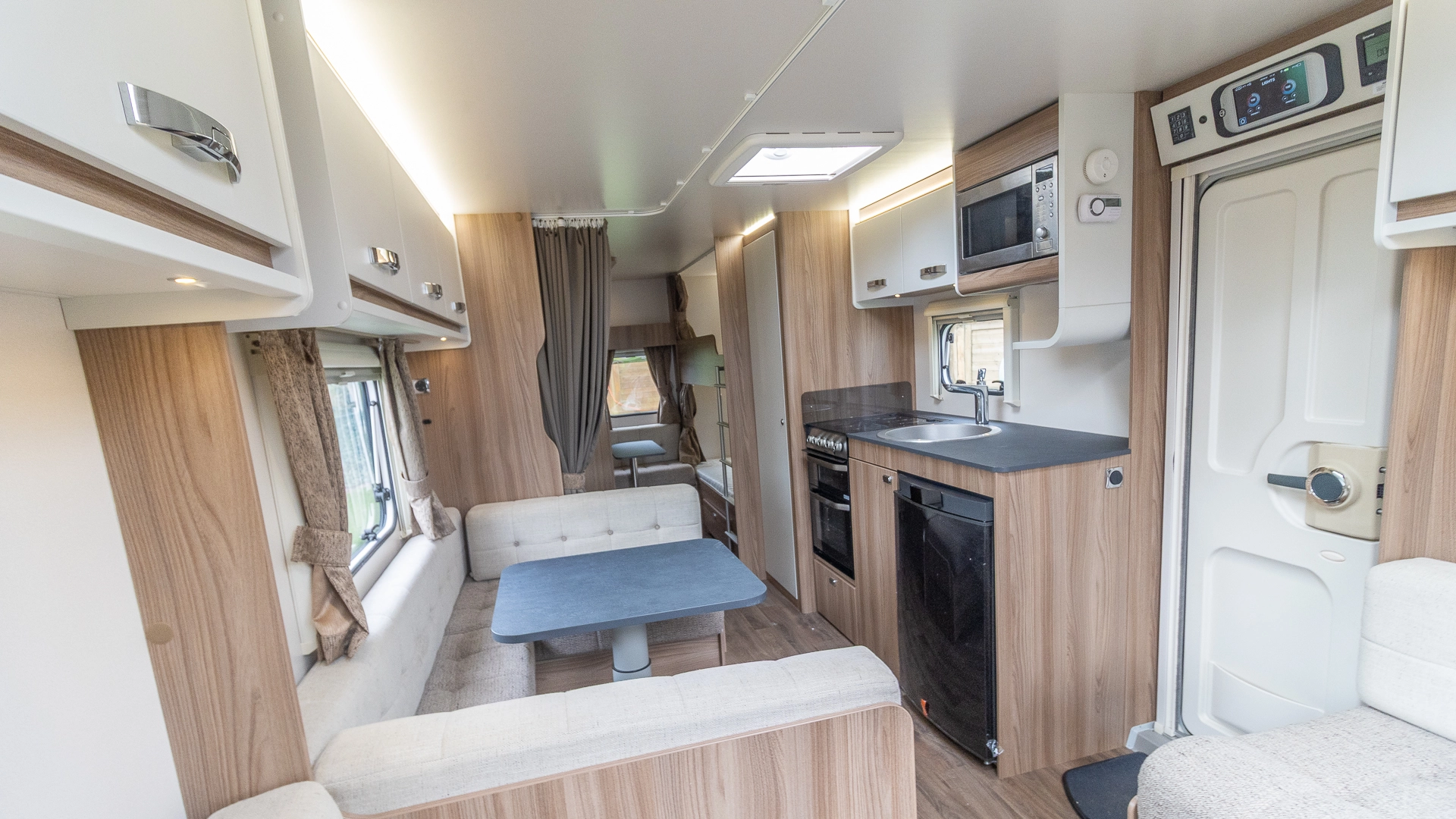 Built with rugged Glass Reinforced Plastic side panels, this caravan benefits from weather‑resistant, low‑maintenance exterior protection, helping to reduce wear and tear.