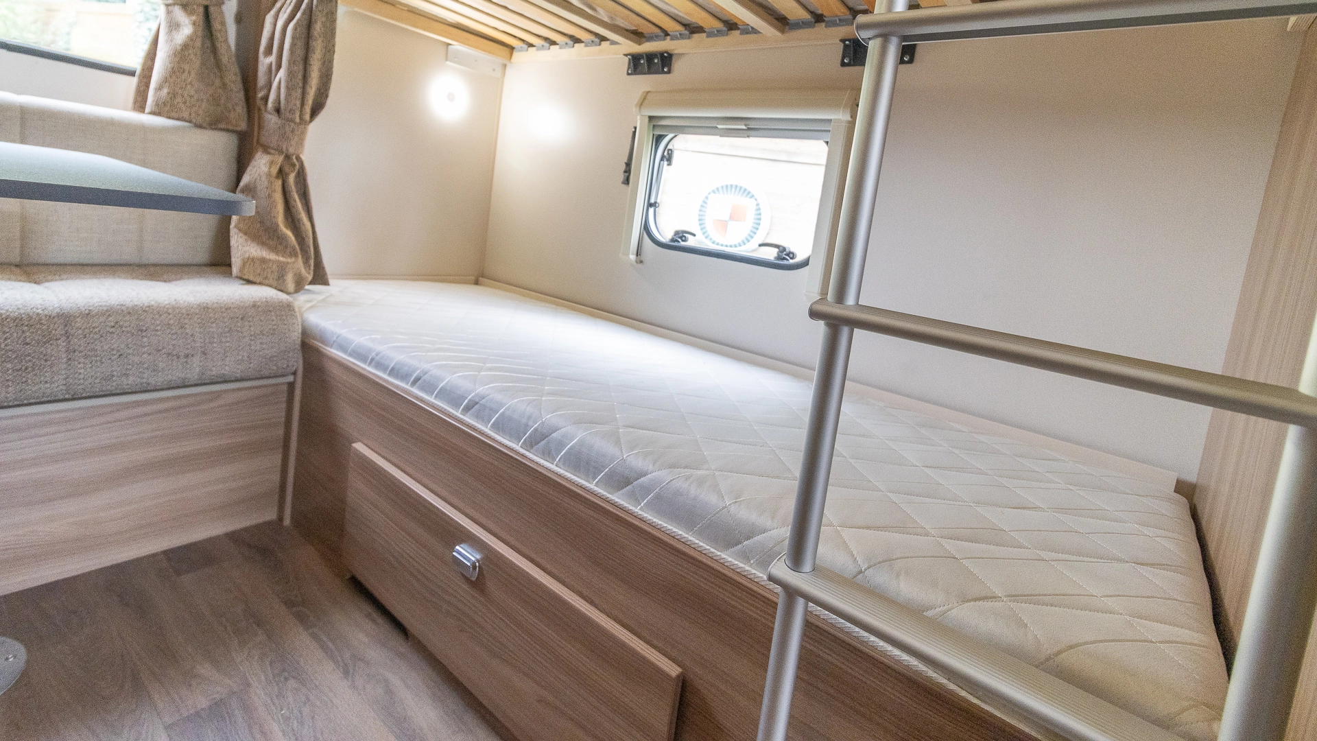 Requiring no nightly bed-making, the fixed bunk beds provide a dedicated sleeping zone that’s ready for a relaxing night of sleep after a long day of holidaying.