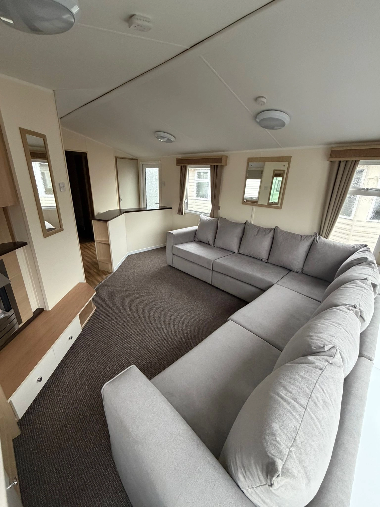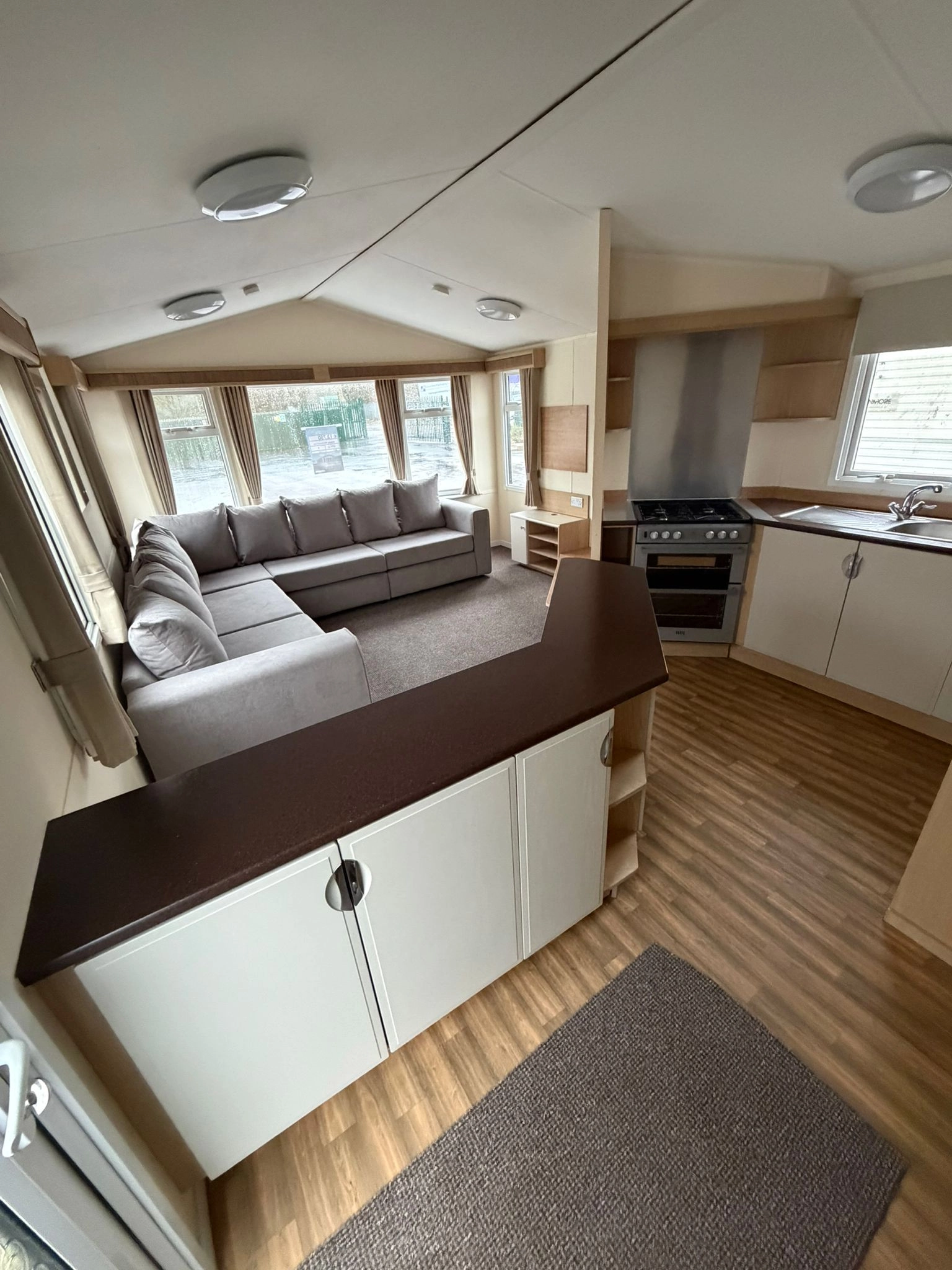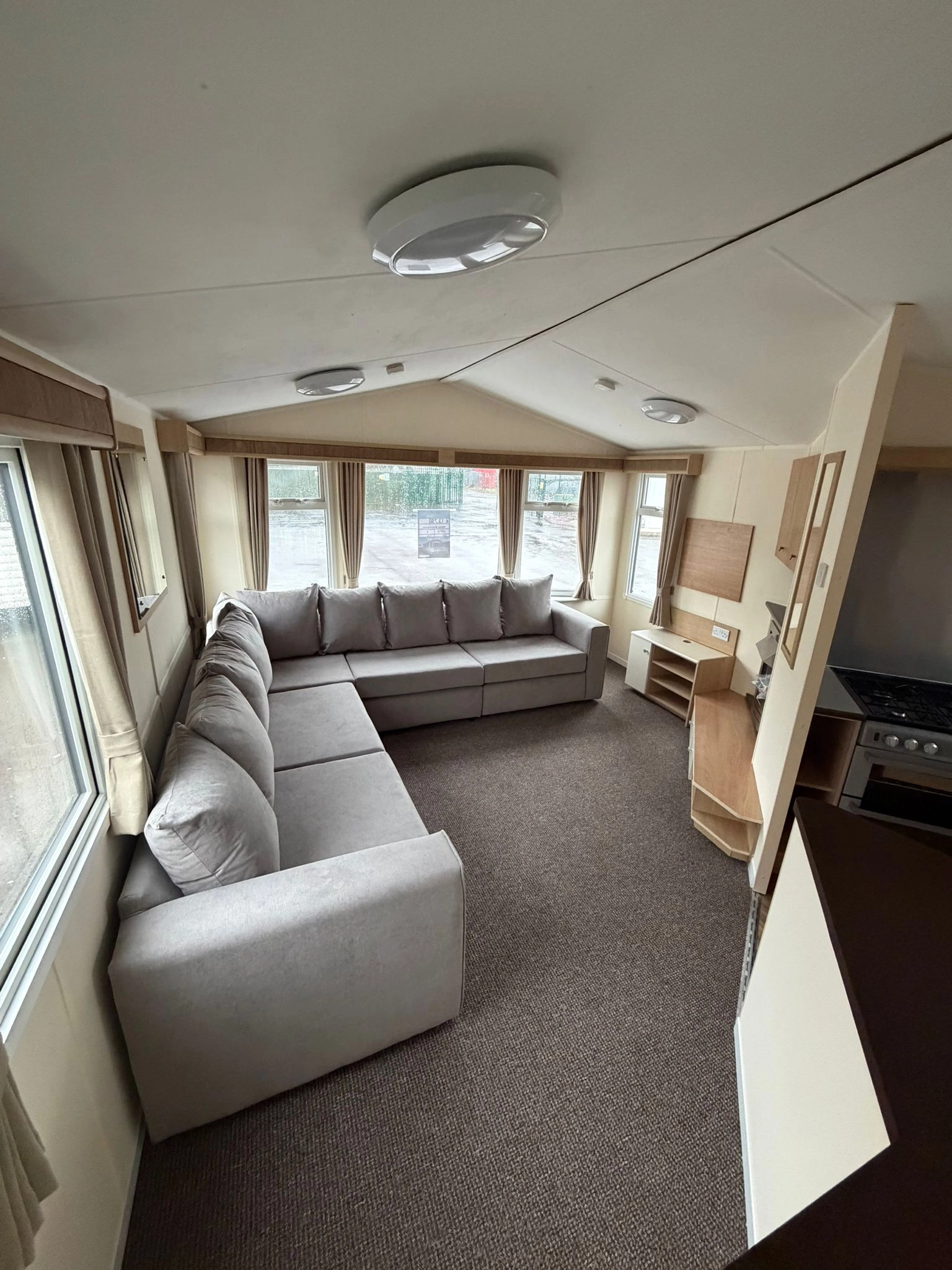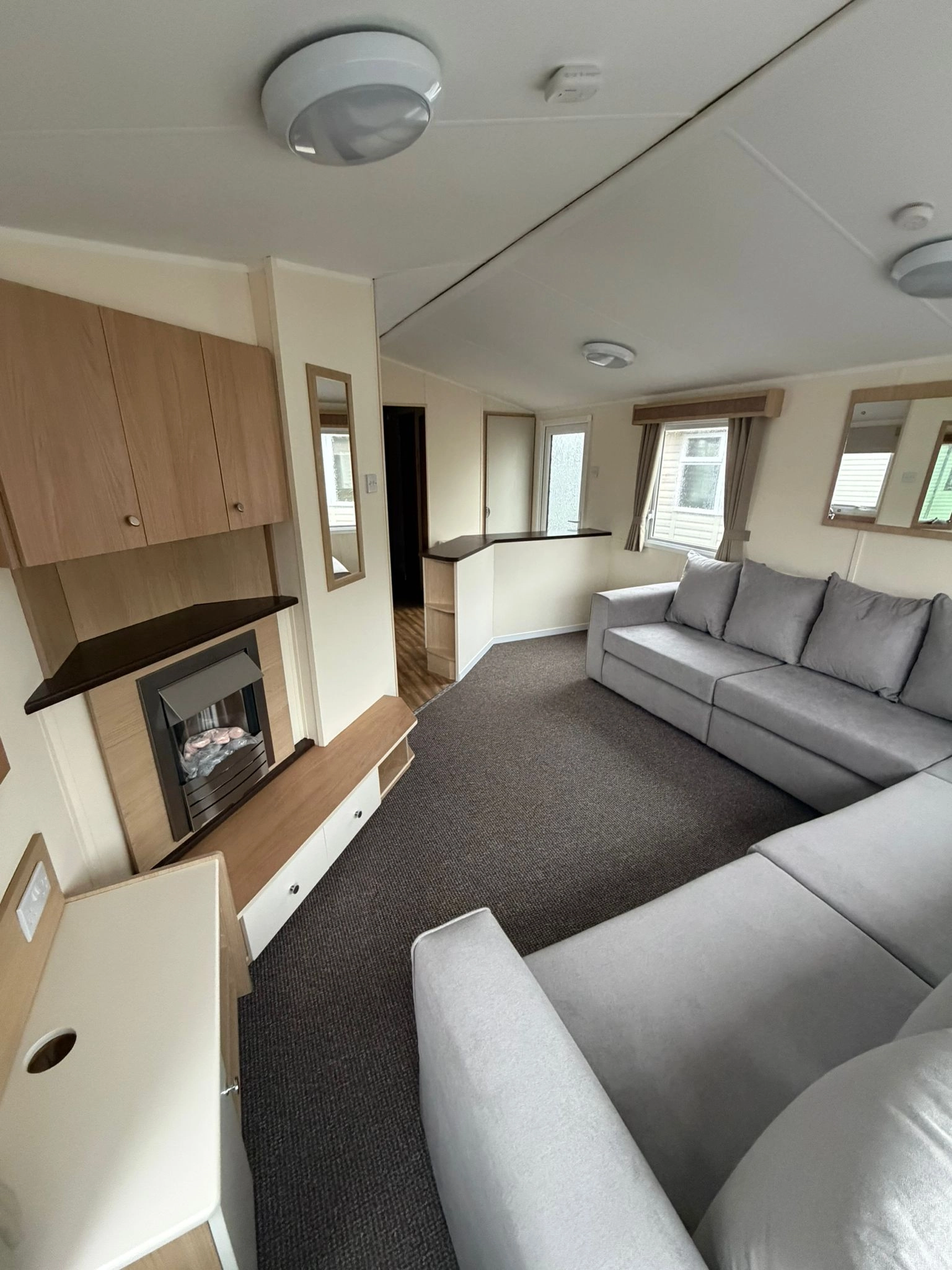 The Open plan Front section of the caravan creates a Spacious, Relaxing Living Space, enhanced by large Windows and L Shaped Seating Area. The lounge Also Comes with a fire for extra warmth alongside the central heating throughout the winter months.