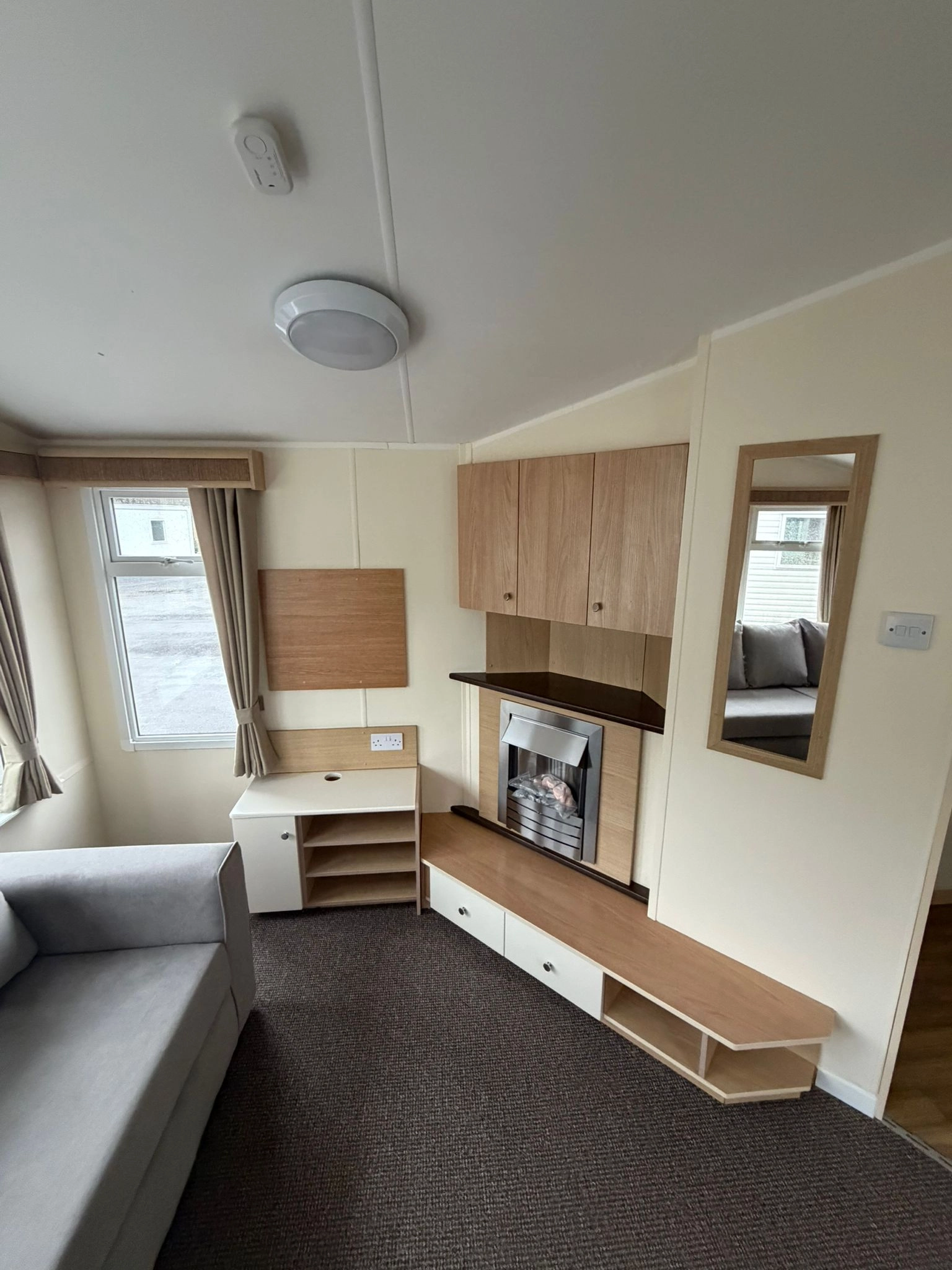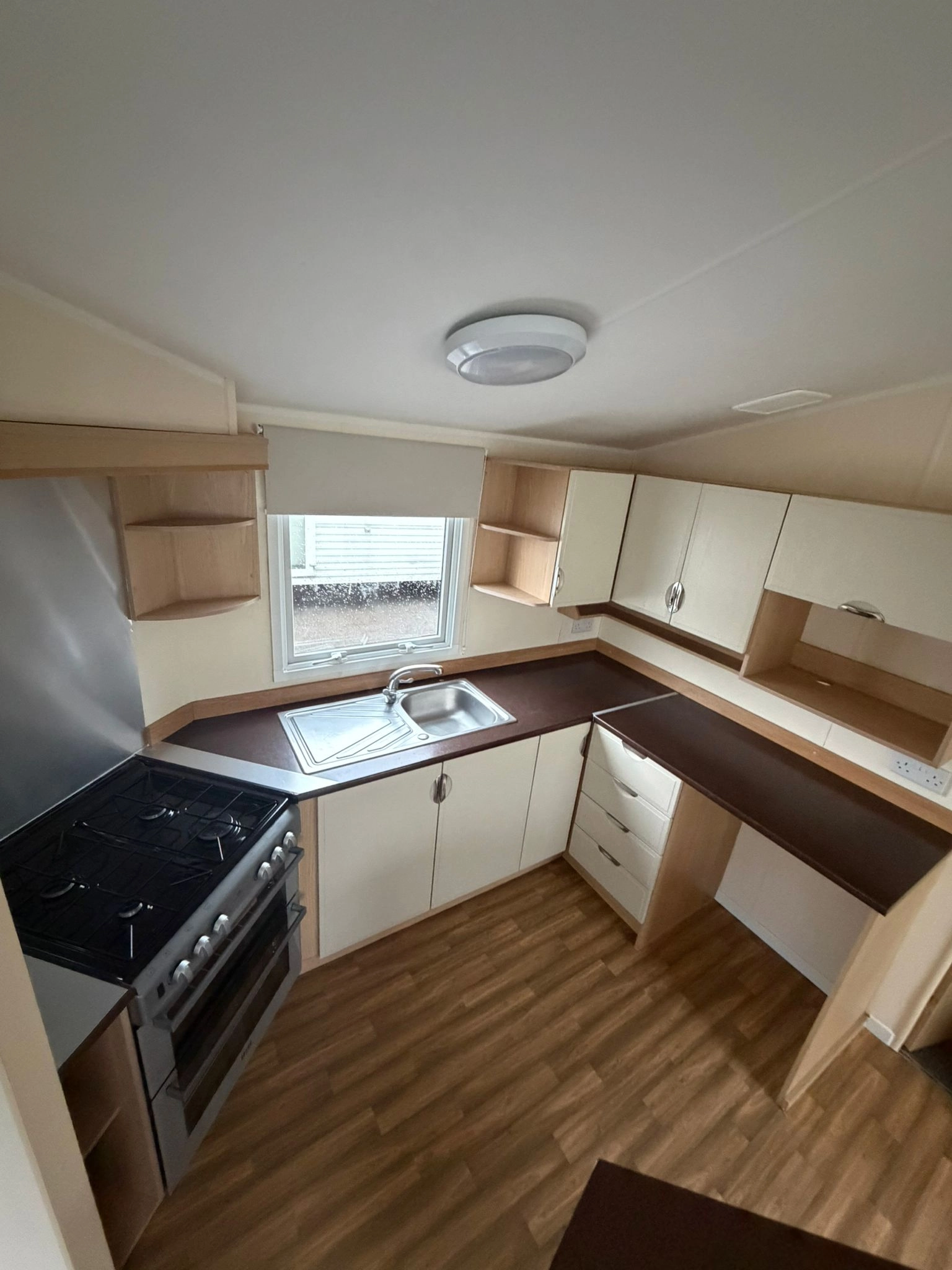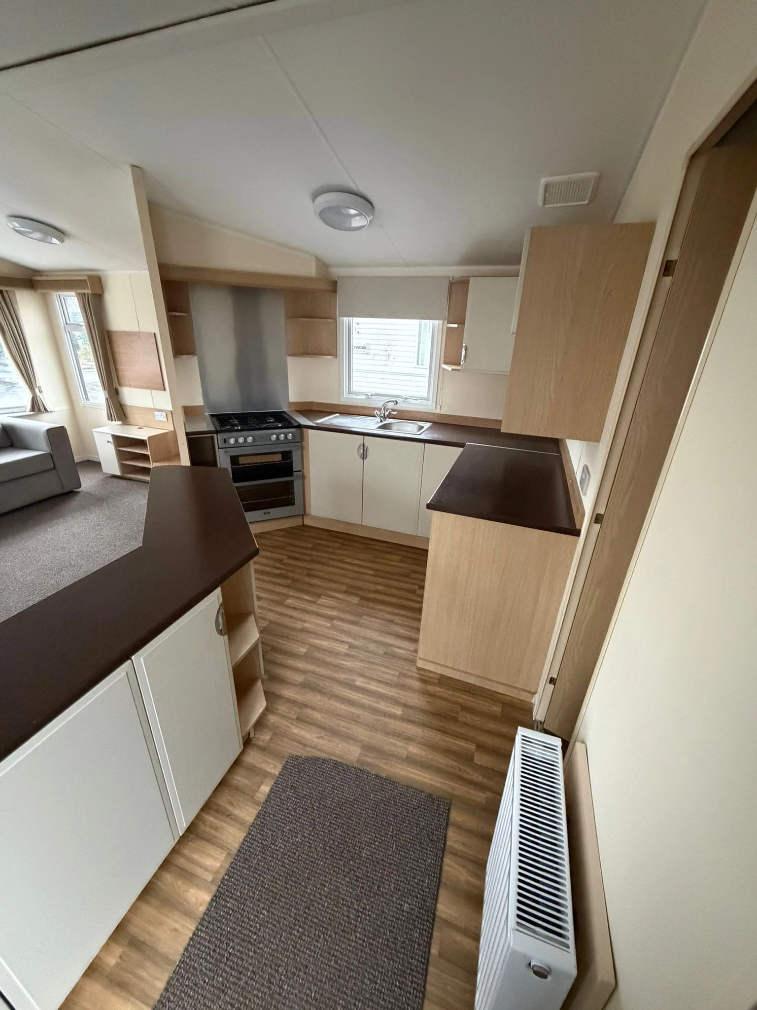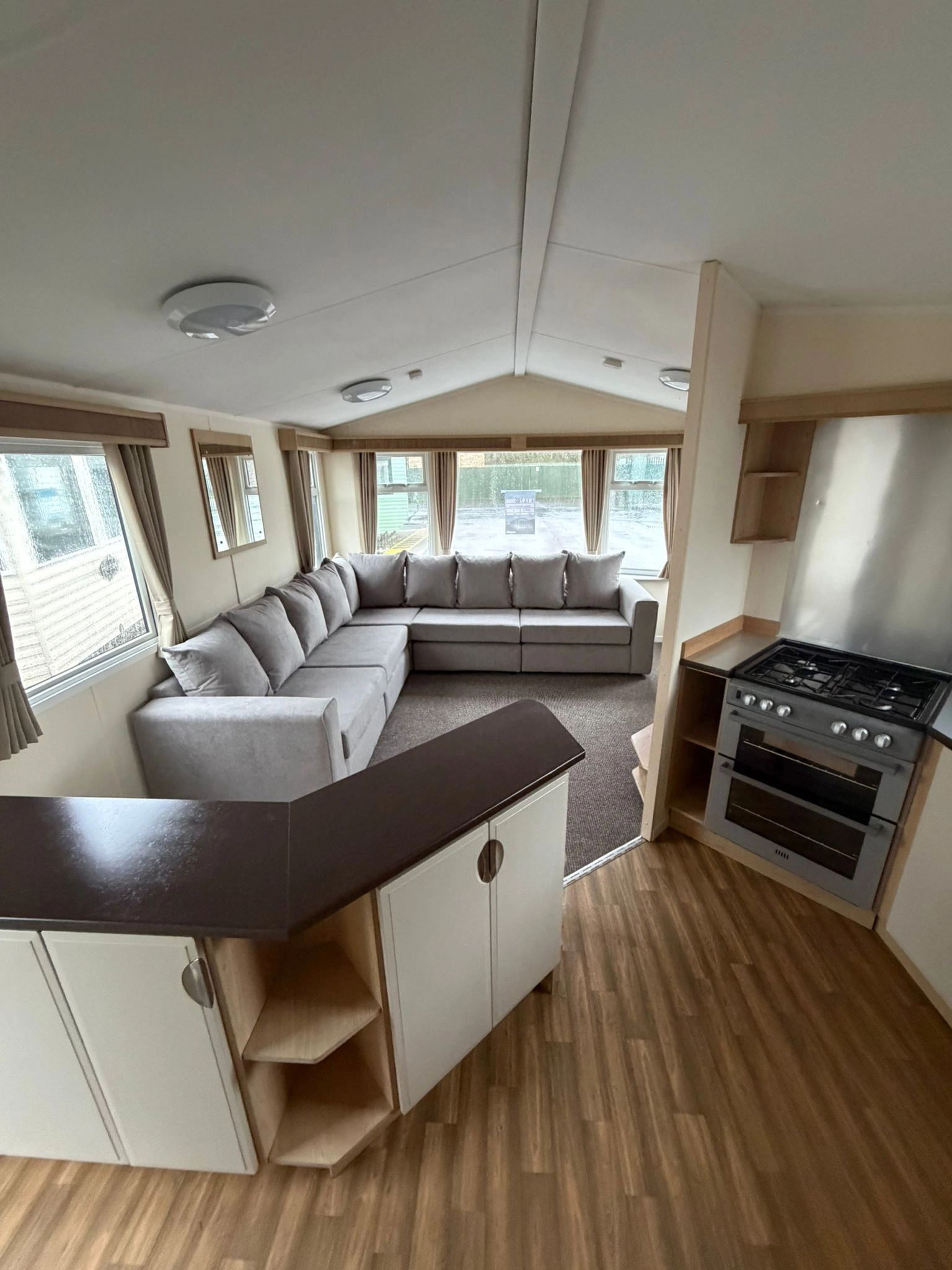 The Open plan Front section of the caravan creates a Spacious, Relaxing Living Space, enhanced by large Windows and L Shaped Seating Area. The lounge Also Comes with a fire for extra warmth alongside the central heating throughout the winter months.