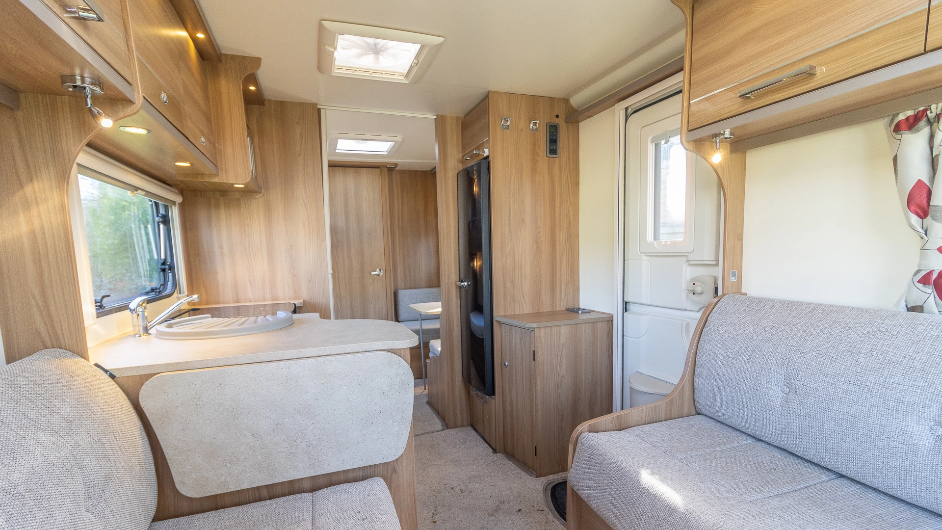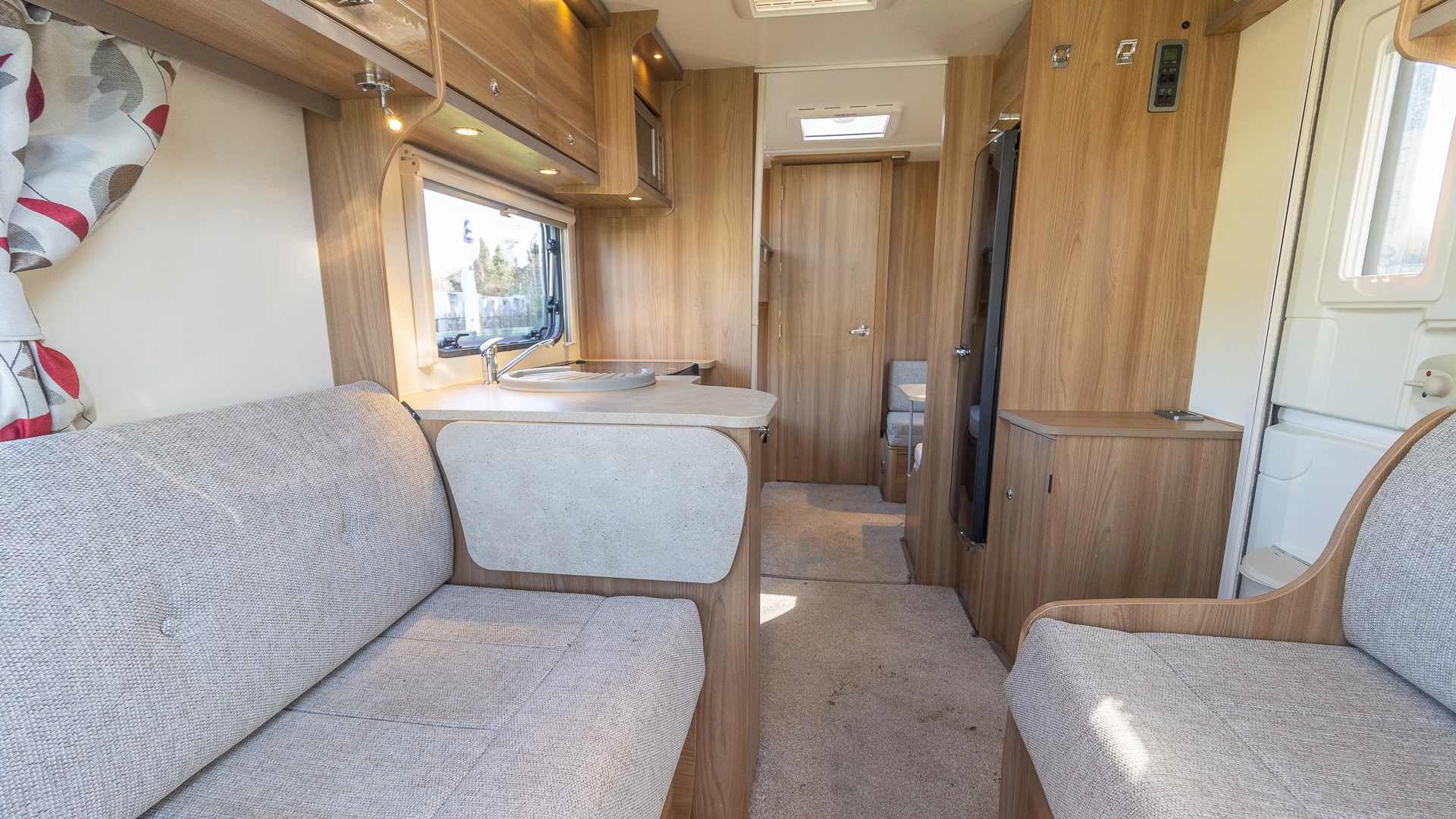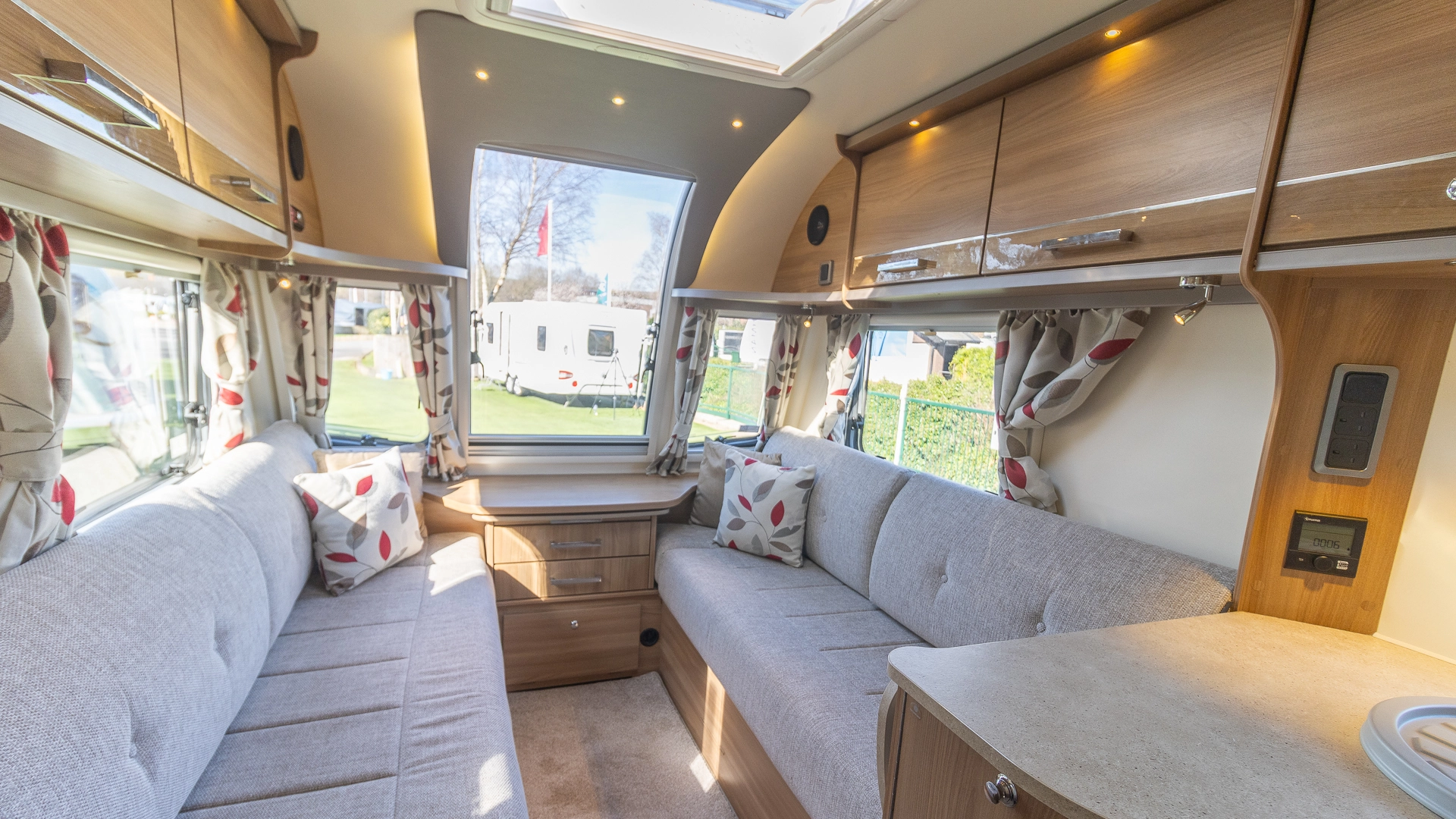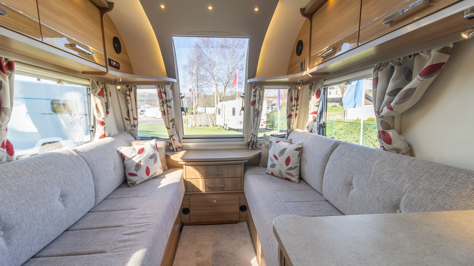 Parallel Seating Bed The front lounge features twin sofas that create a bright, sociable living area during the day, and can convert into a comfortable double bed at night