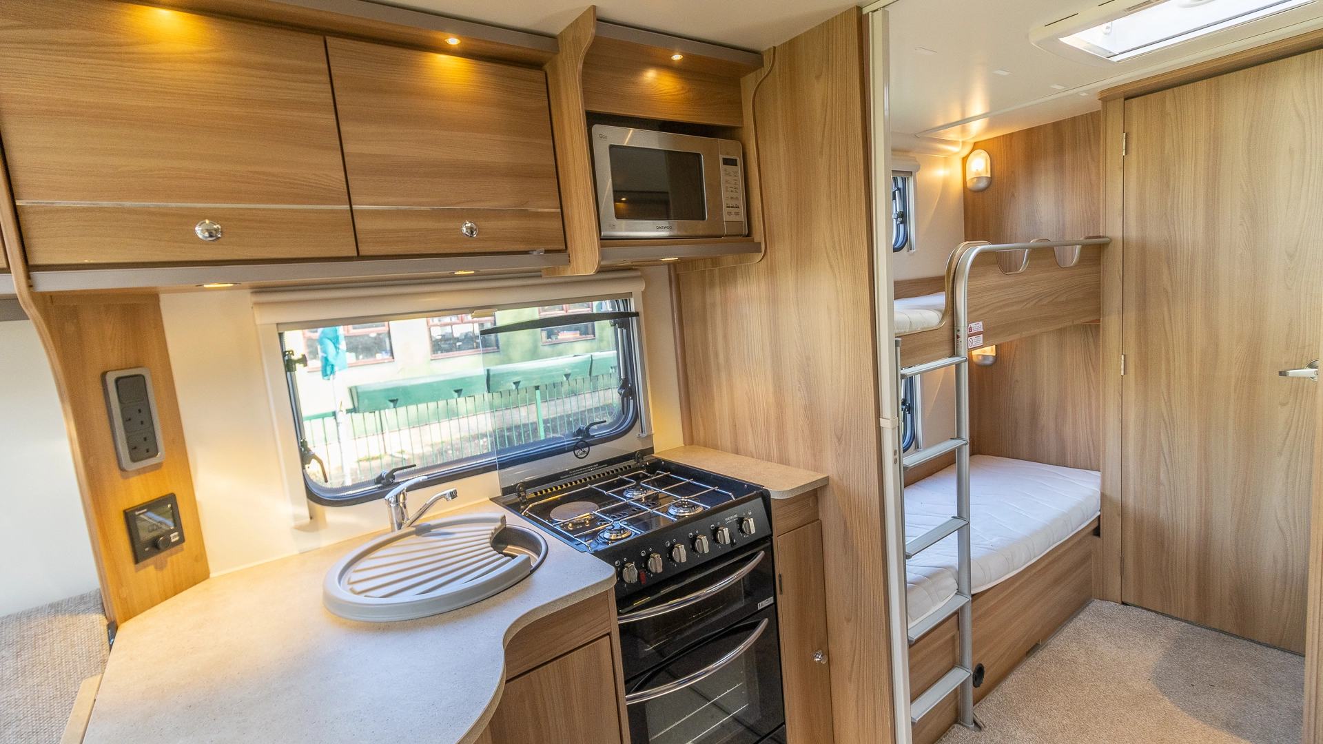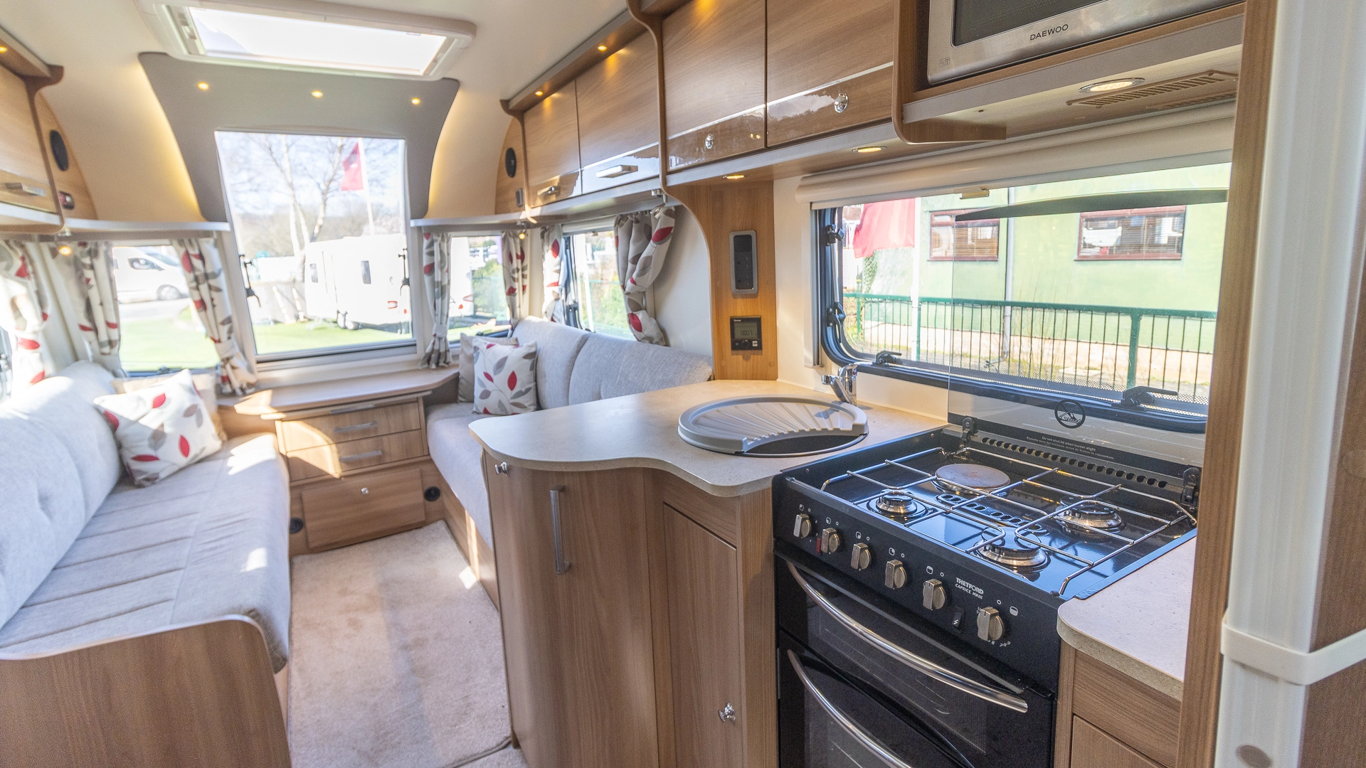 With its full-spec kitchen and extractor fan, flexible living and sleeping areas, external mains point, and durable GRP construction, this caravan delivers year-round comfort