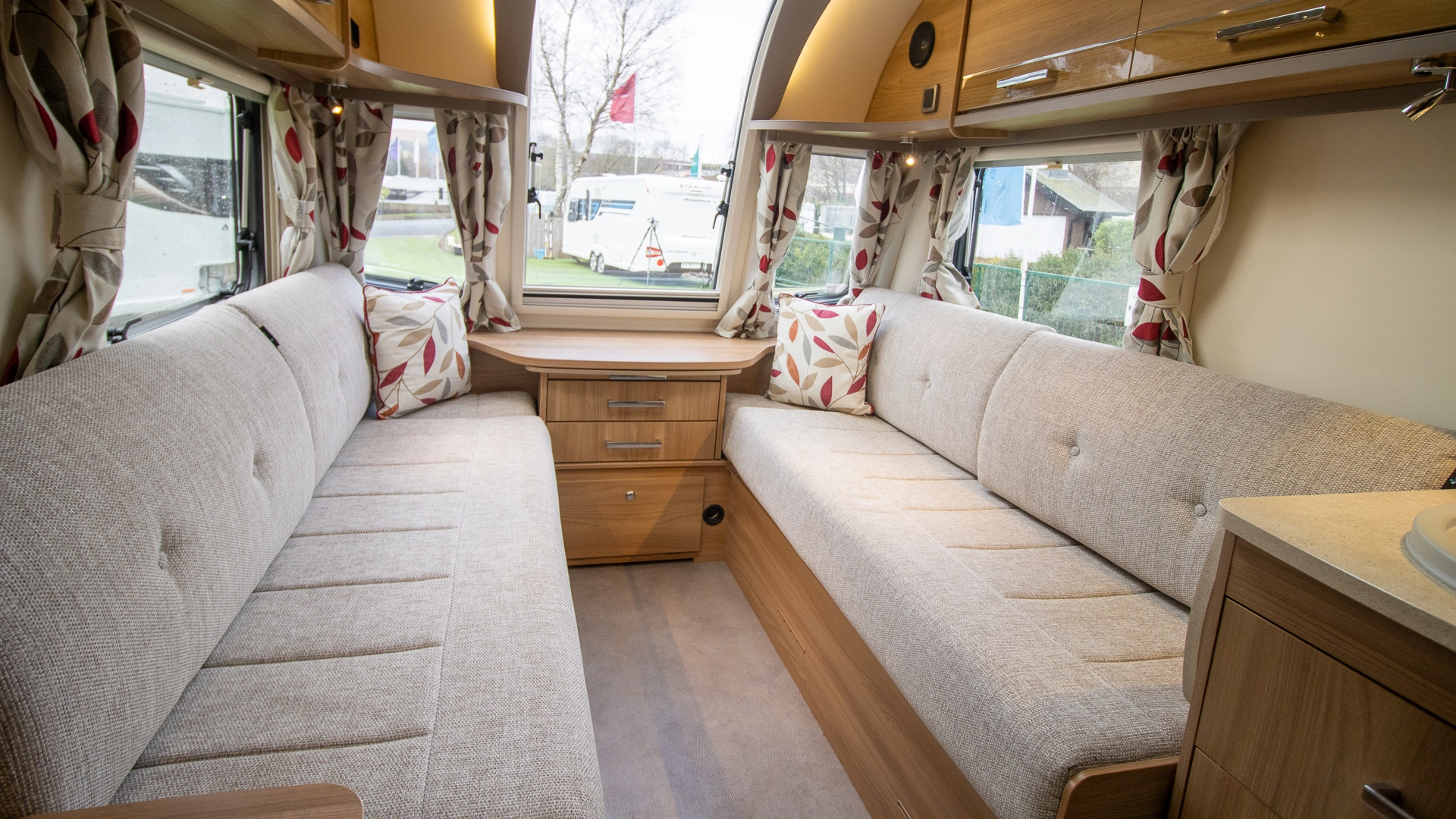The front lounge features twin sofas that create a sociable and relaxing living area during the day. At night, this seating easily converts into a comfortable double bed.