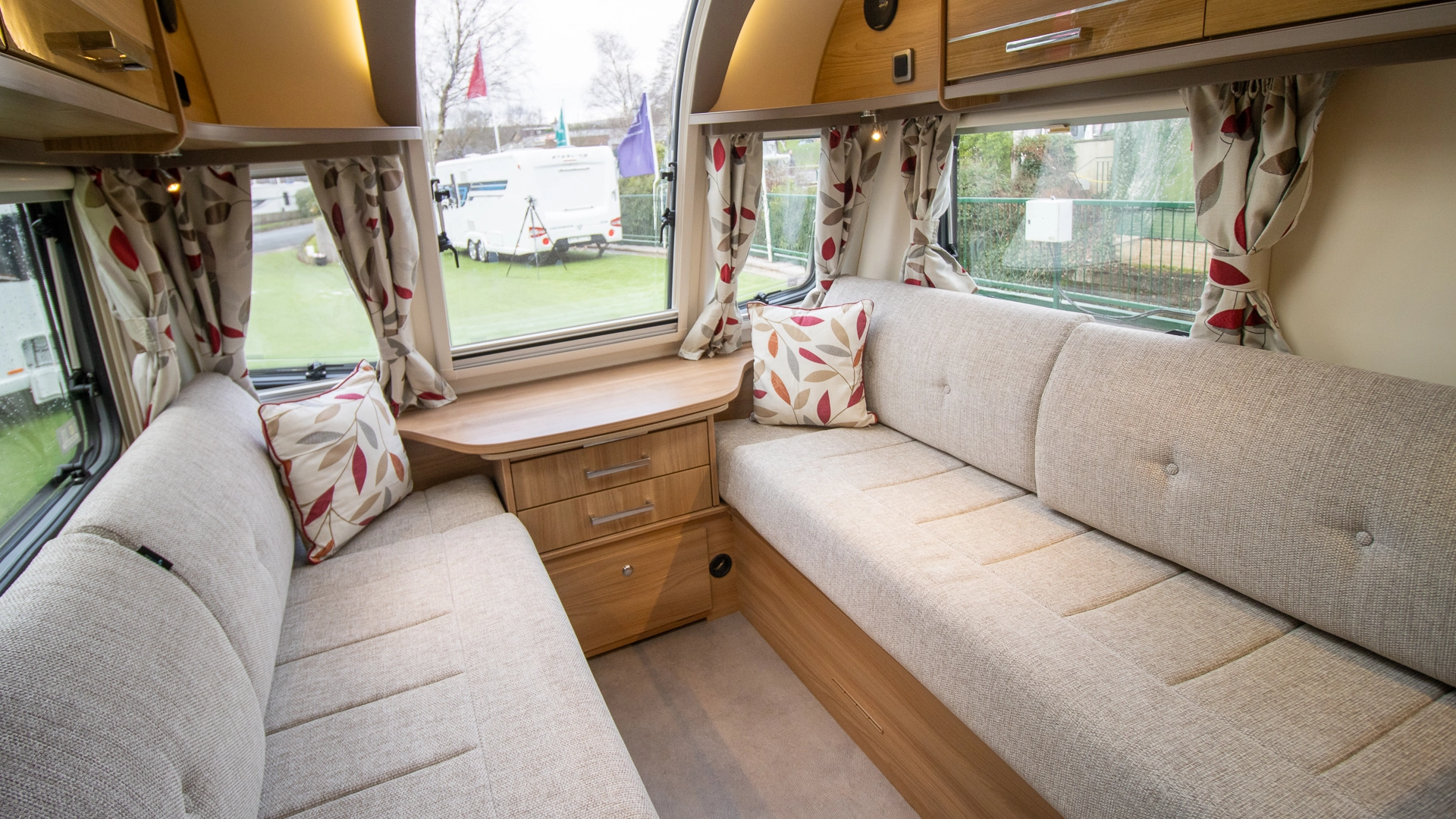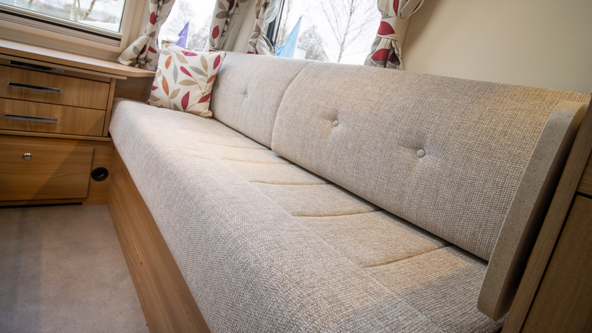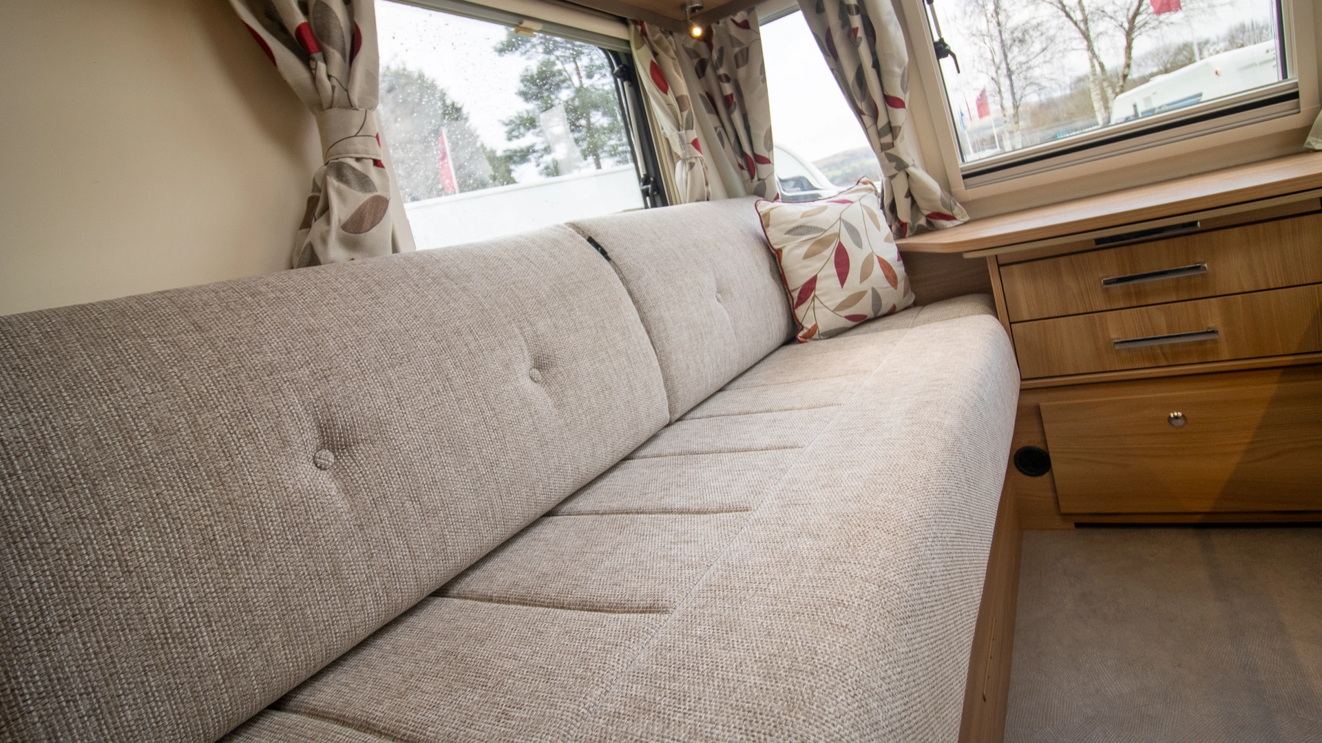 Built with GRP (Glass Reinforced Plastic) side panels, this caravan benefits from a robust, weather‑resistant exterior, guarding against knocks, scratches and the elements.