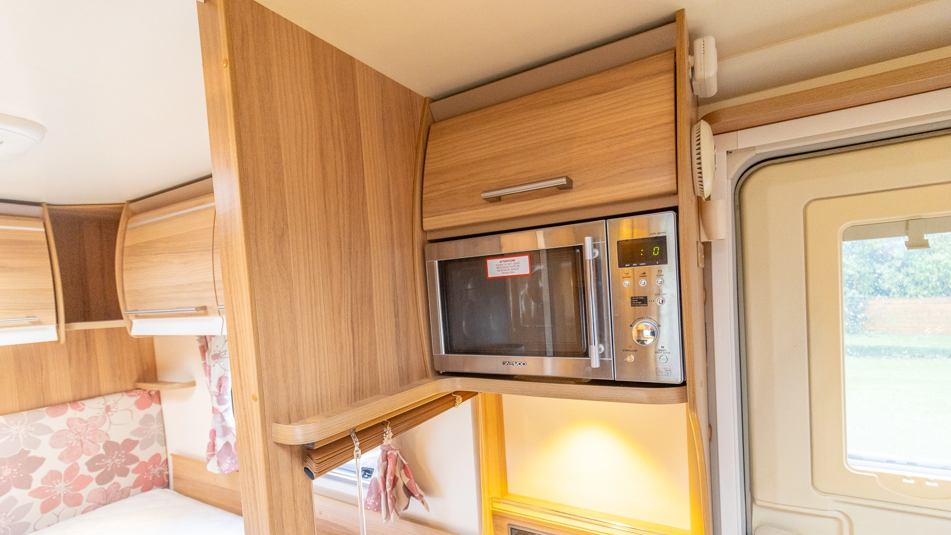 The kitchen comes with a microwave, hob, oven and grill, fridge‑freezer and plenty of worktop space, allowing you to prepare full meals on site.