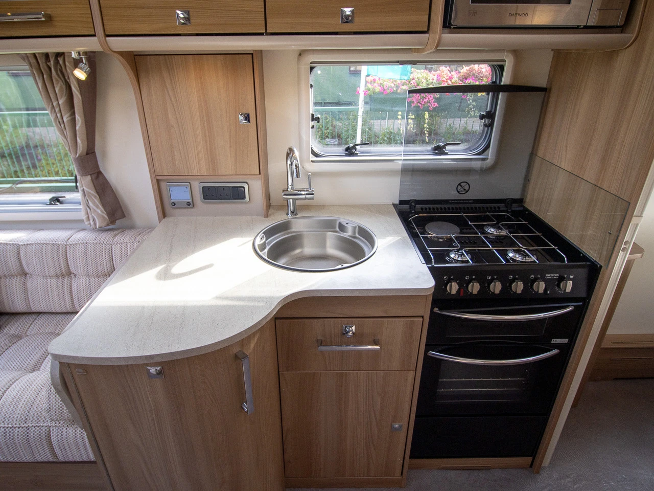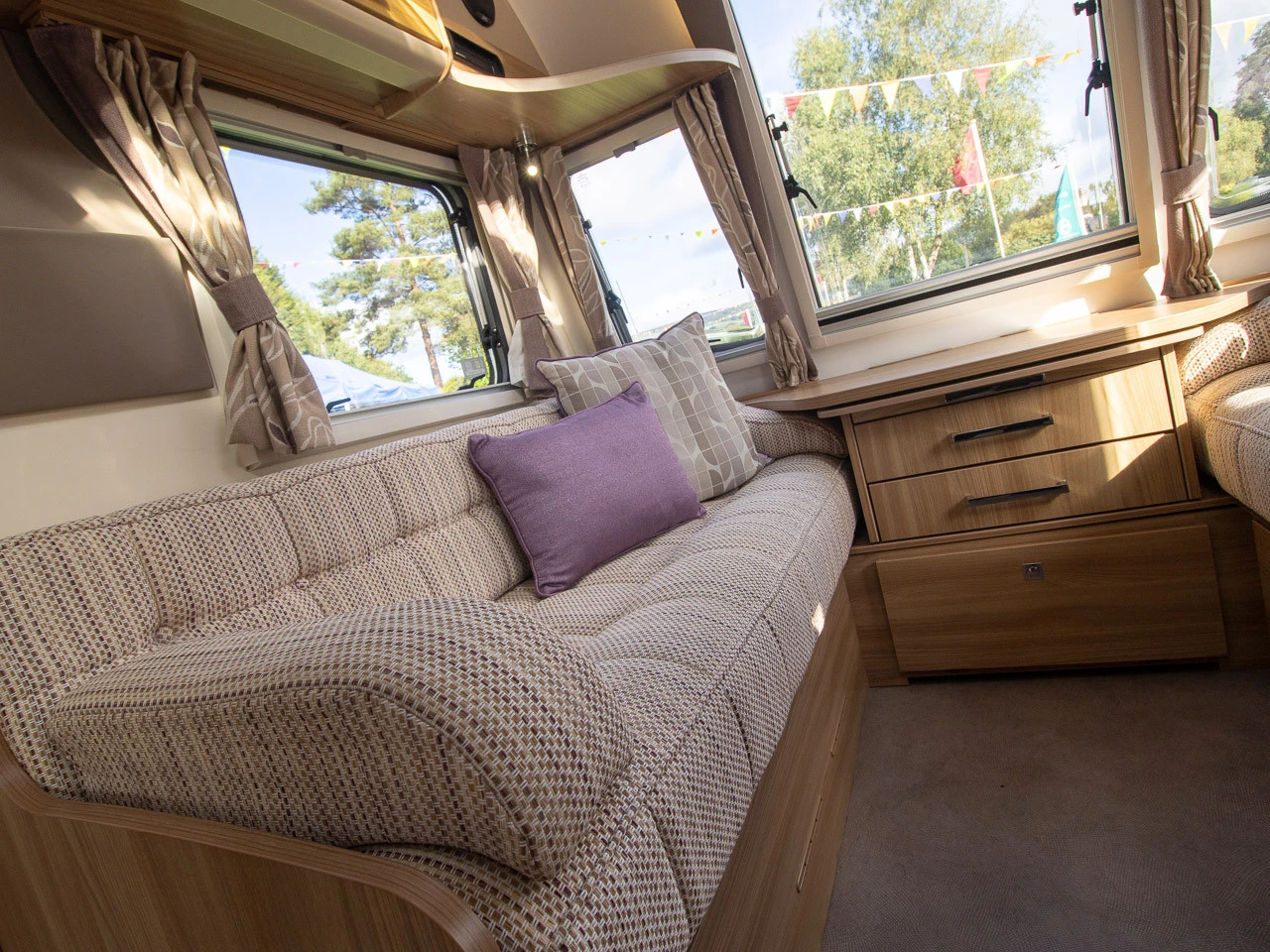 Parallel-seating bed: The bright and spacious front lounge features twin sofas that create a sociable daytime area. At night, this converts easily into a large double bed, providing flexible sleeping arrangements for family or guests.