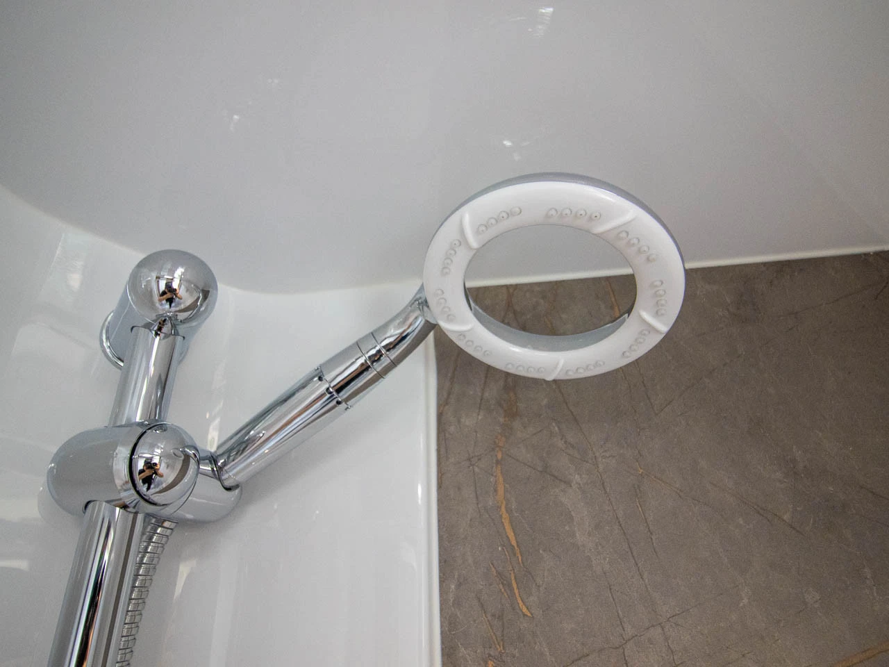 - Center Washroom: Positioned between the living and sleeping areas, the washroom provides a private shower, toilet and vanity basin, leaving the sleeping spaces undisturbed.
