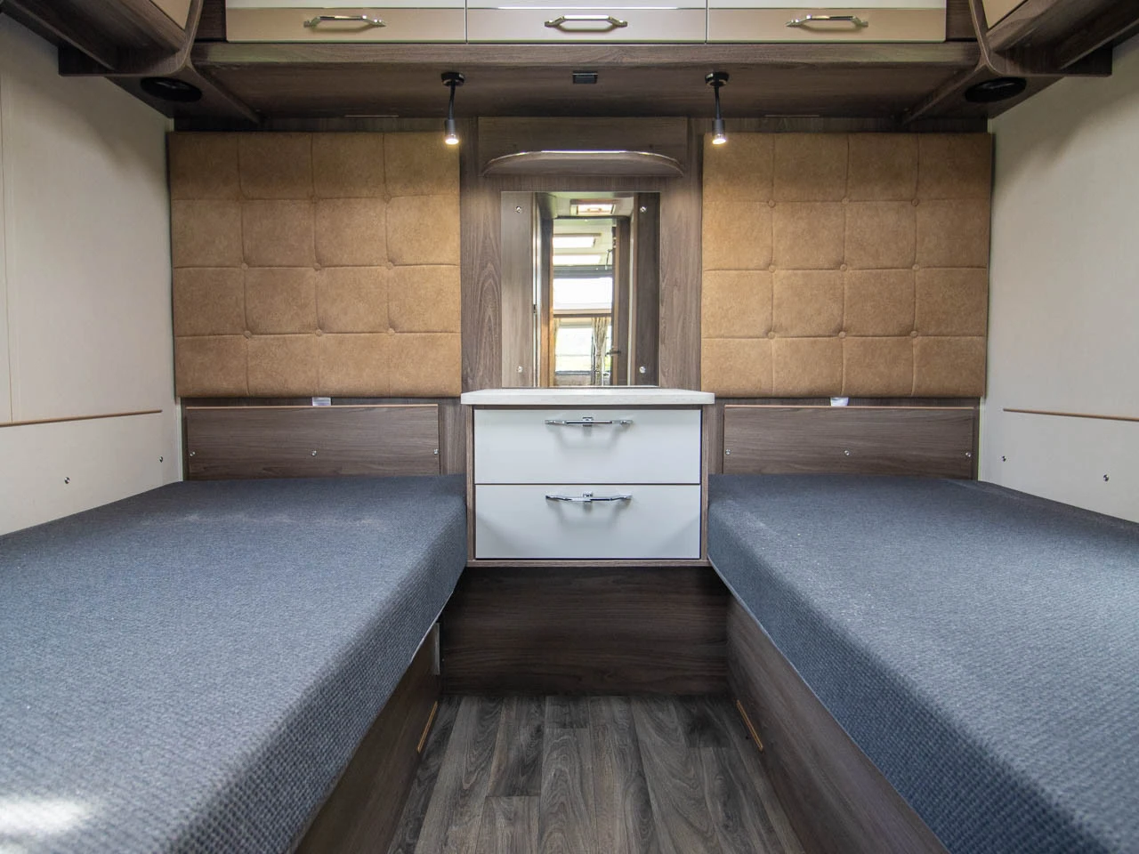 - Parallel-seating bed: The front lounge provides a useful space for socializing and relaxing during the day, and can also be converted into a spacious double bed at night.