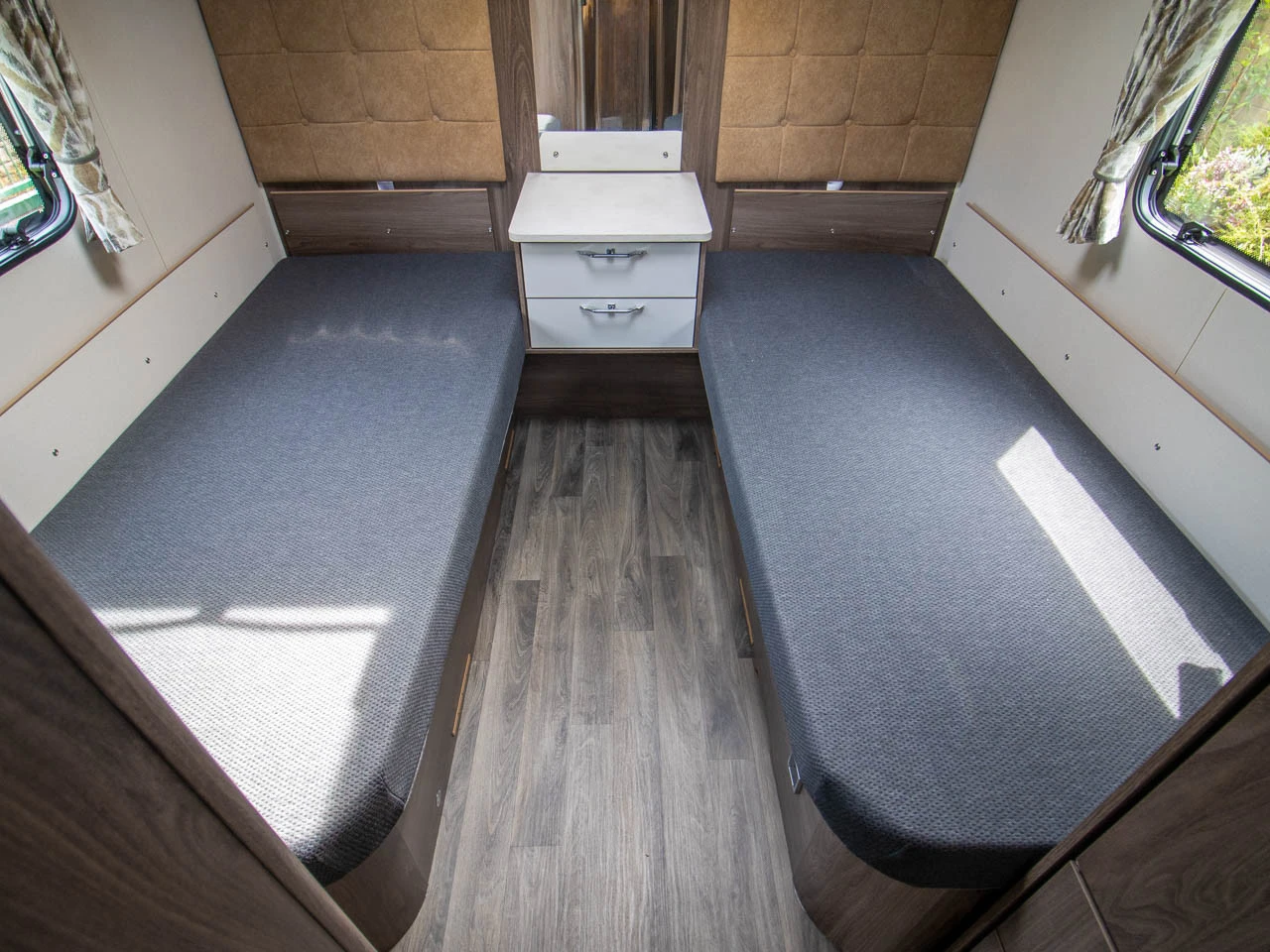 - Twin single beds: At the back of the caravan is located two single beds, offering a restful night's sleep with individual comfort, perfect for friends, guests and families.