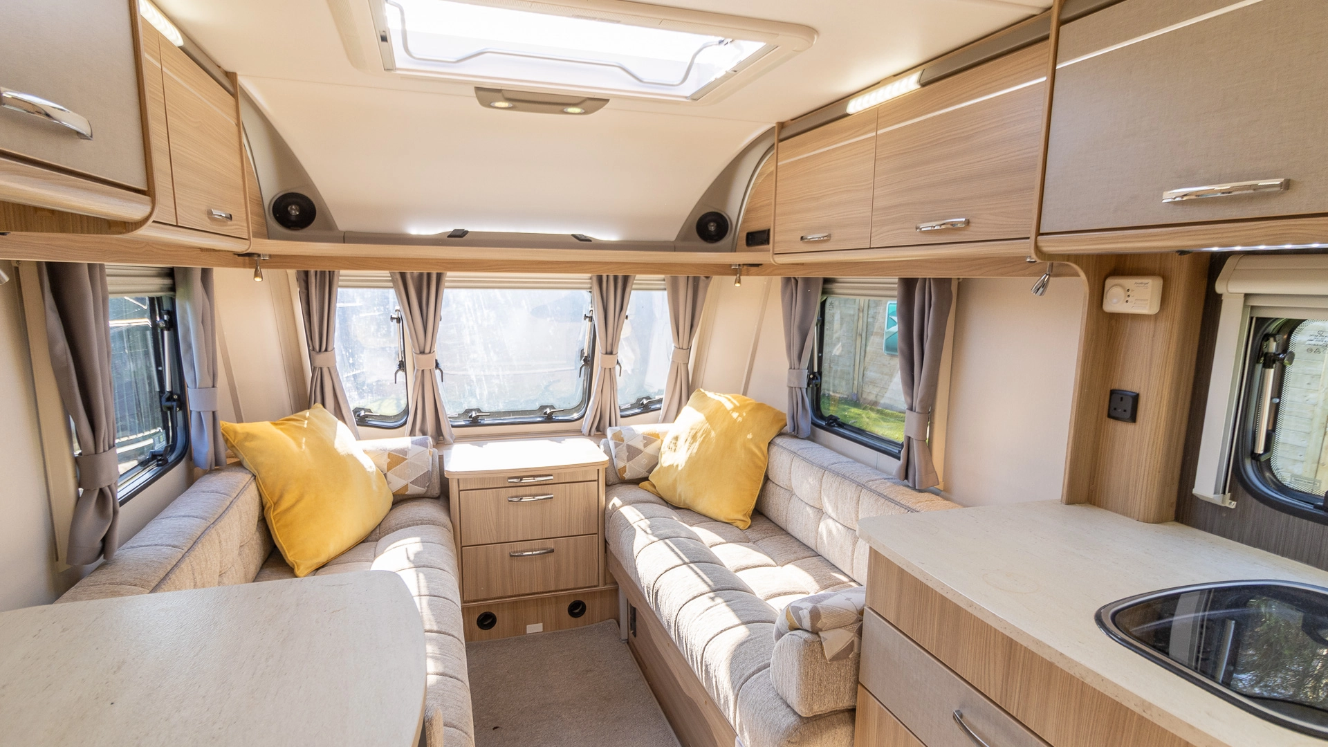 With its full-spec kitchen and extractor fan, flexible living and sleeping areas, awning warmer, external BBQ point, and compact size, this caravan delivers year-round comfort