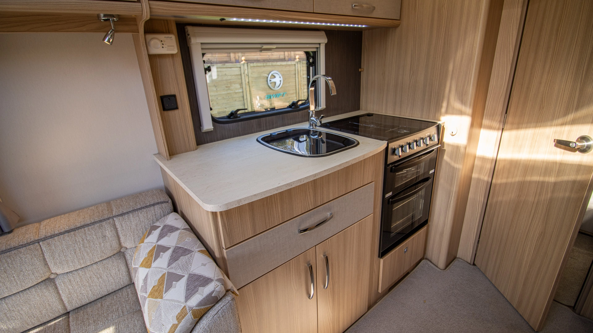 Extractor Fan Fitted above the cooking area, the extractor fan maintains the caravan’s fresh atmosphere by efficiently removing cooking odours from the kitchen
