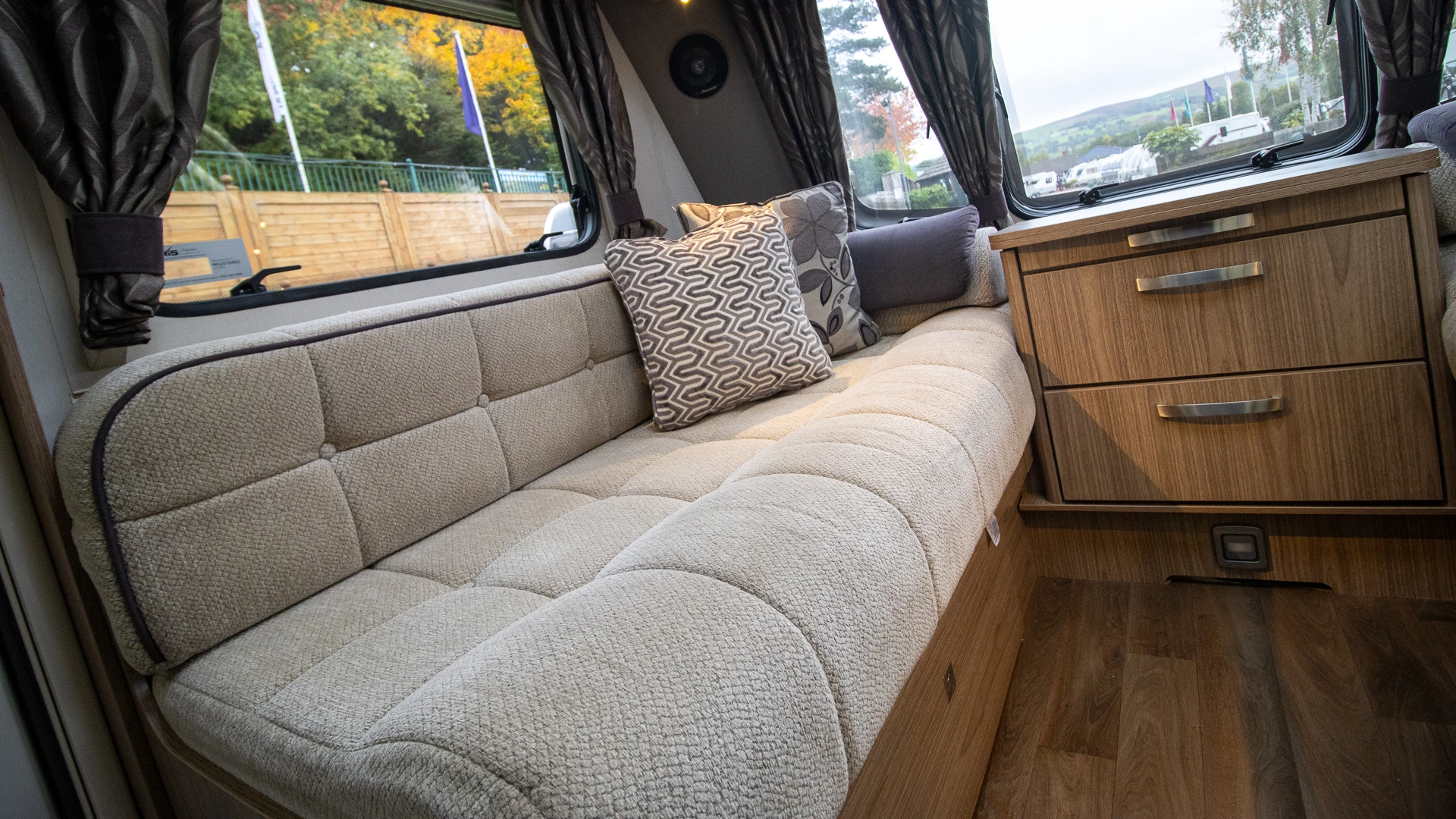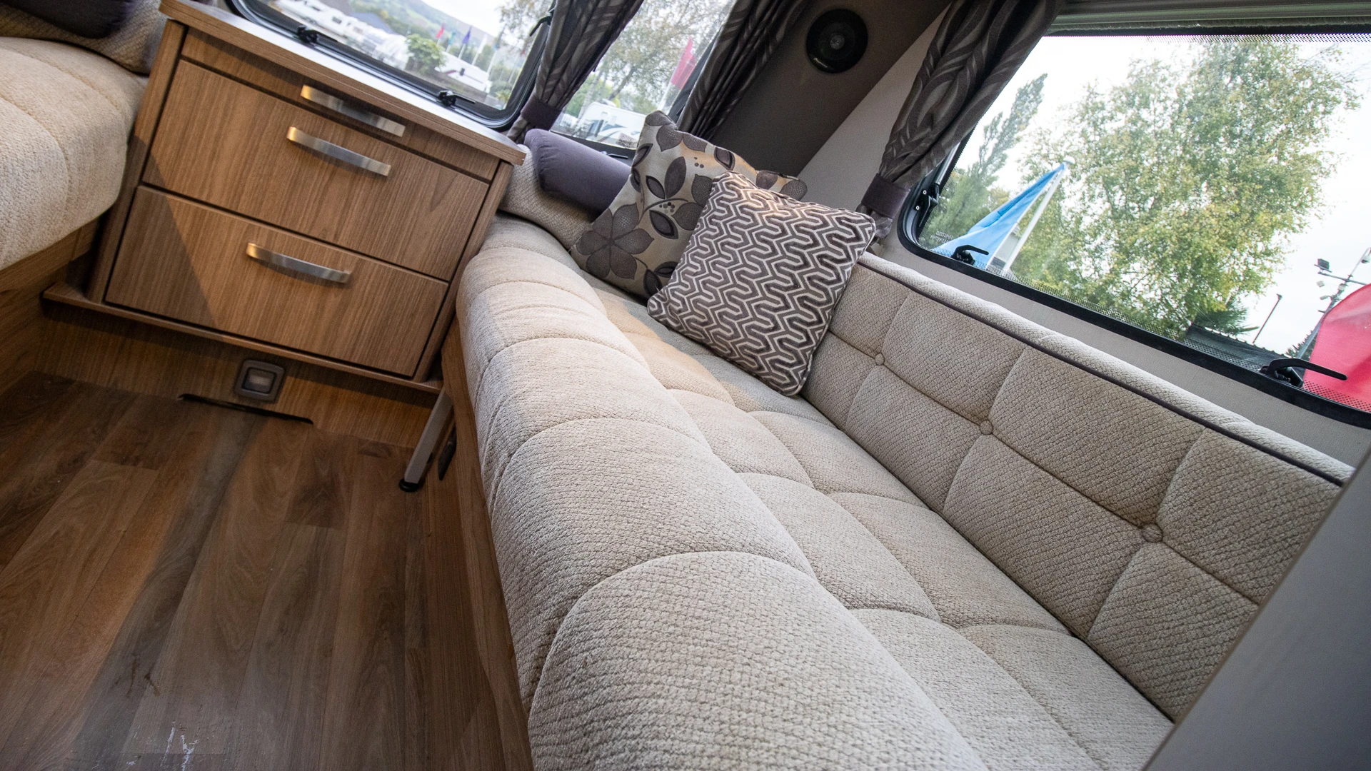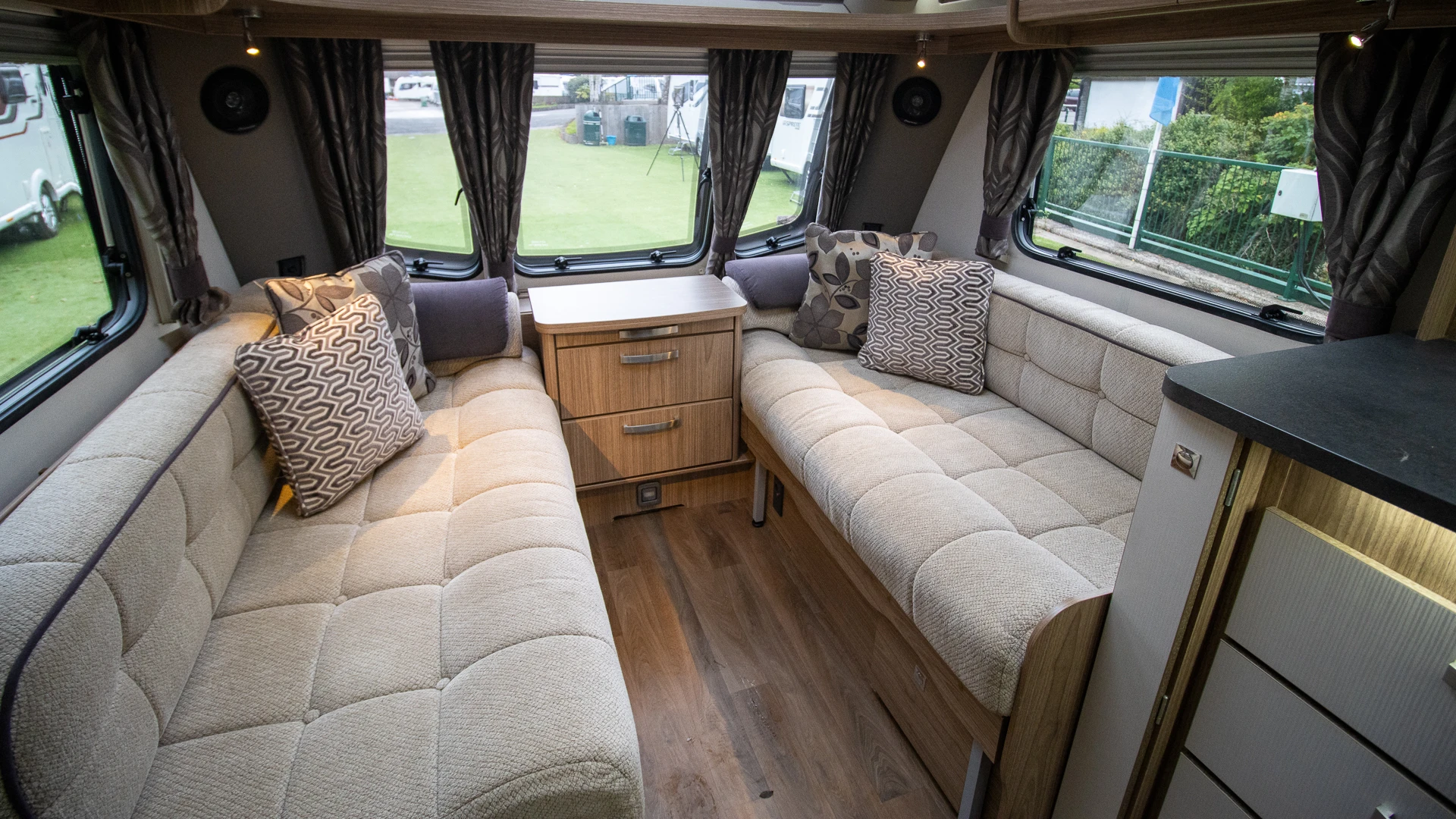 Parallel-seating bed: The bright and spacious front lounge with twin sofas creates a sociable and relaxing living area. At night, it quickly converts into a large double bed, offering flexibility for guests or family.