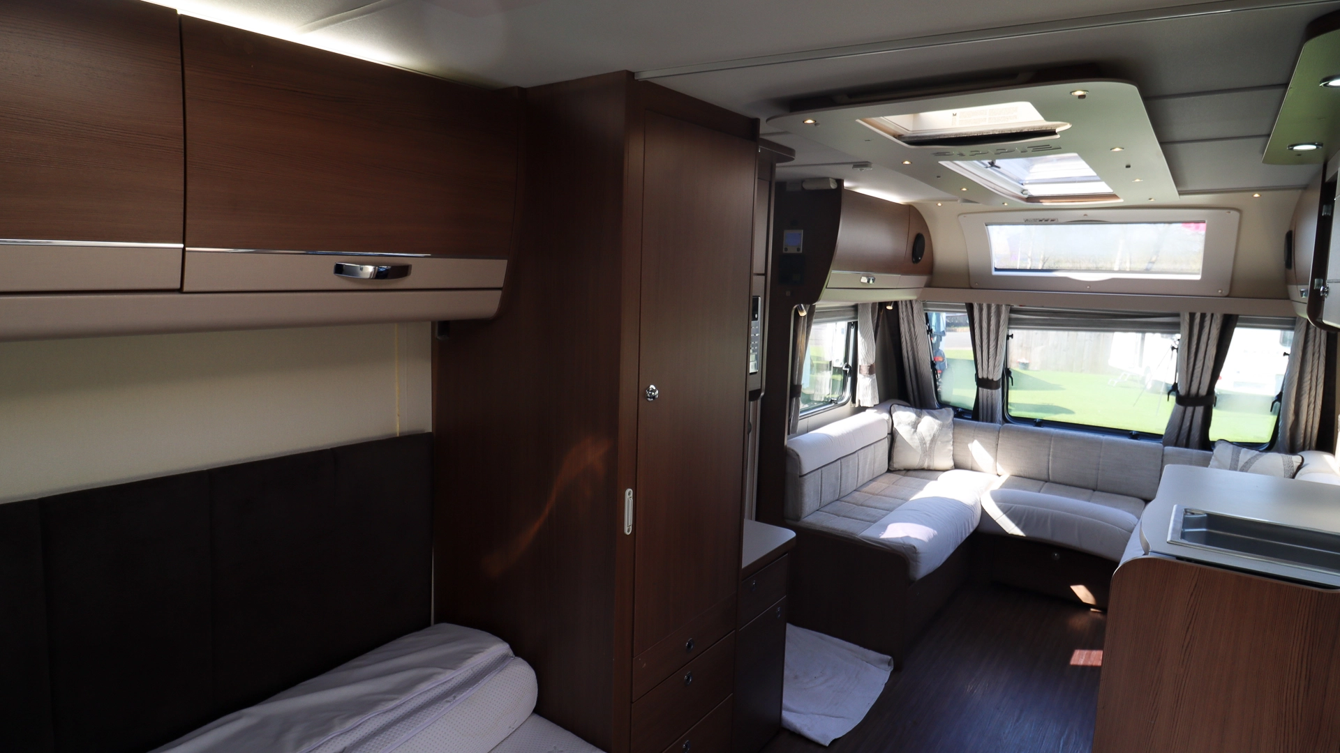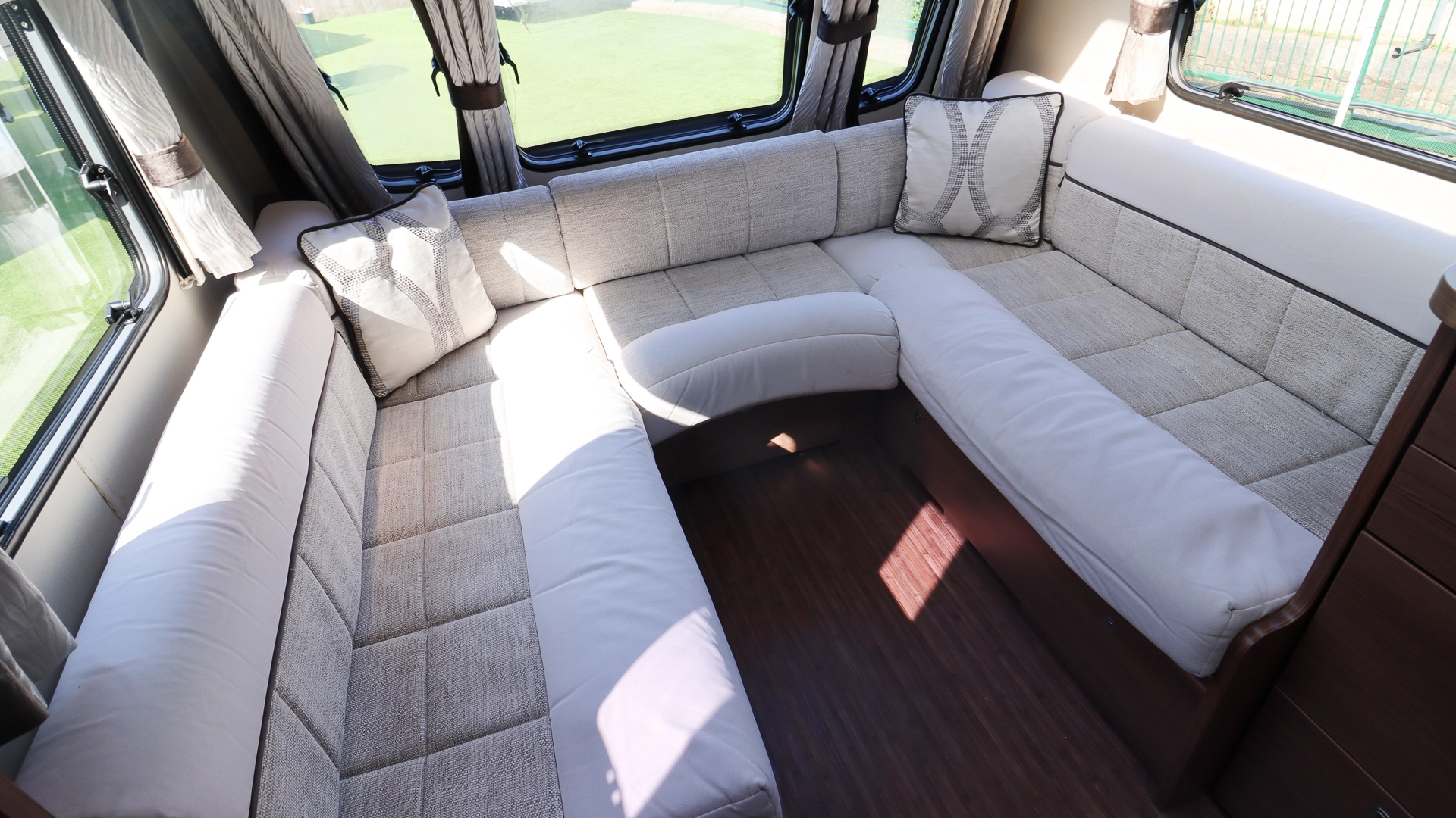 The bright U‑shaped front lounge provides a spacious seating area during the day, and at night, converts into a comfortable double bed, offering generous sleeping space without compromising comfort.