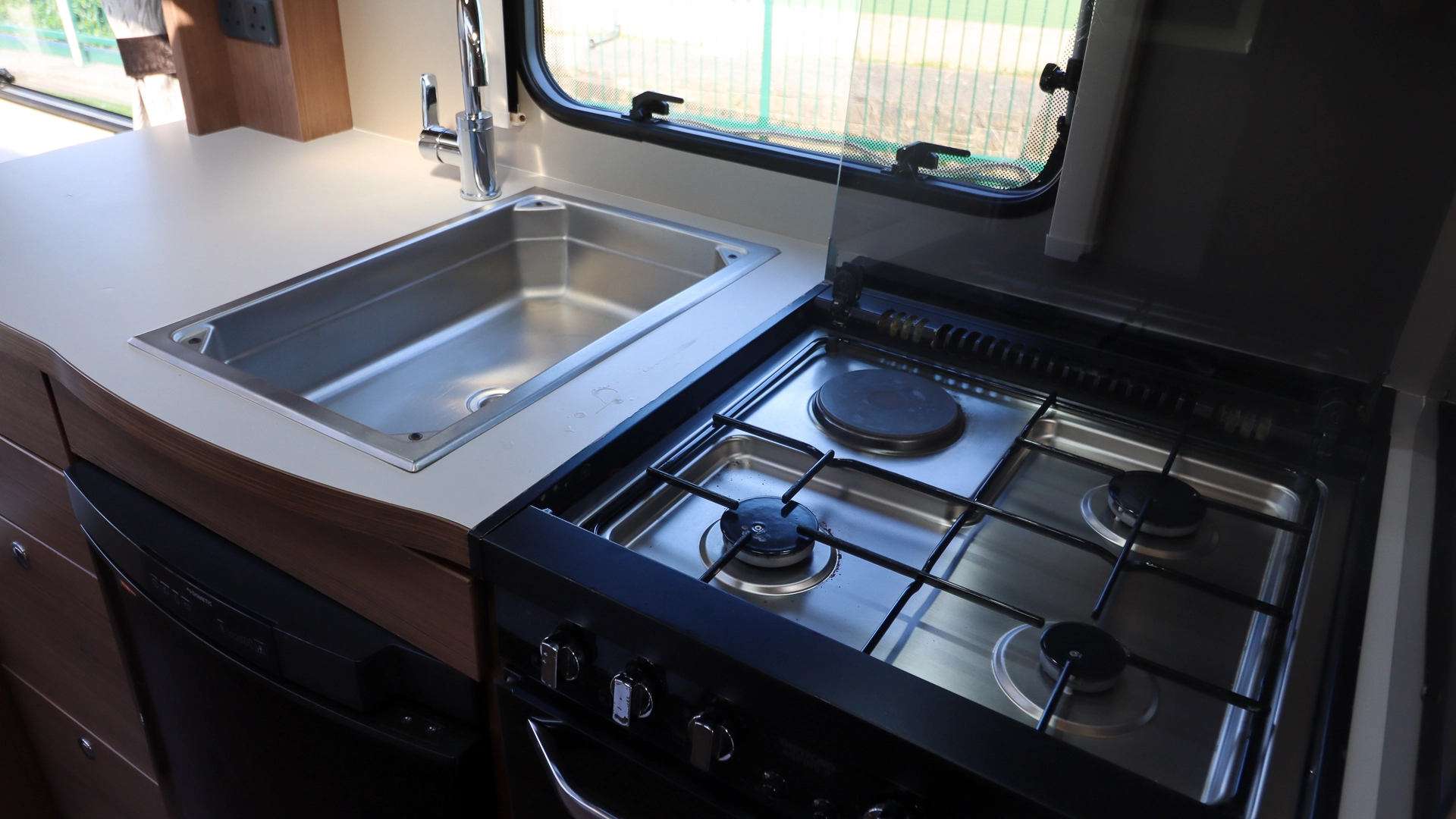 An onboard fresh water tank adds convenience and independence on site. Whether you’re parked on pitches without easy access to mains water or prefer to cook or wash up outdoors, the water tank gives you added flexibility and less reliance on external hookups.
