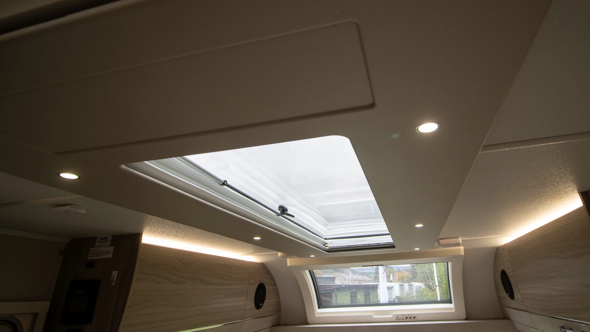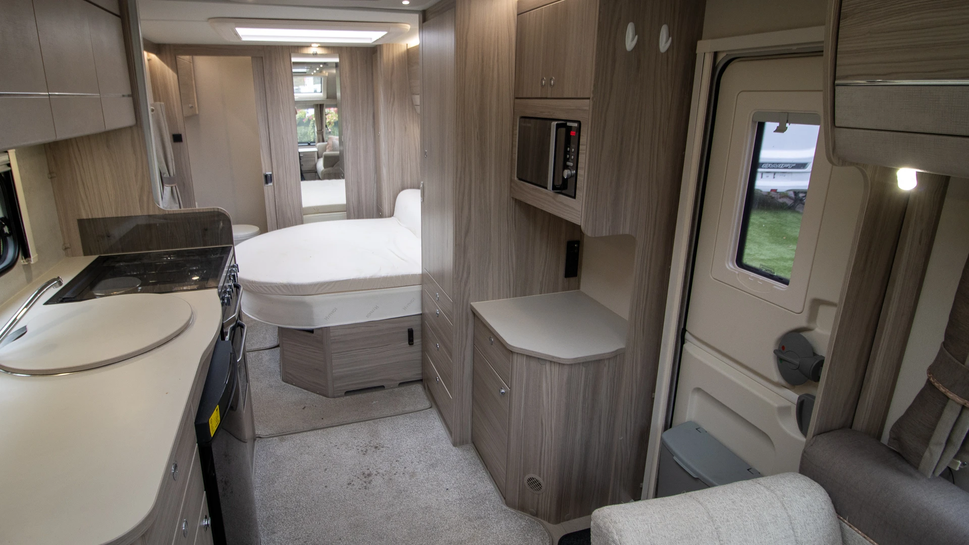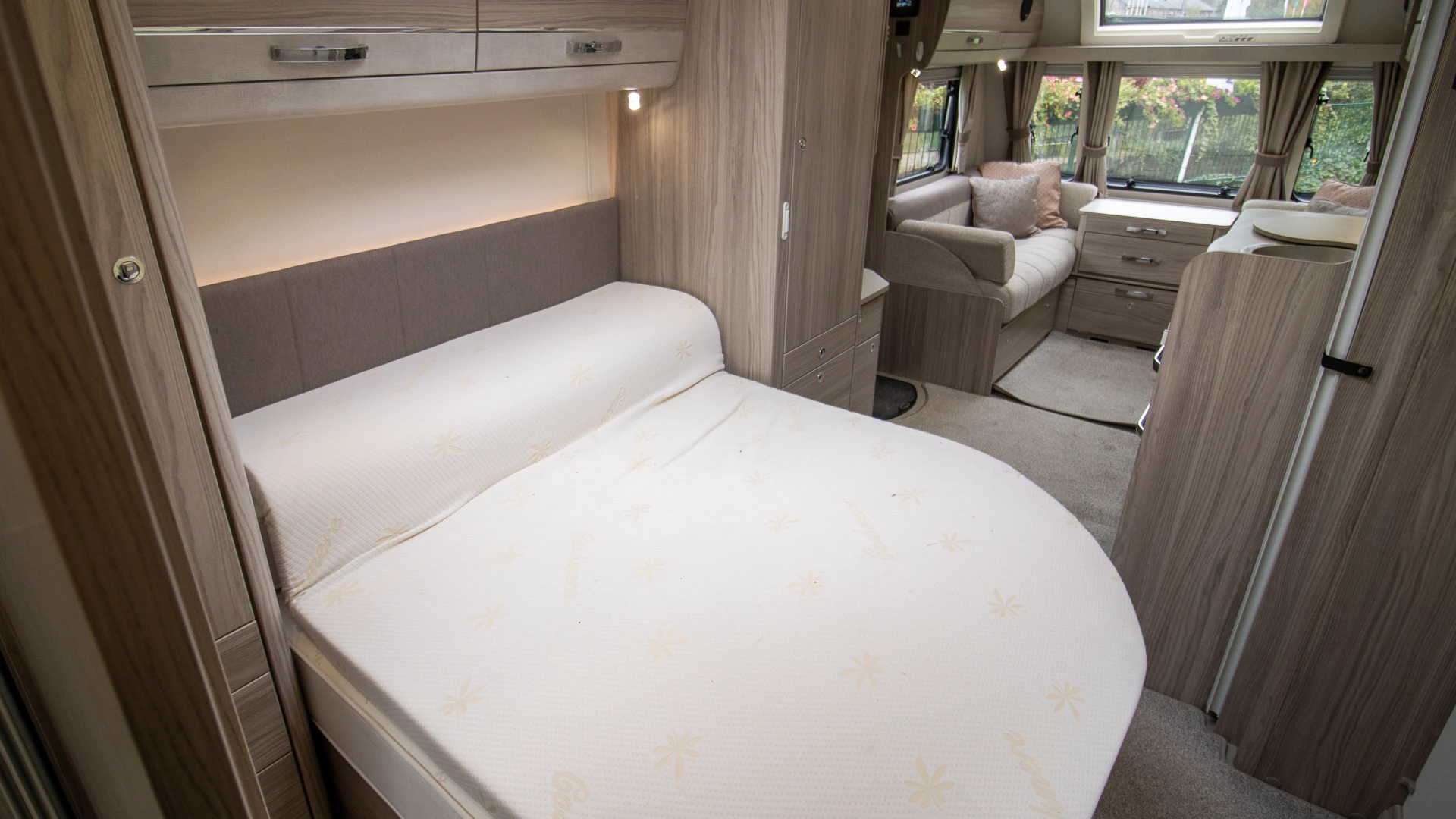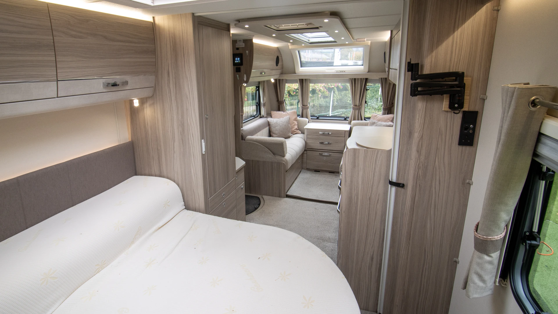 Fixed island bed: Positioned at the rear, this permanent double bed offers hotel-style comfort and easy access from both sides. With generous under-bed storage, it’s ideal for longer stays and keeps things neat and convenient.