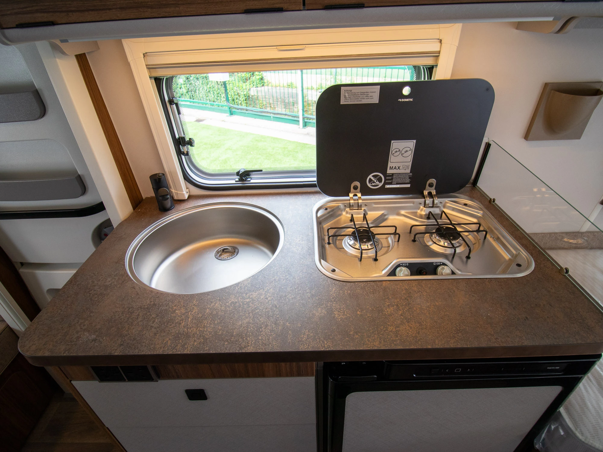 With its Carrara white exterior, Biarritz interior finish, and practical upgrades, this model is ideal for anyone looking to hit the road in a lightweight caravan without sacrificing premium features