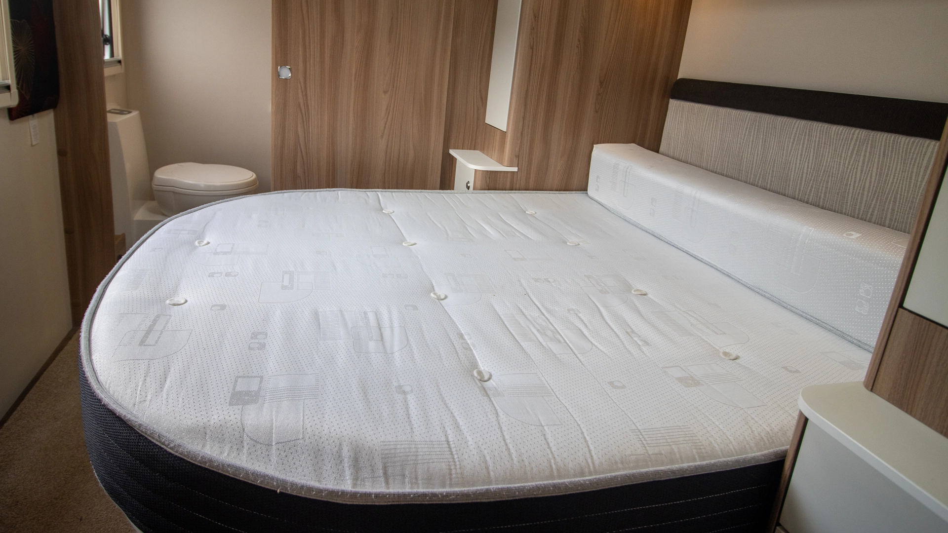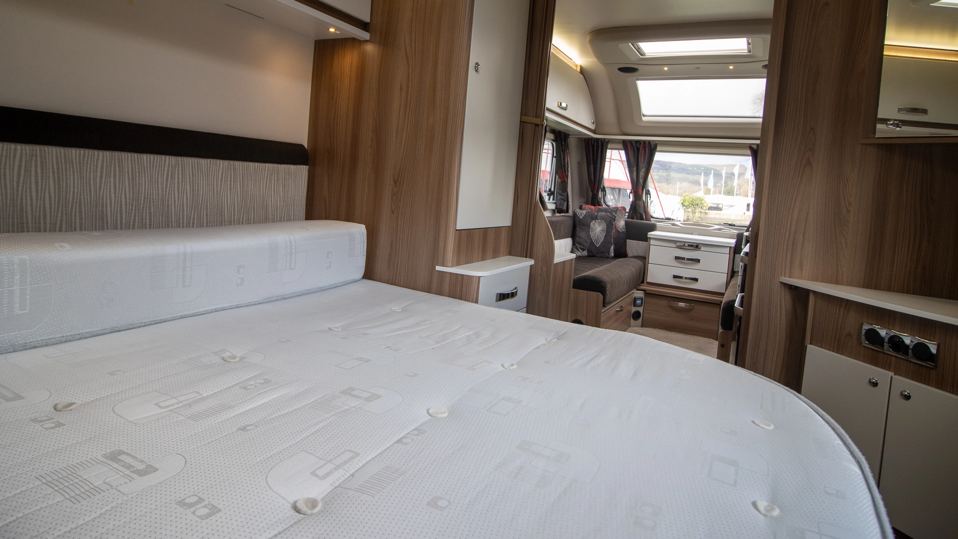 At the rear of the caravan, the always-ready fixed island bed provides a dedicated sleeping area with walk‑around access and ample under‑bed storage, perfect for the end of your day.