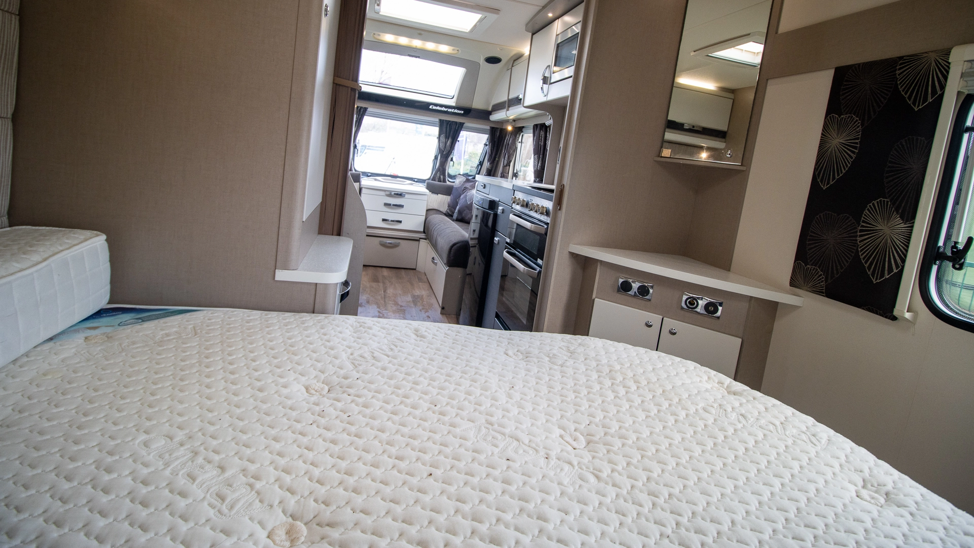 At the rear of the caravan, the always-ready fixed island bed provides a dedicated sleeping area with walk‑around access and ample under‑bed storage, perfect for the end of your day.
