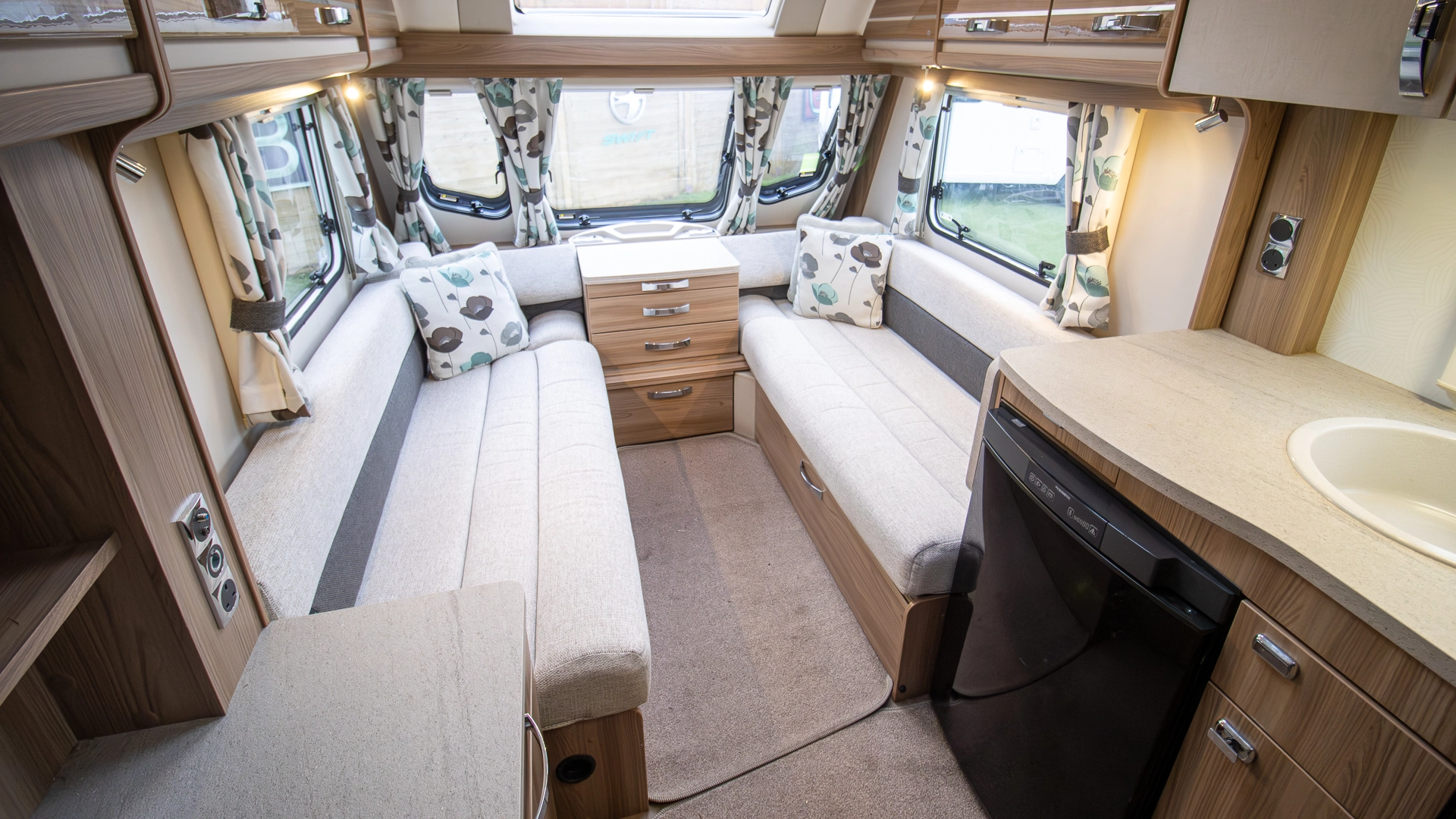 Built with rugged Glass Reinforced Plastic side panels, this caravan benefits from weather‑resistant, low‑maintenance exterior protection, helping to reduce wear and tear.