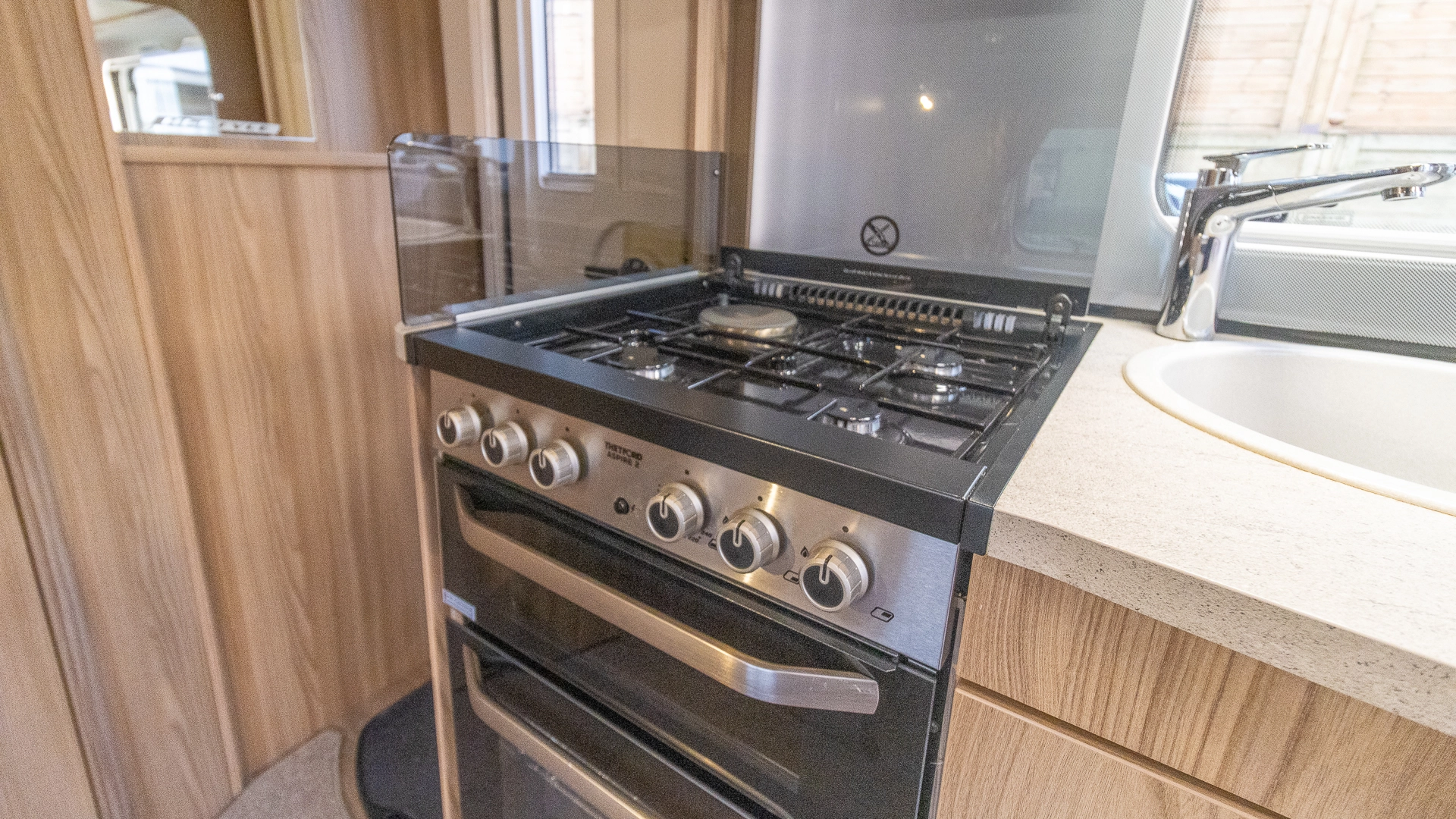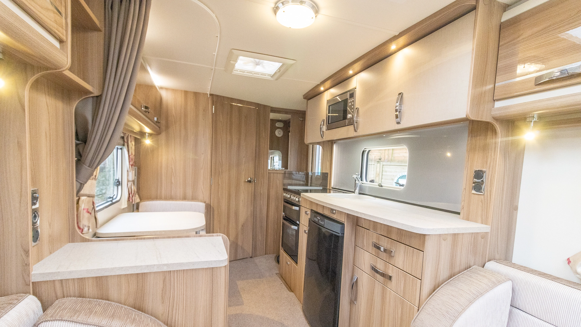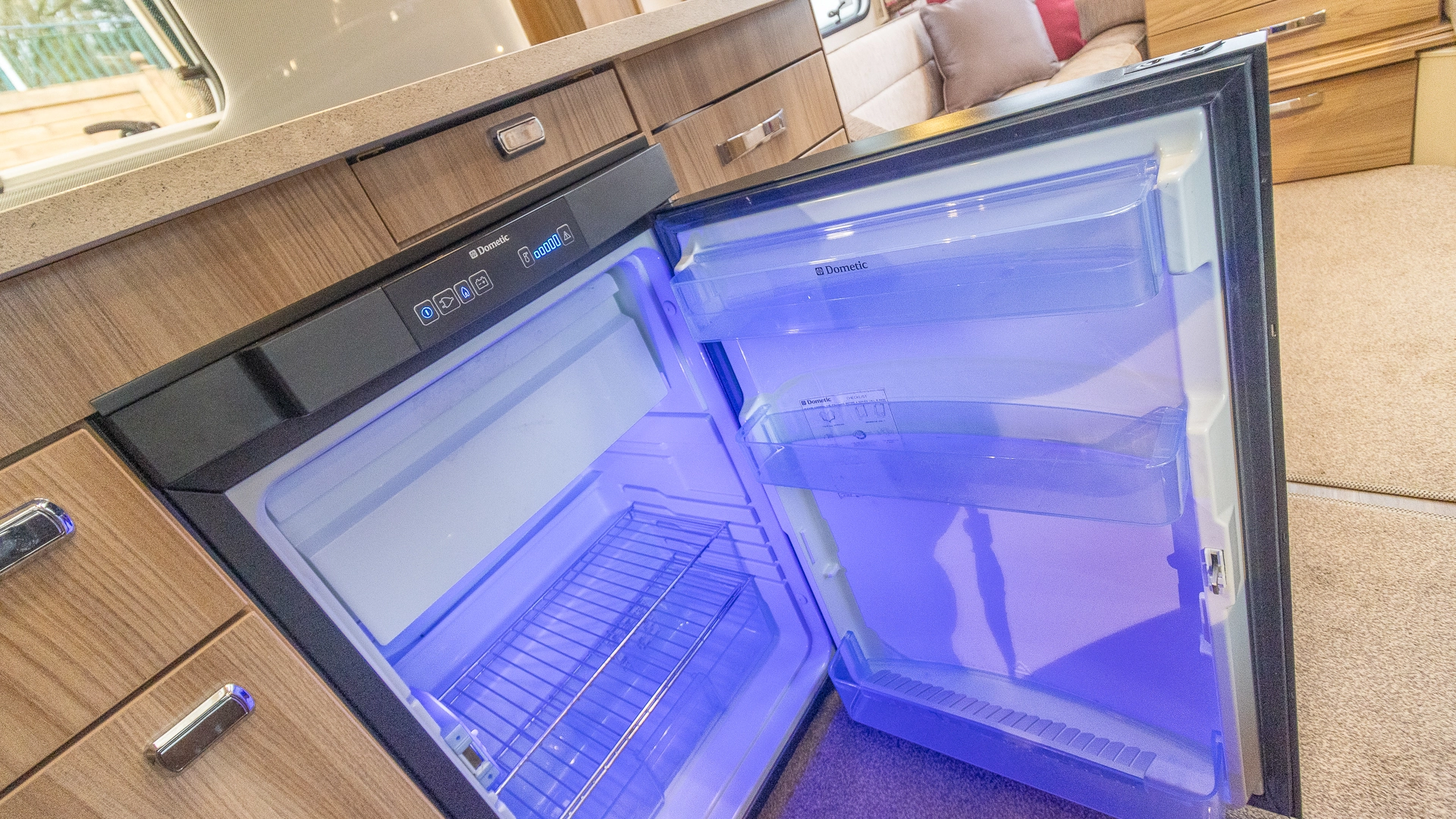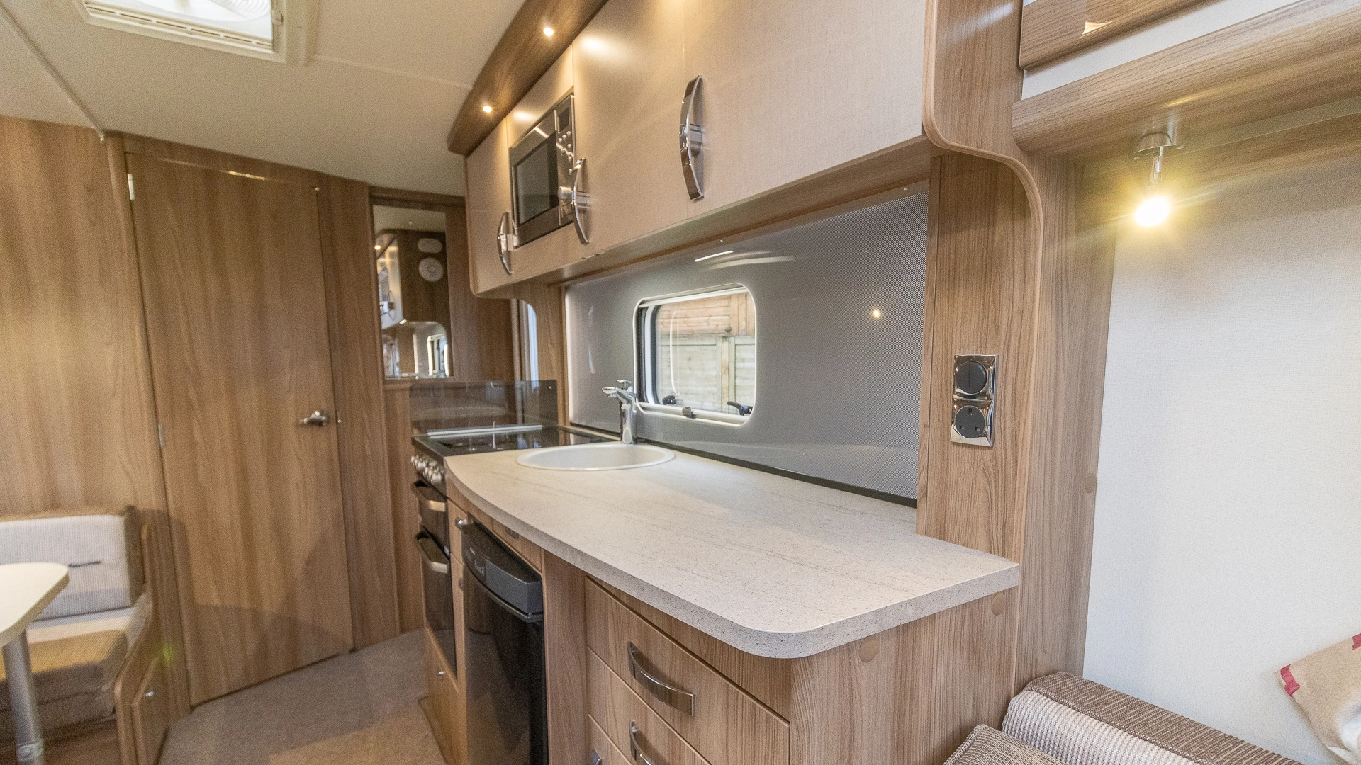 Fitted above the cooking area, the extractor fan maintains the caravan’s fresh atmosphere by efficiently removing cooking odours from the kitchen.