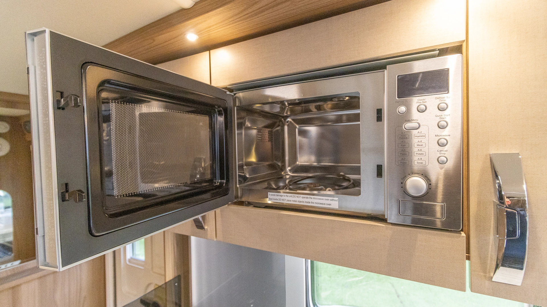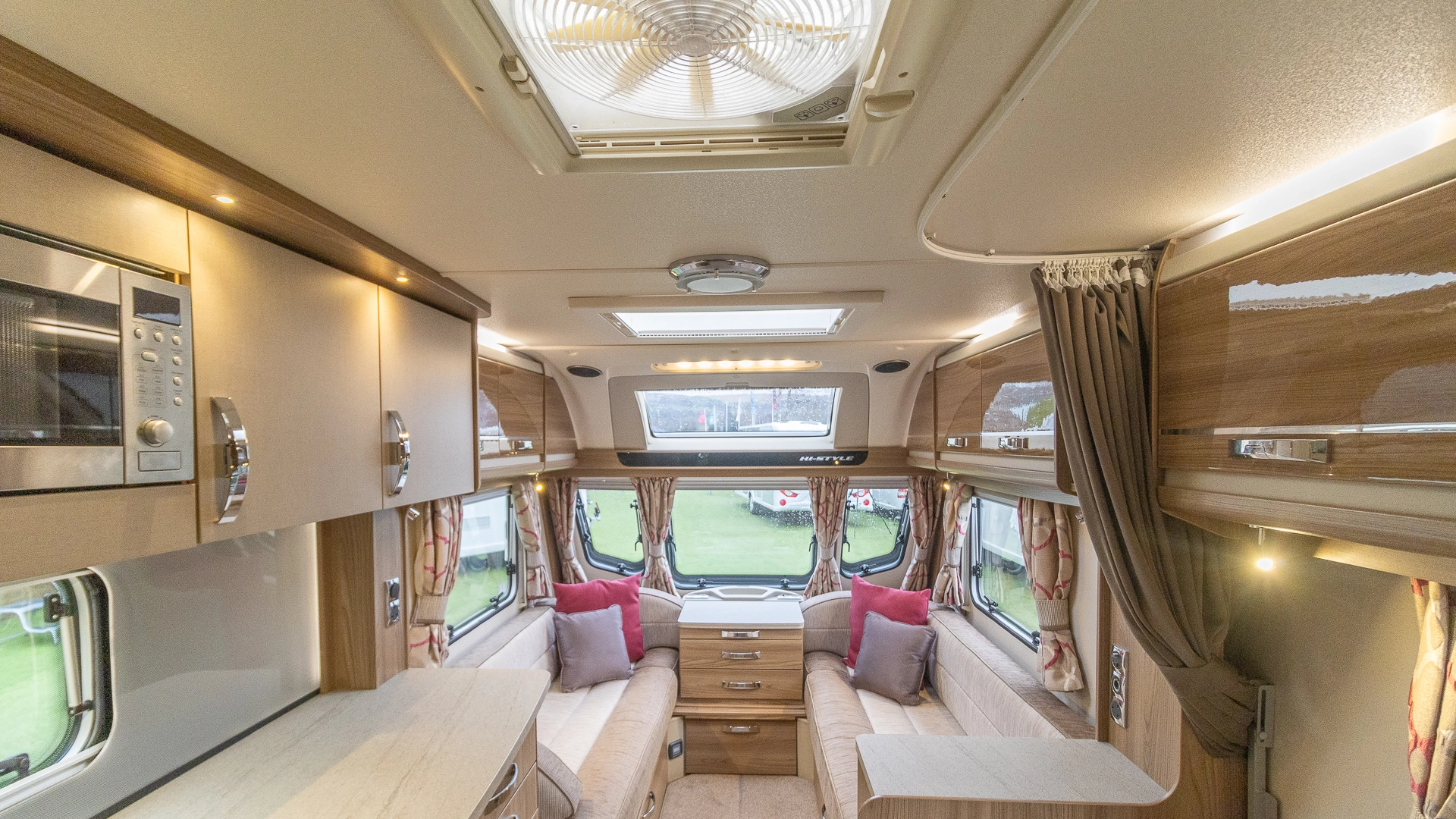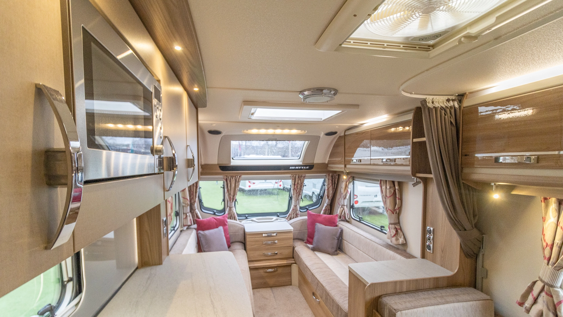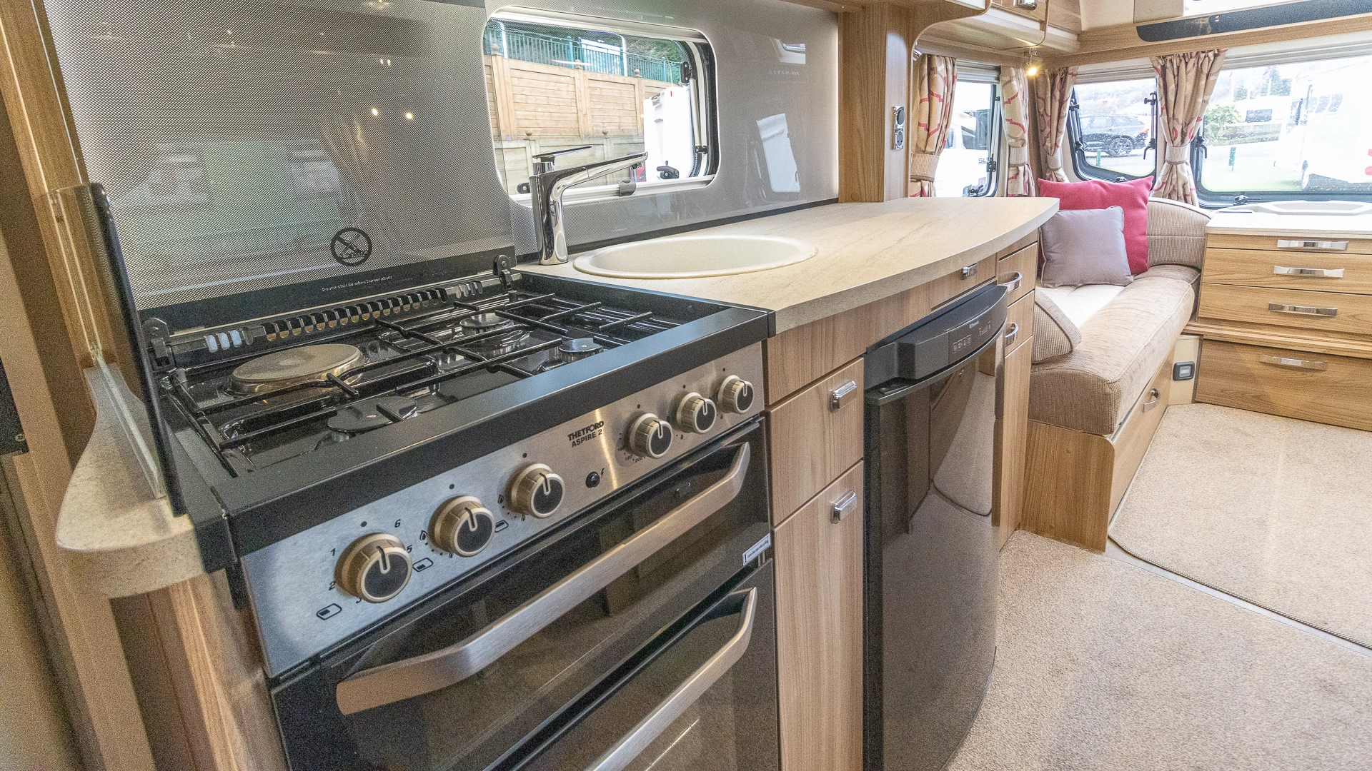 Fitted above the cooking area, the extractor fan maintains the caravan’s fresh atmosphere by efficiently removing cooking odours from the kitchen.