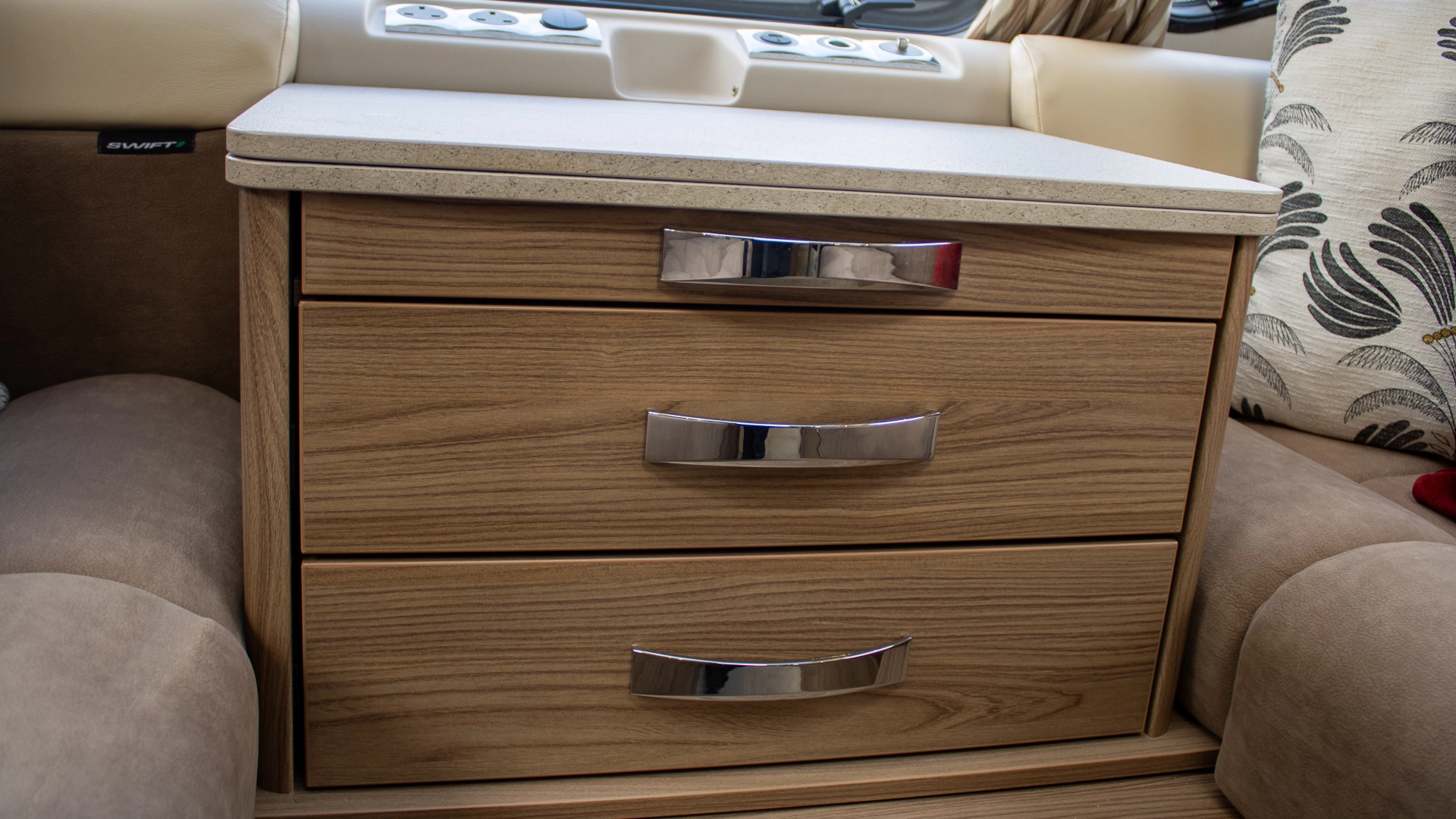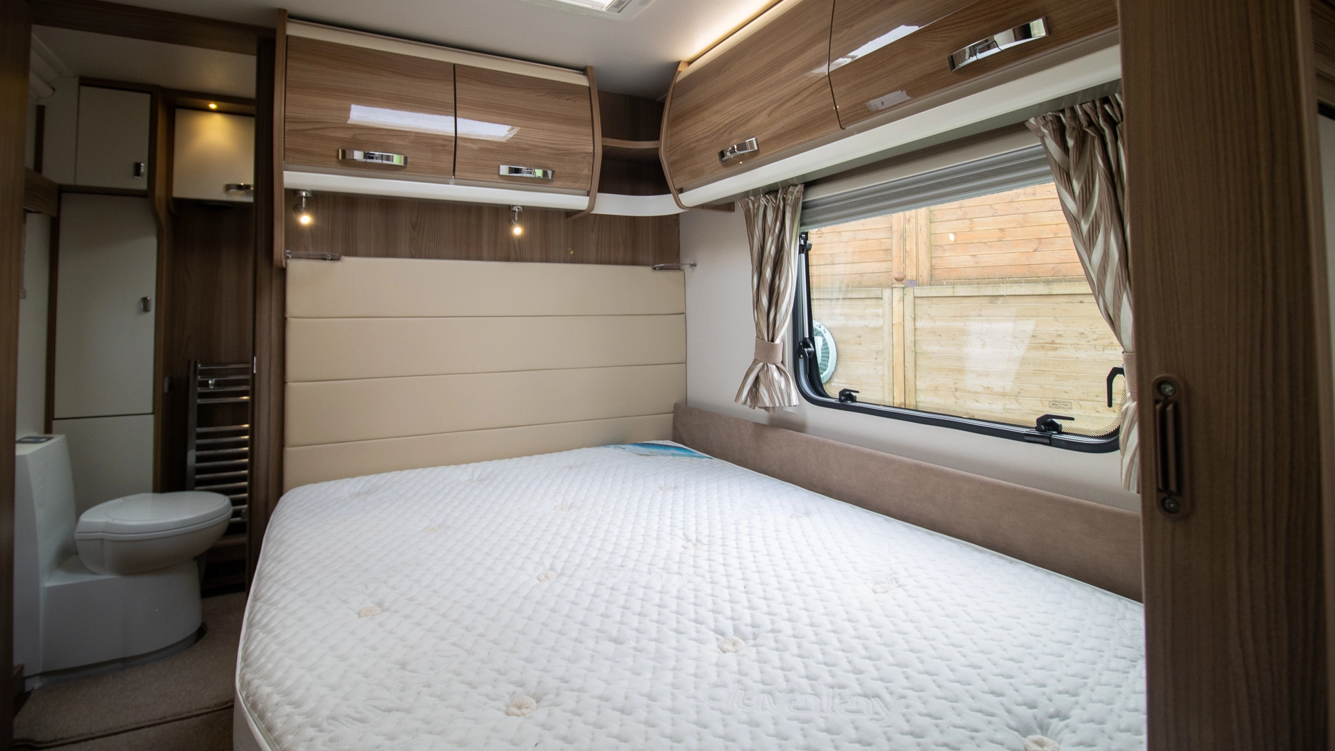 French bed – The fixed French bed provides a dedicated, always-ready sleeping space with excellent comfort and handy under-bed storage. No nightly bed-making means you can simply switch off and rest after a busy day.