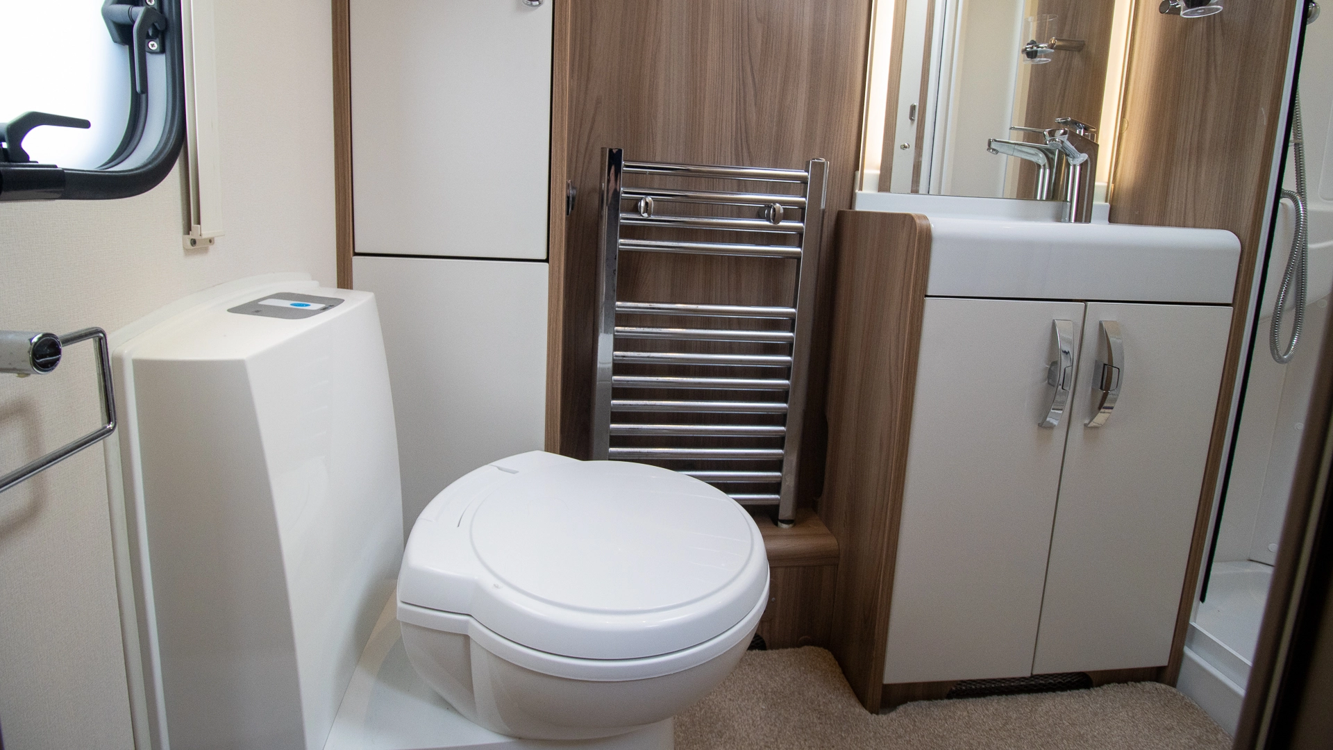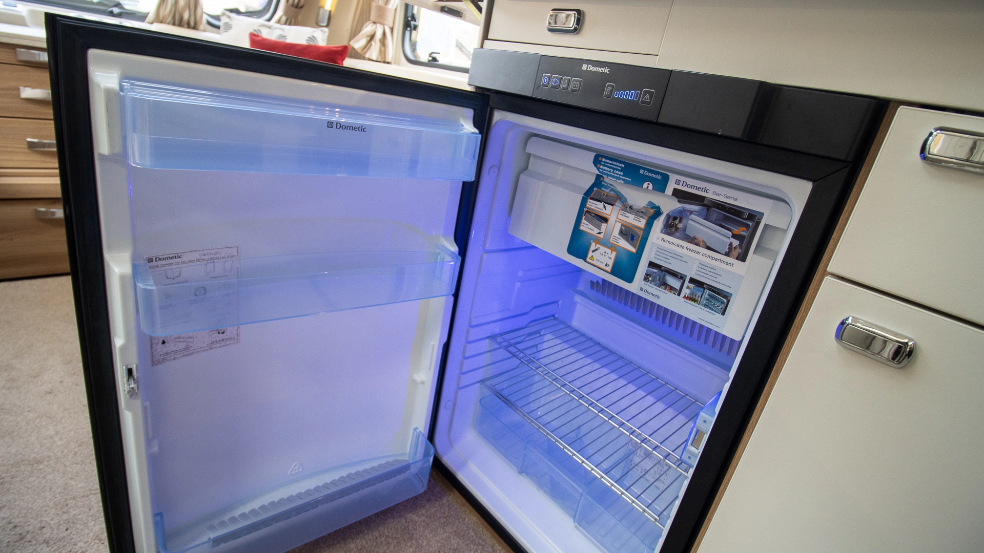 Fitted above the cooking area, the extractor fan efficiently removes steam and cooking odours from the interior, helping to maintain a fresh and comfortable atmosphere inside the caravan.