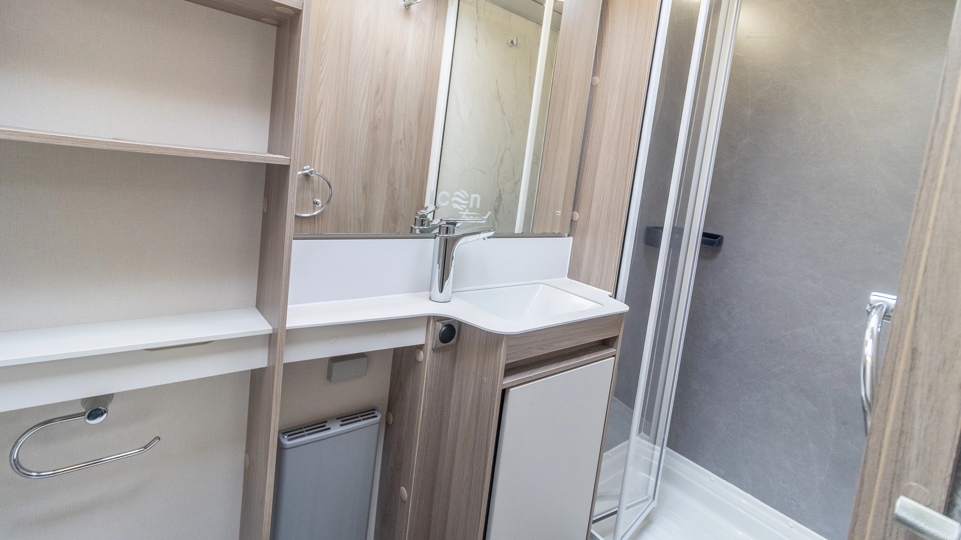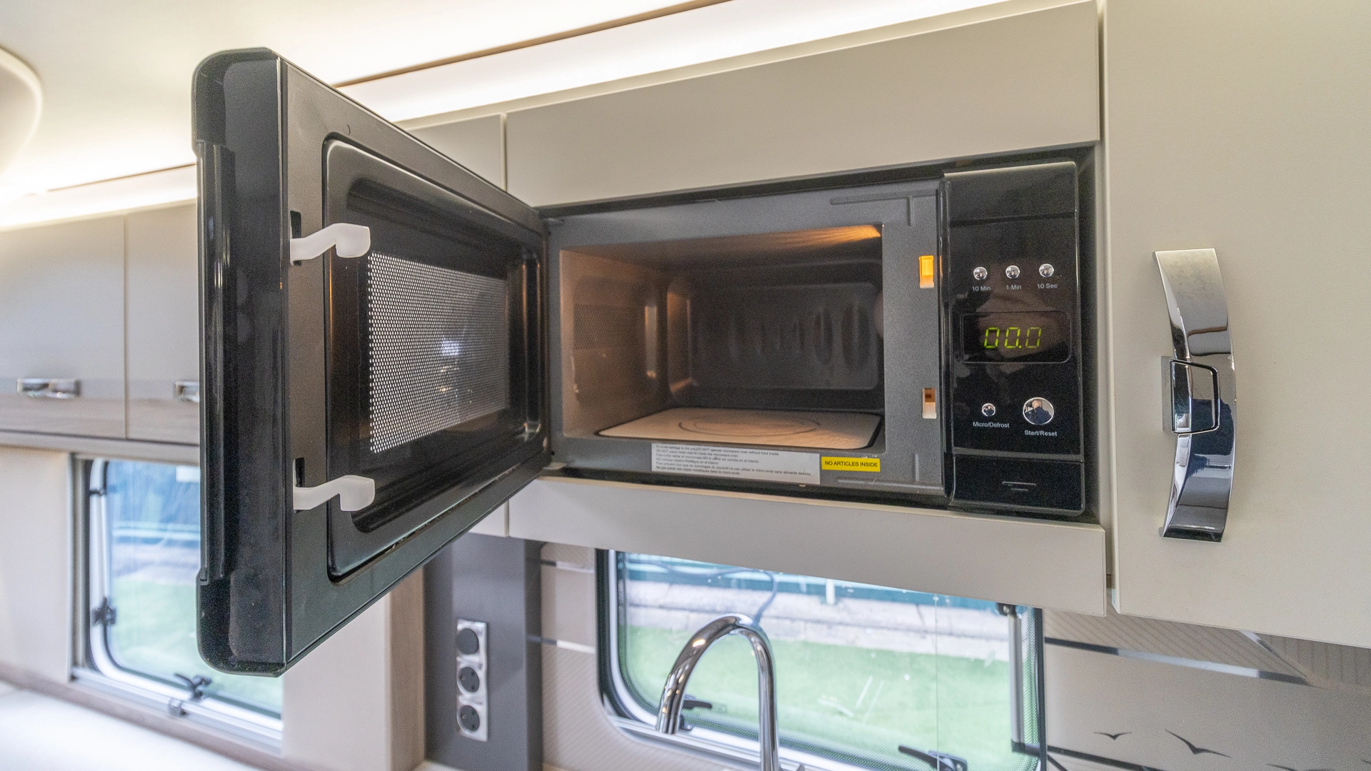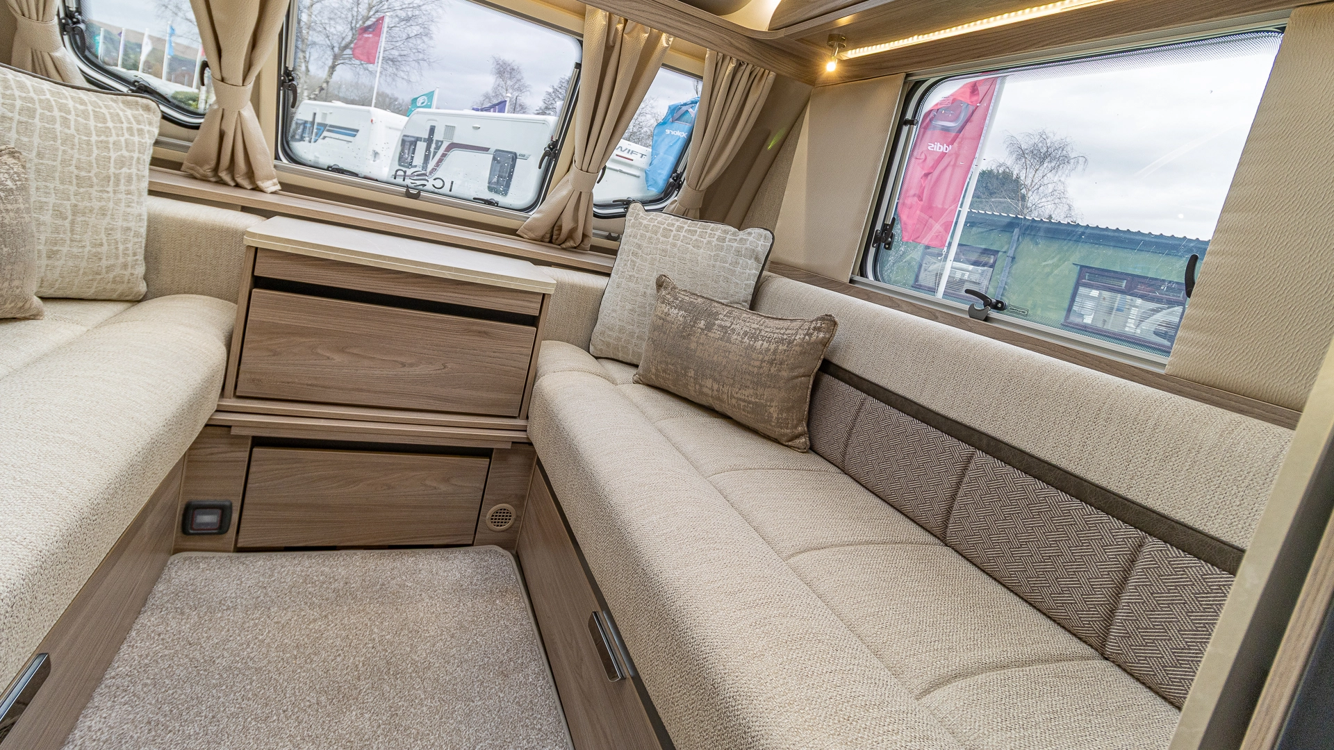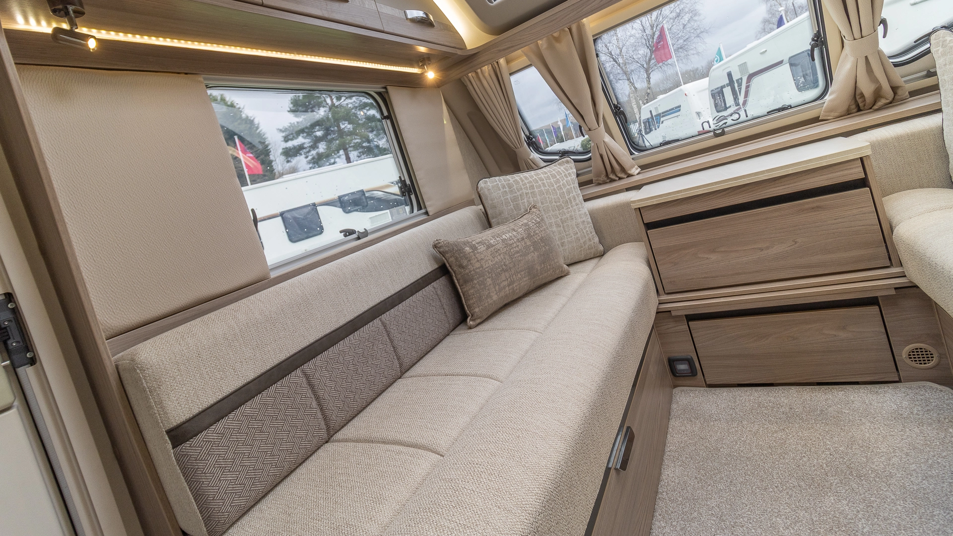 Fitted above the cooking area, the extractor fan maintains the caravan’s fresh atmosphere by efficiently removing cooking odours from the kitchen.