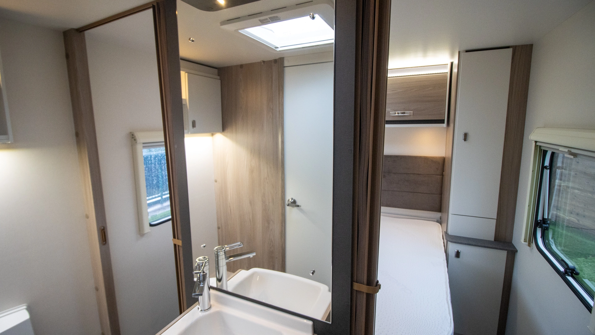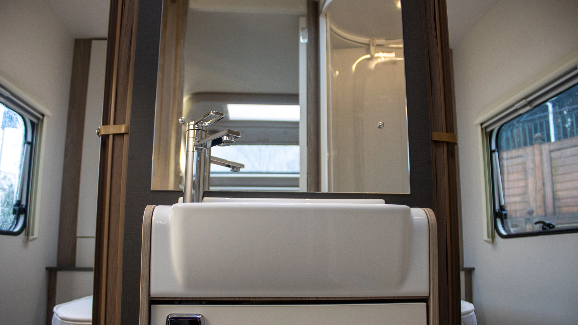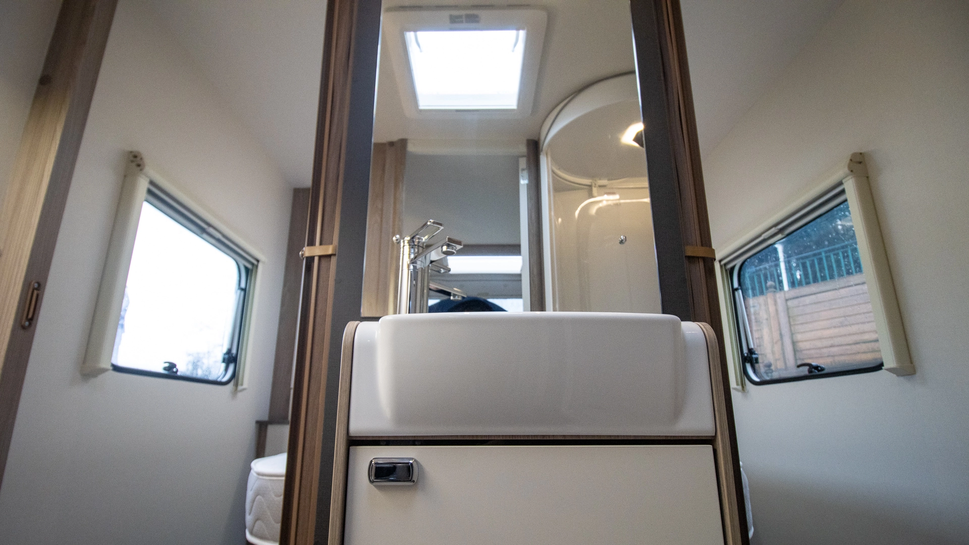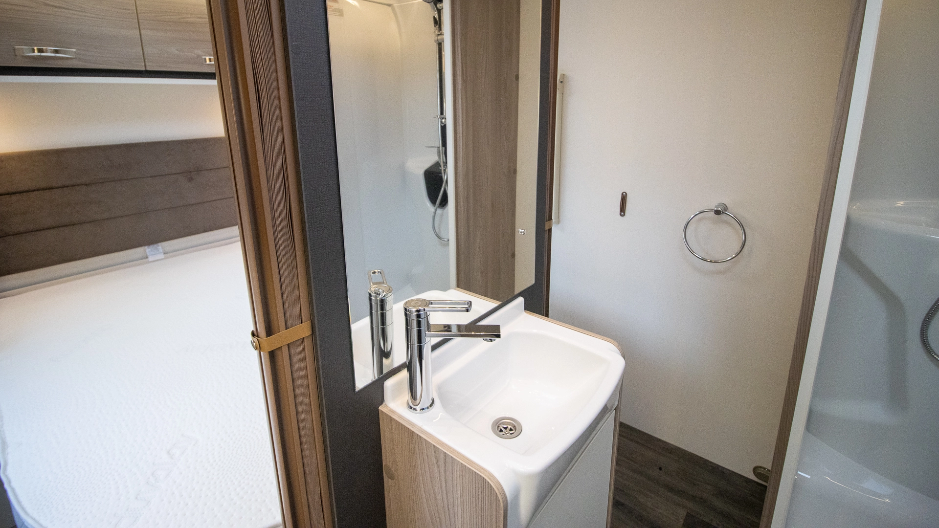 - Dedicated shower with bi-fold door and travel lock (except Alpine 4 and Major 4 EB)