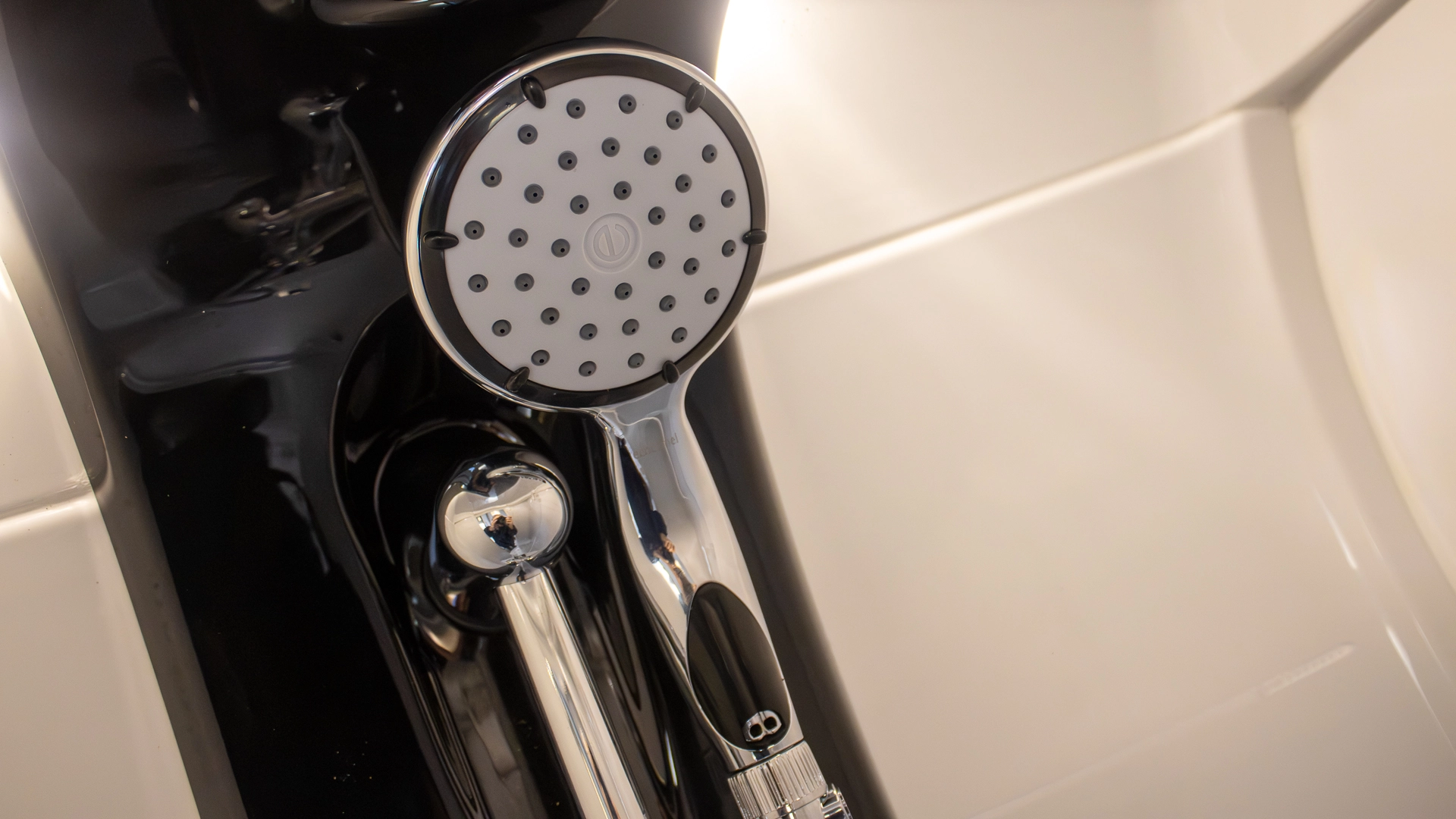 - Ecocamel Jetstorm showerhead with on/off button for a powerful shower that uses less water
