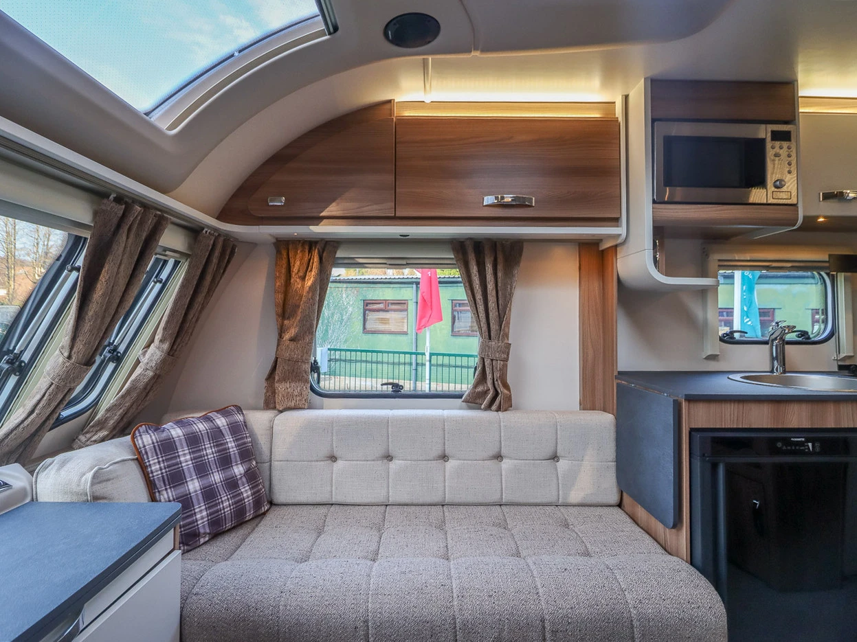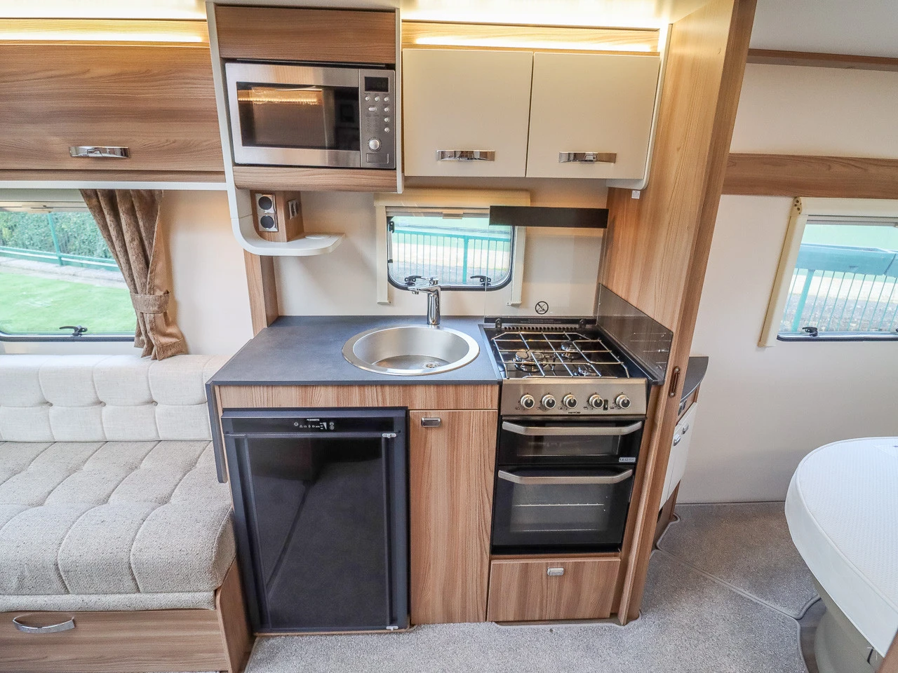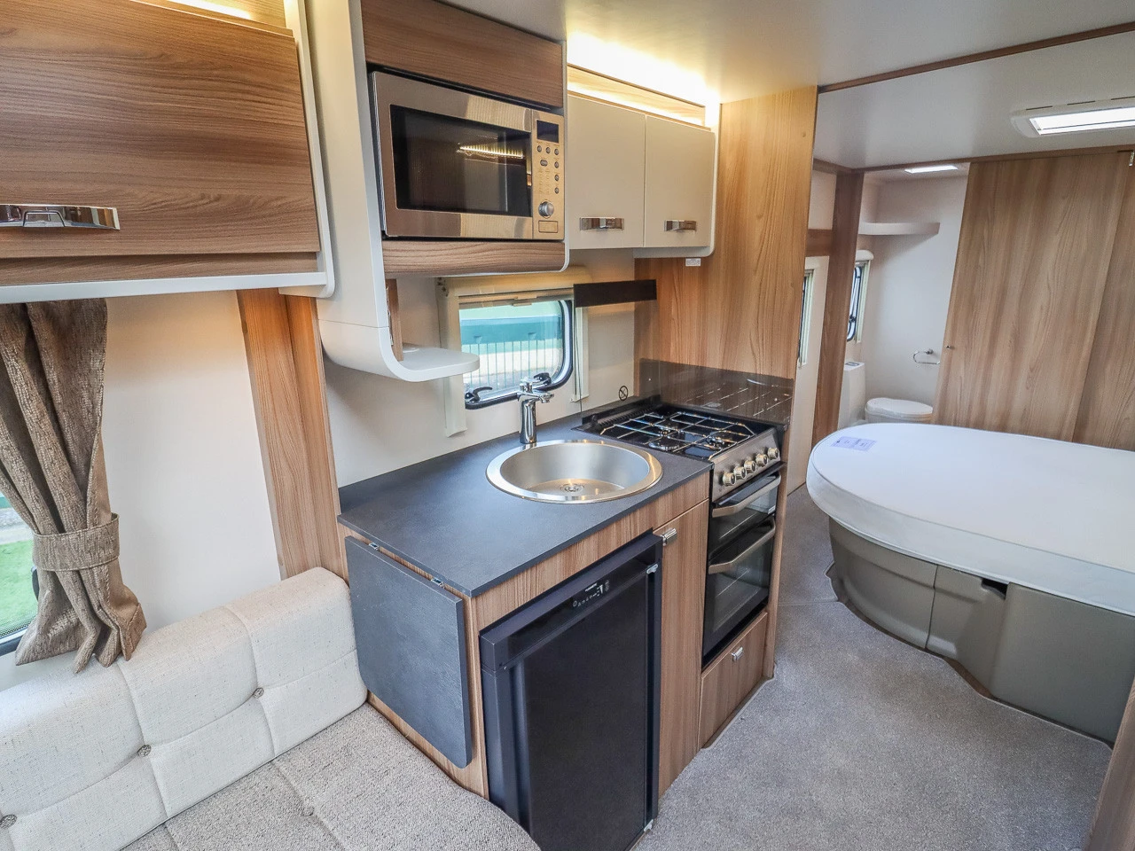 Built with rugged Glass Reinforced Plastic side panels, this caravan benefits from weather‑resistant, low‑maintenance exterior protection, helping to reduce wear and tear.