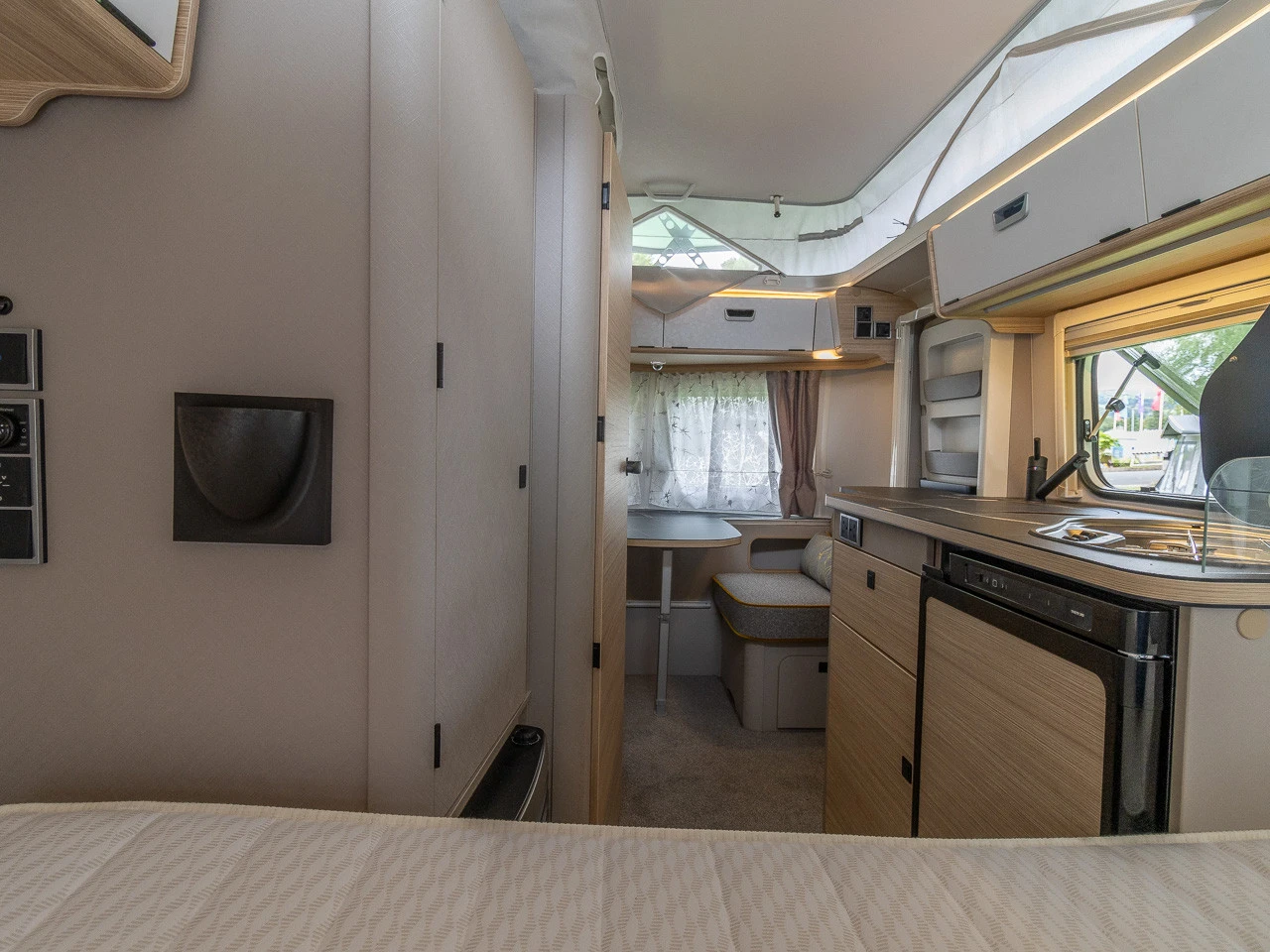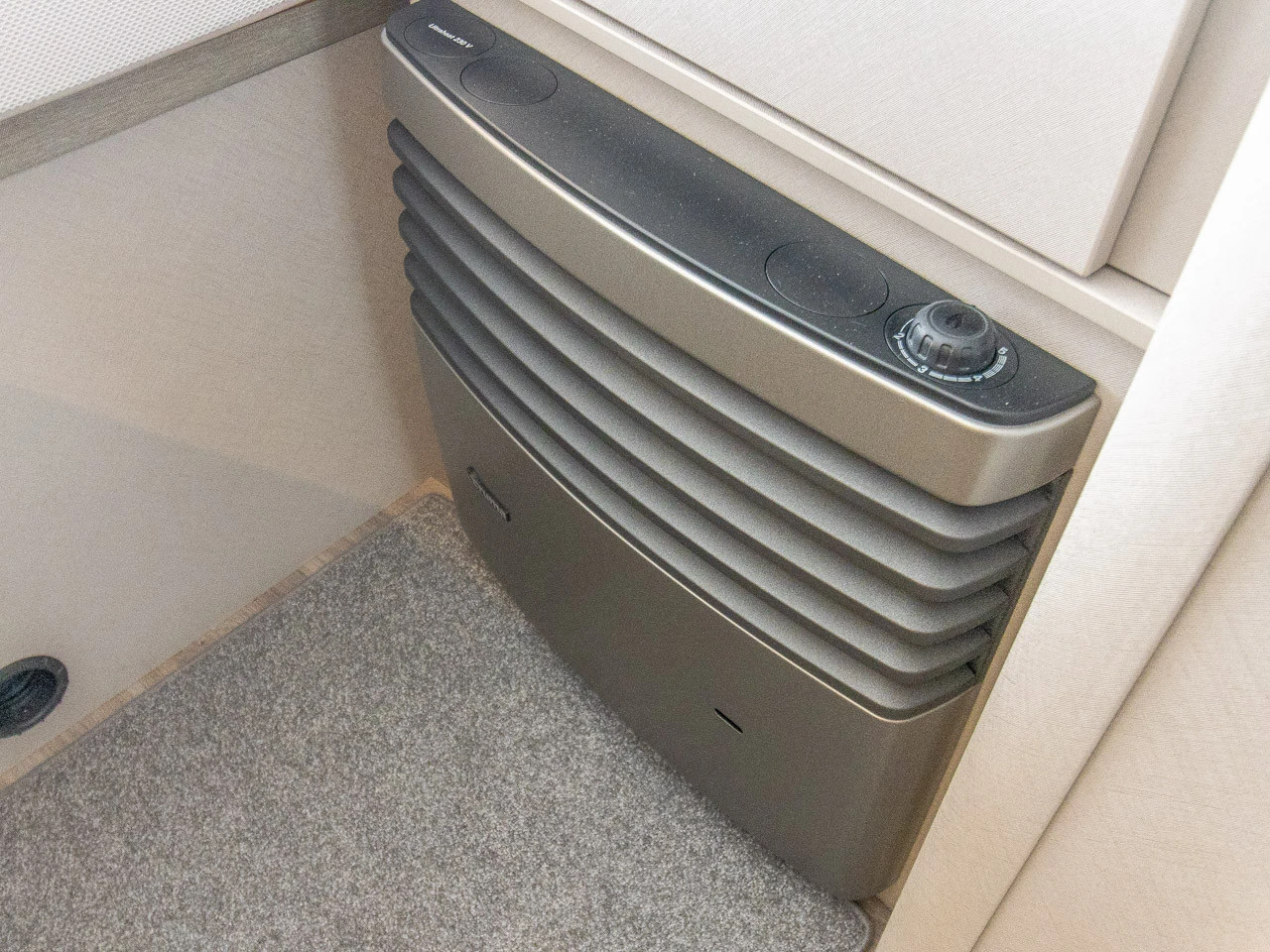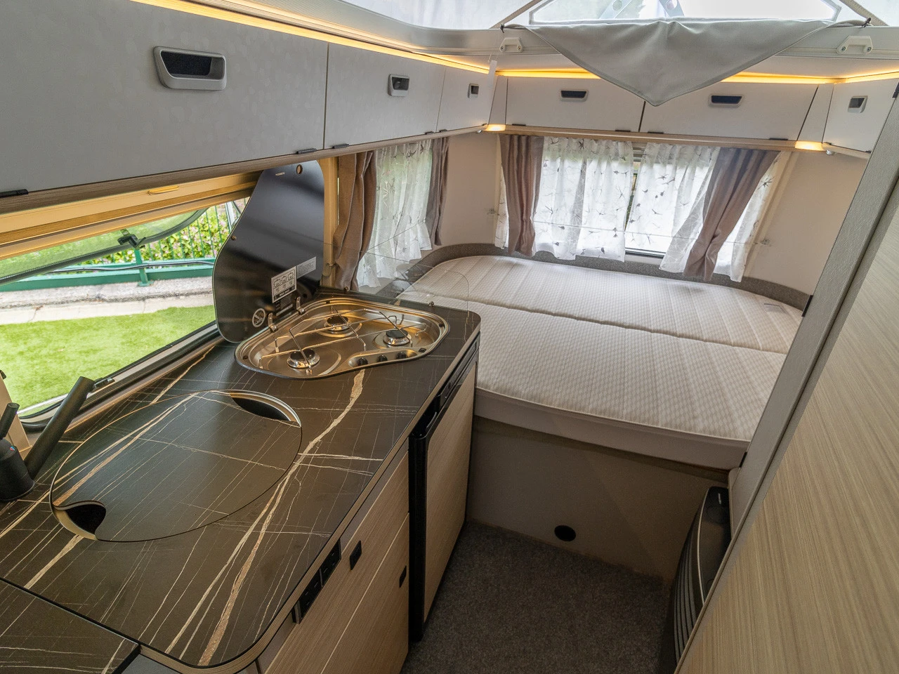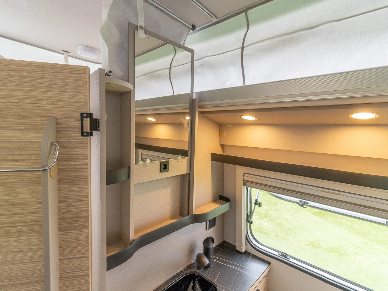 underfloor bracket, lockable External Storage Flap: 80 x 35 cm, RH side, rear Shower Equipment: With shower head and curtain 3-Burner Cooker: With ignition fuse, electric ignition, flame guard and glass cover External Pump 30 l Freshwater Tank: With level indicator Electric Warm Water Boiler: 5 l water content (300 W) Electric Auxiliary Heating: For gas heating Truma Ultraheat (three levels: 500 / 1,000 / 2,000 W) Carpet: Laguna Side Walls, Front and Rear: In smooth alloy skin, Colour: Crystal Silver Roof Awning: Thule Omnistor 6300 with integrated LED-lighting and adapter, white housing, 280 x 200 cm (expandable with privacy screen, wind and rain protection) Autonomy Pack: 95 Ah AGM habitation battery, charger with integrated booster and battery gauge