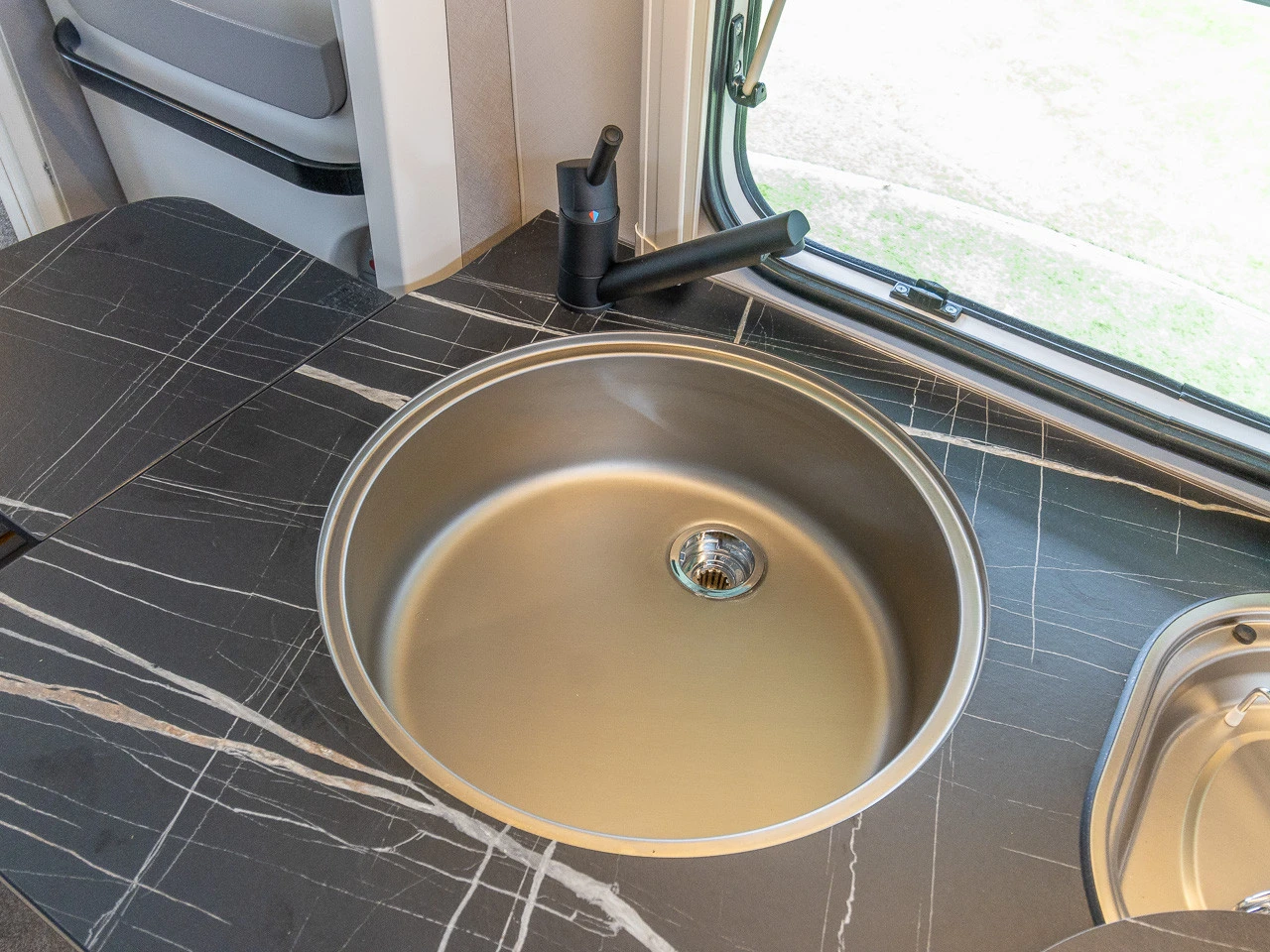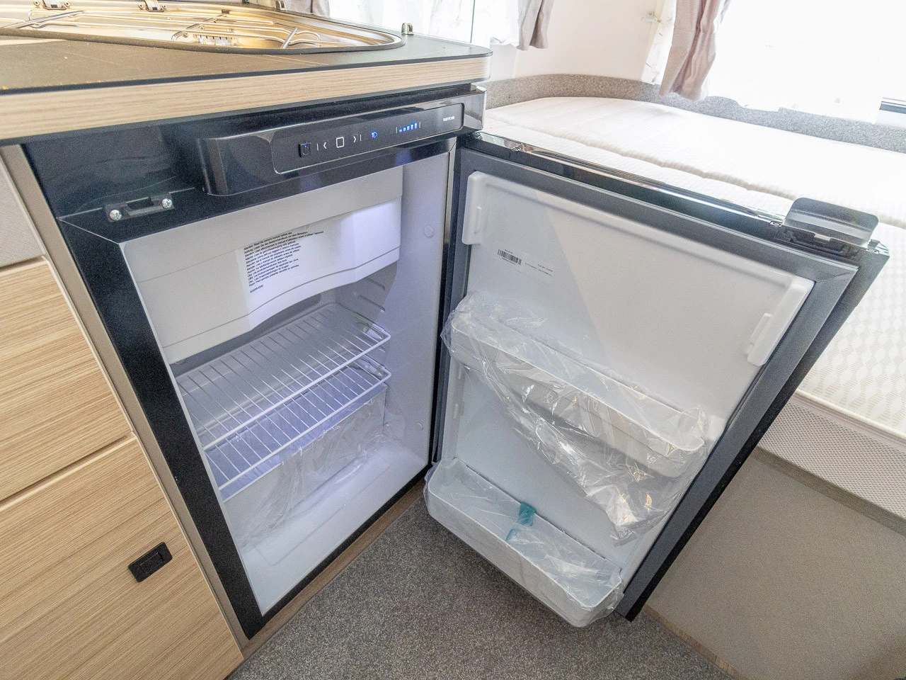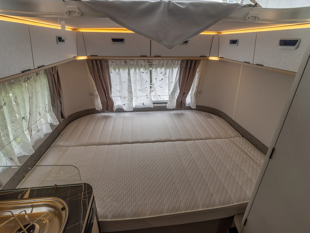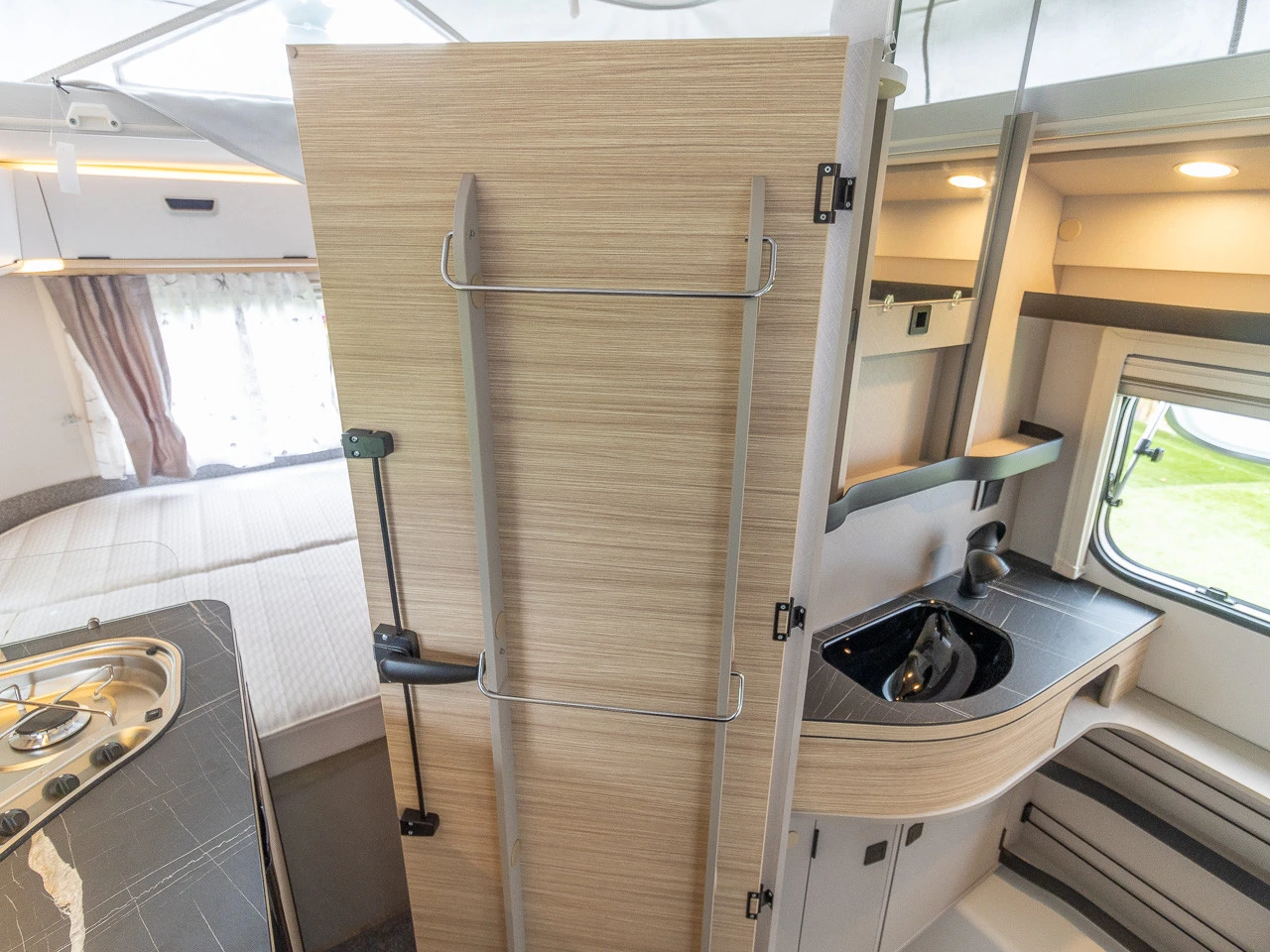 underfloor bracket, lockable External Storage Flap: 80 x 35 cm, RH side, rear Shower Equipment: With shower head and curtain 3-Burner Cooker: With ignition fuse, electric ignition, flame guard and glass cover External Pump 30 l Freshwater Tank: With level indicator Electric Warm Water Boiler: 5 l water content (300 W) Electric Auxiliary Heating: For gas heating Truma Ultraheat (three levels: 500 / 1,000 / 2,000 W) Carpet: Laguna Side Walls, Front and Rear: In smooth alloy skin, Colour: Crystal Silver Roof Awning: Thule Omnistor 6300 with integrated LED-lighting and adapter, white housing, 280 x 200 cm (expandable with privacy screen, wind and rain protection) Autonomy Pack: 95 Ah AGM habitation battery, charger with integrated booster and battery gauge